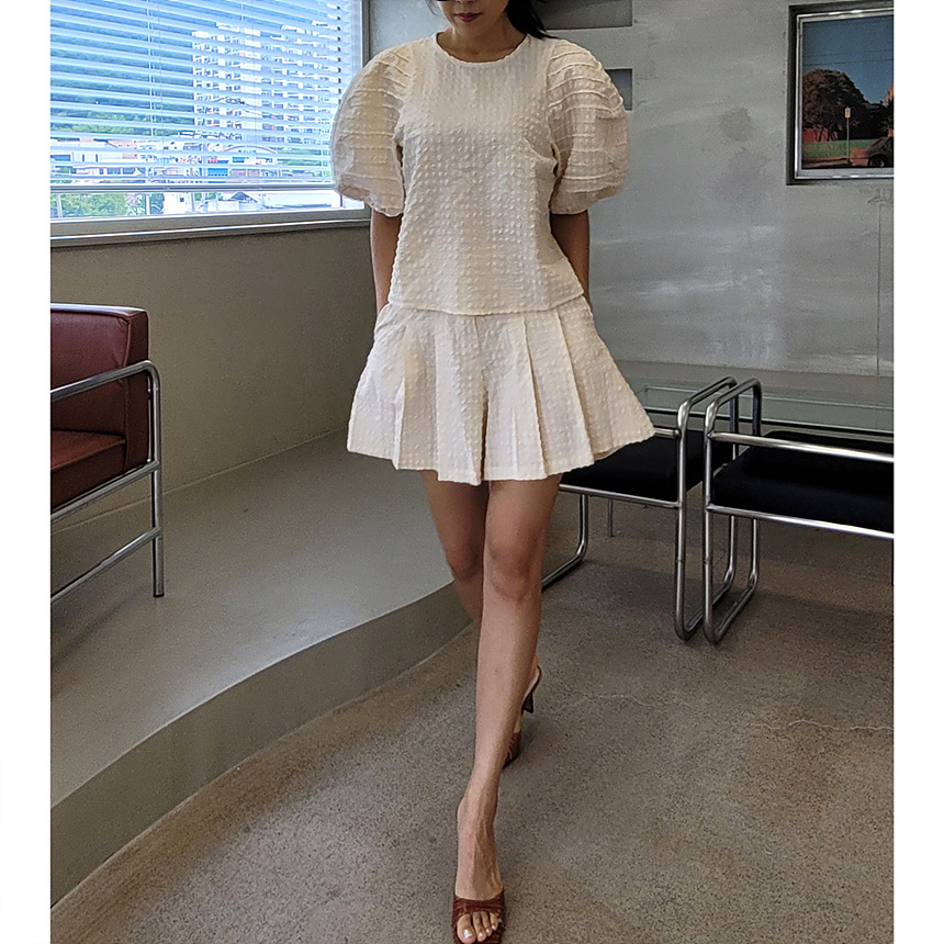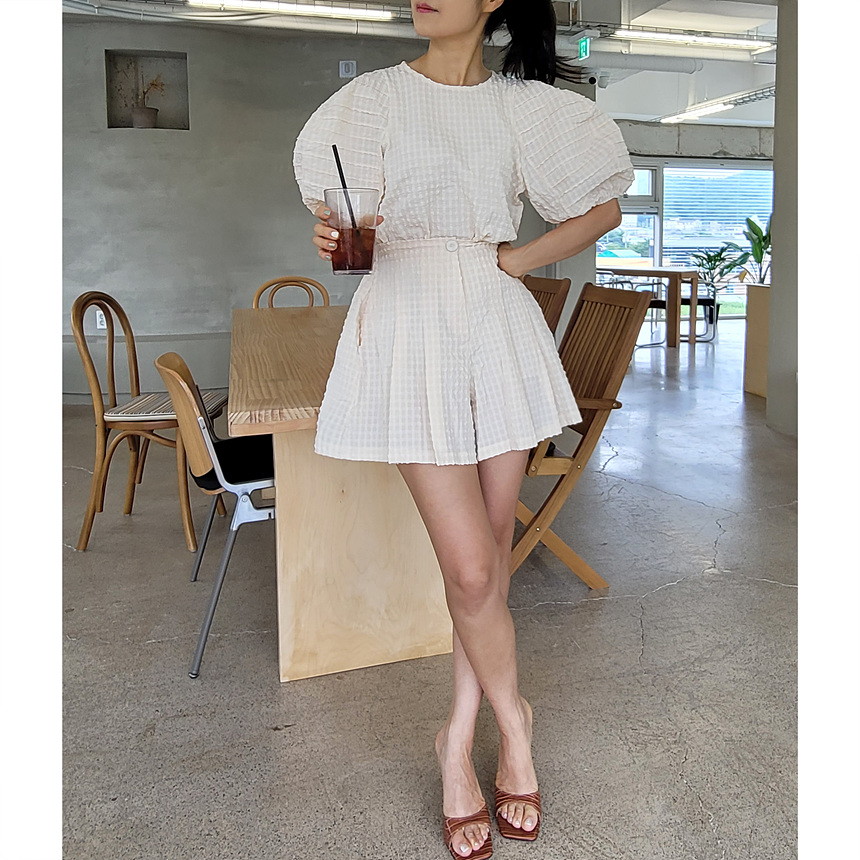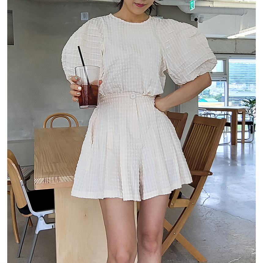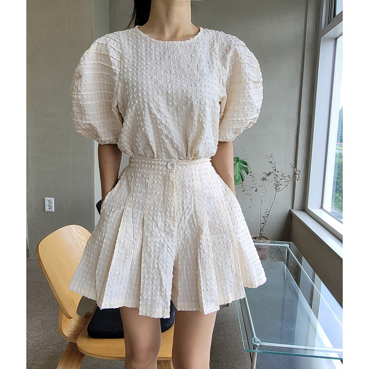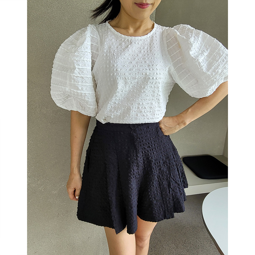 미지 엠보 에이라인 밴딩 반바지