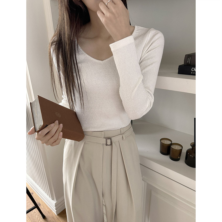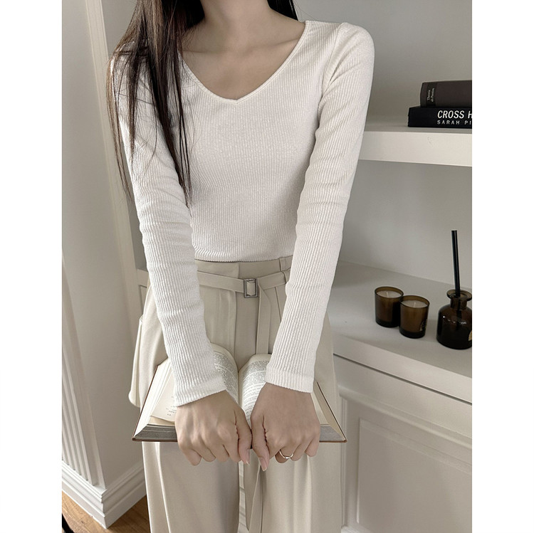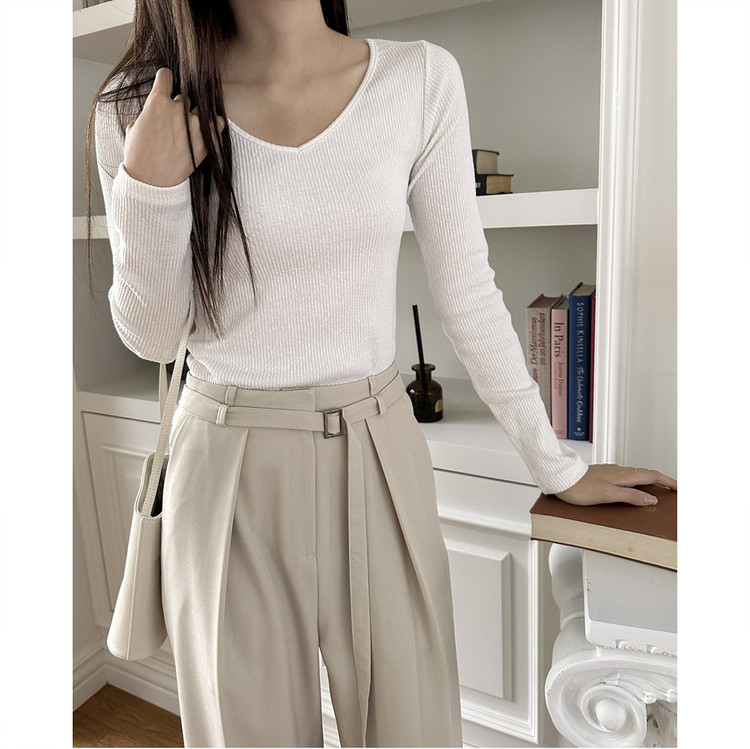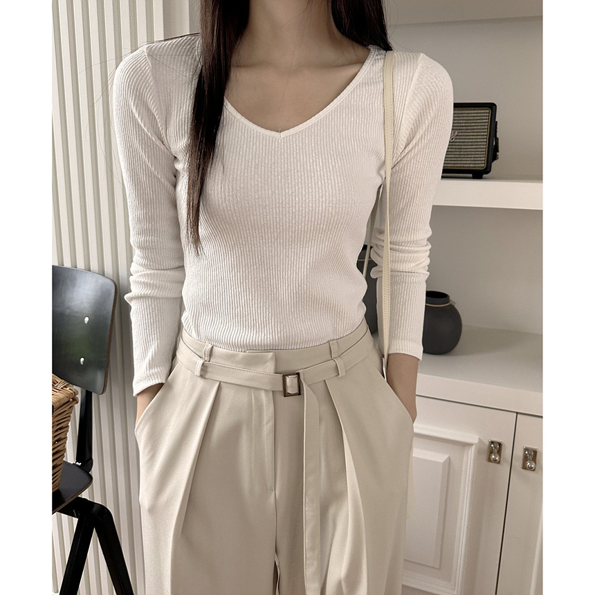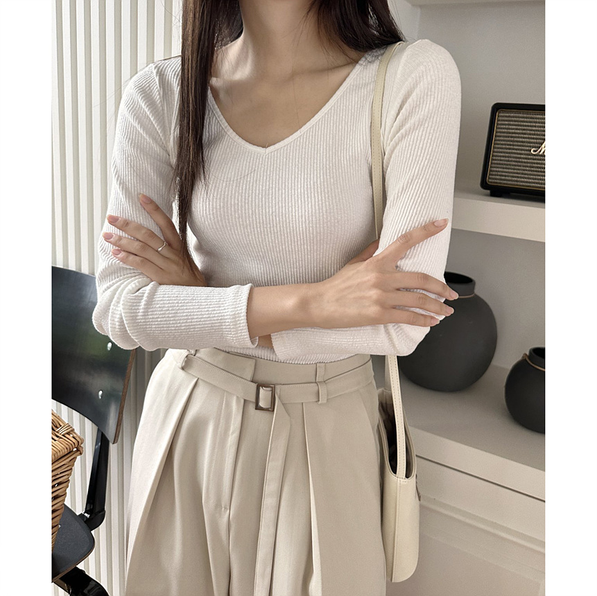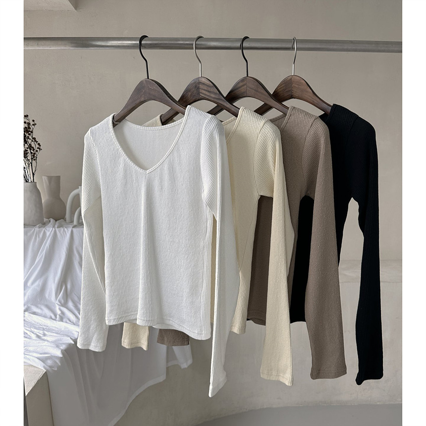 바로발송 베이 브이넥 골지 티셔츠