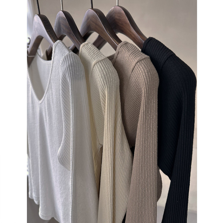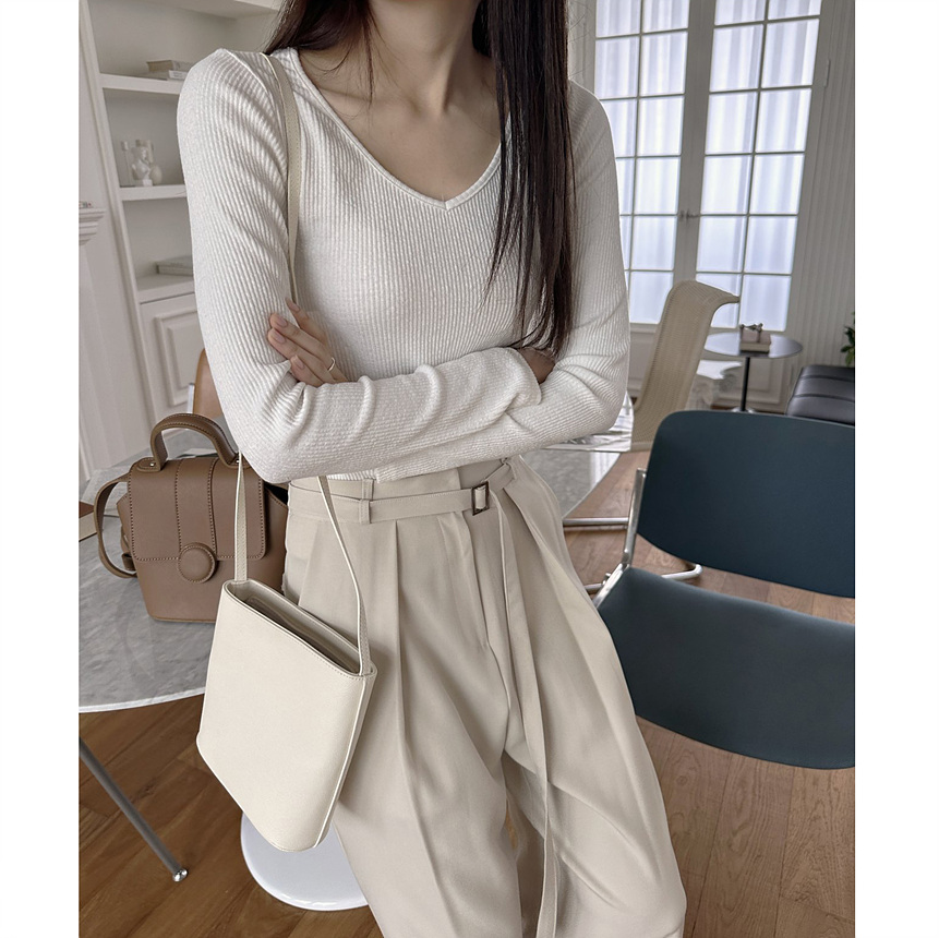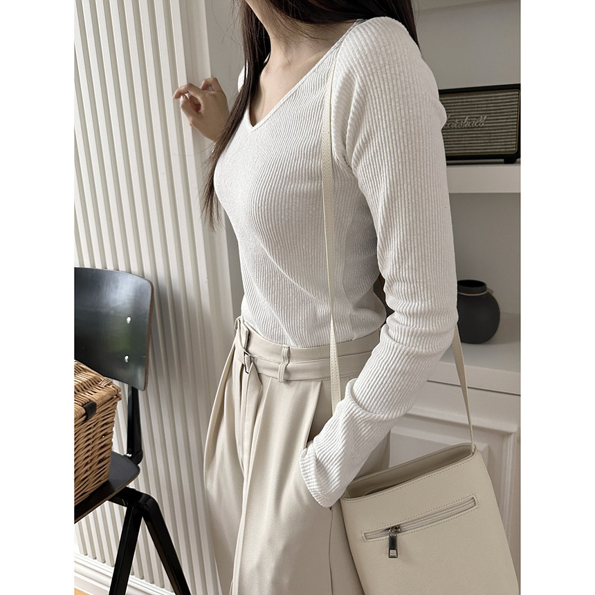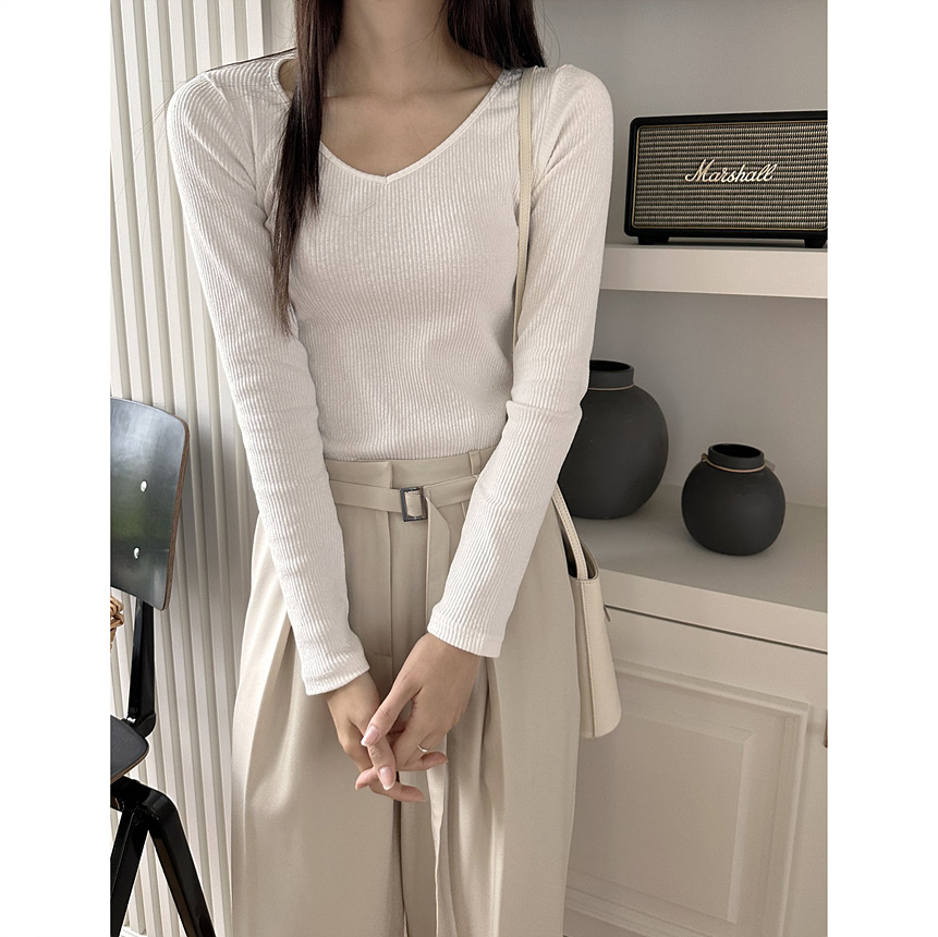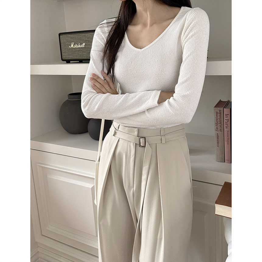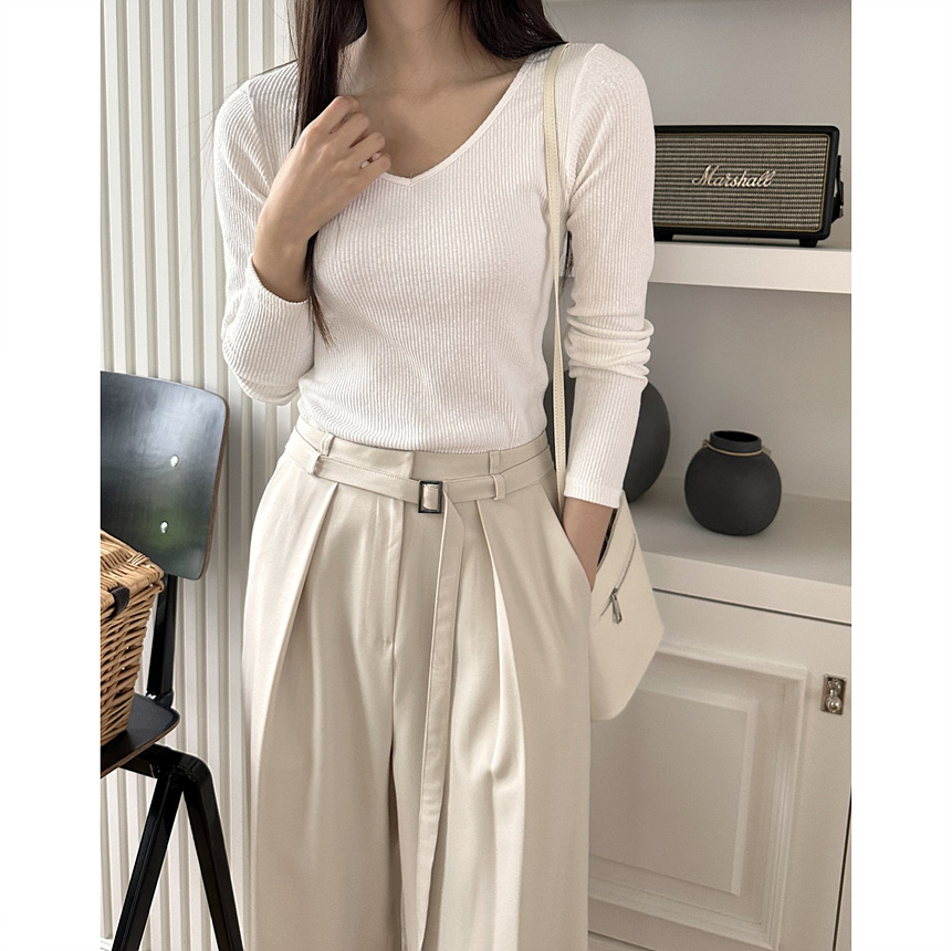 바로발송 베이 브이넥 골지 티셔츠