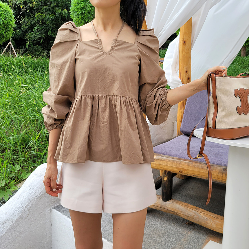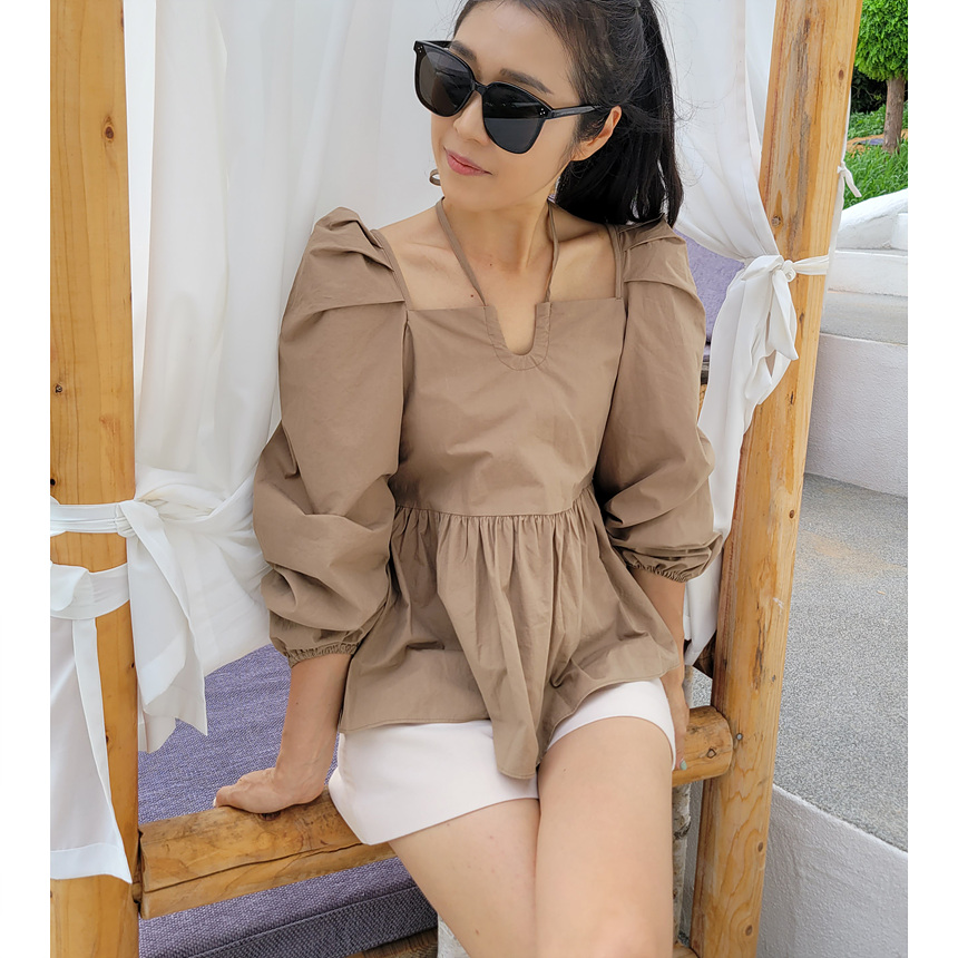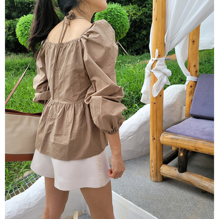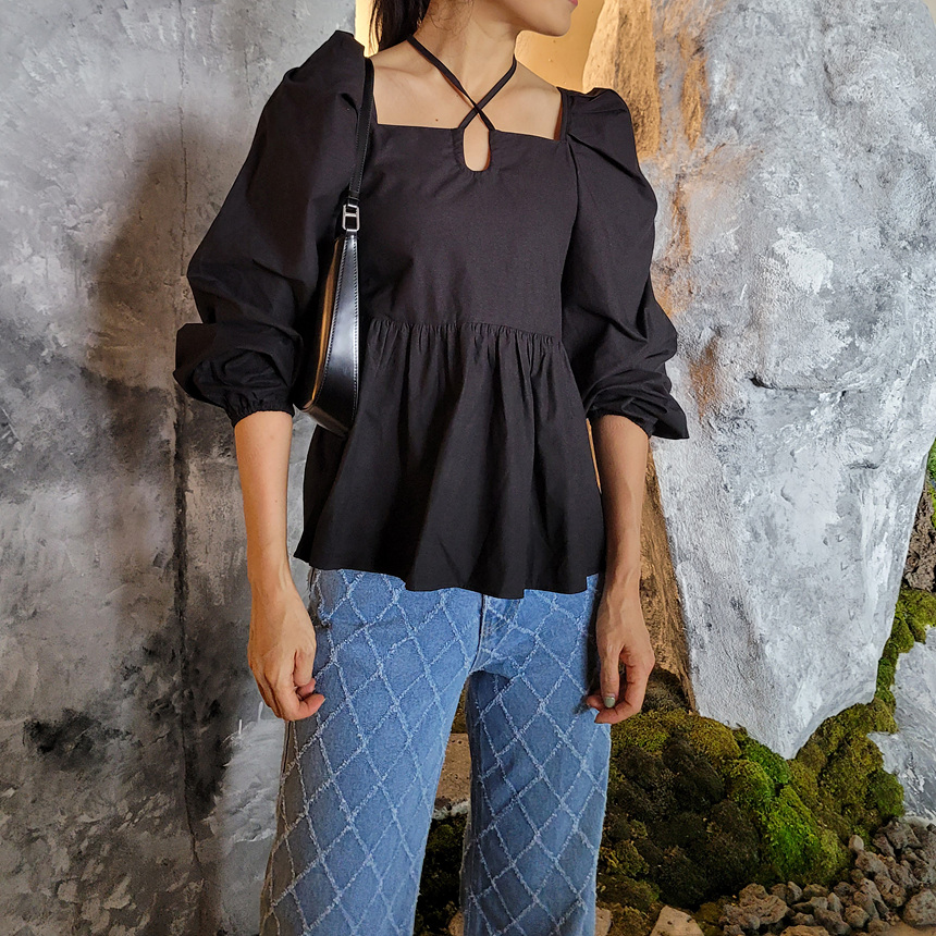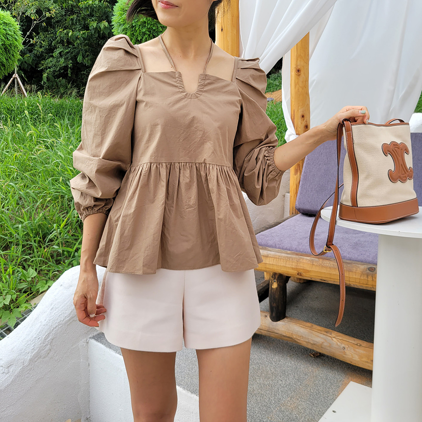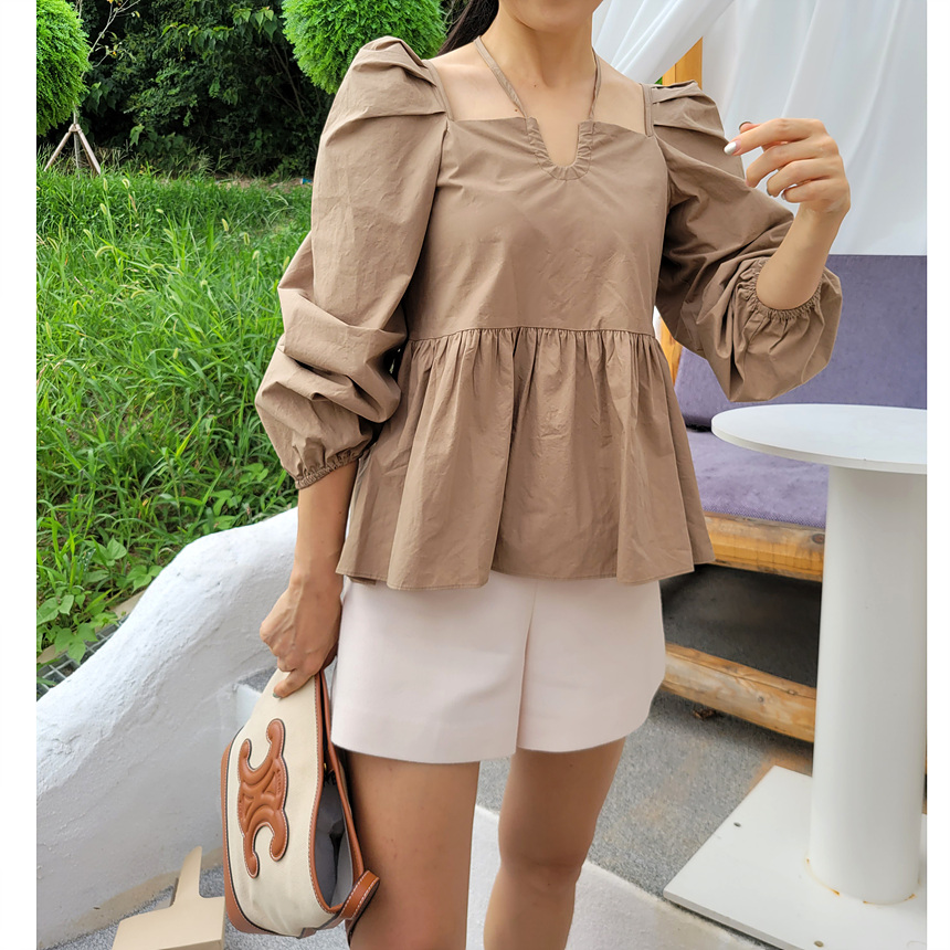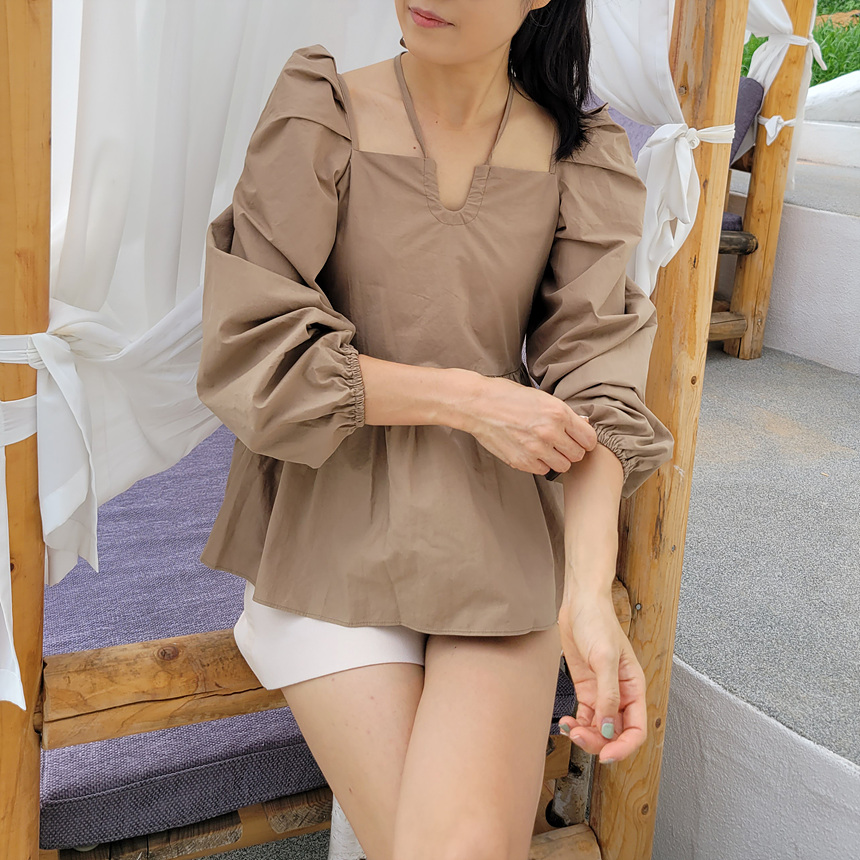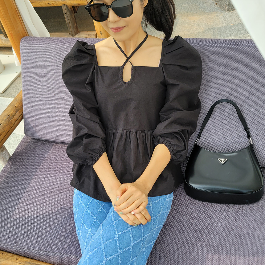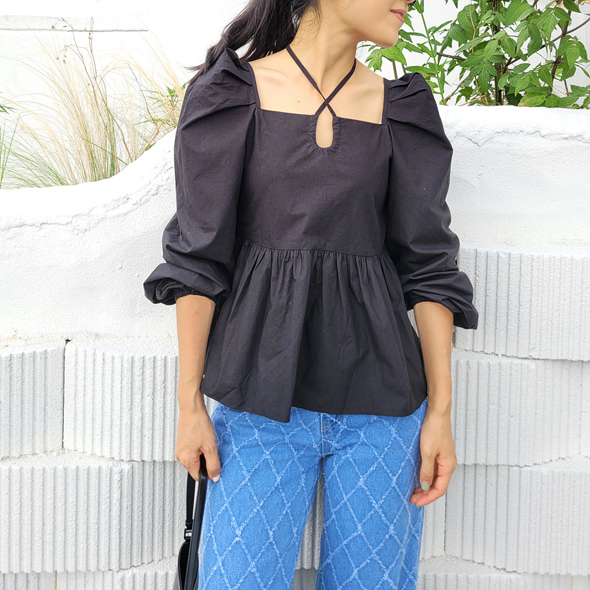 바로발송 라붐 홀터 끈 퍼프 블라우스