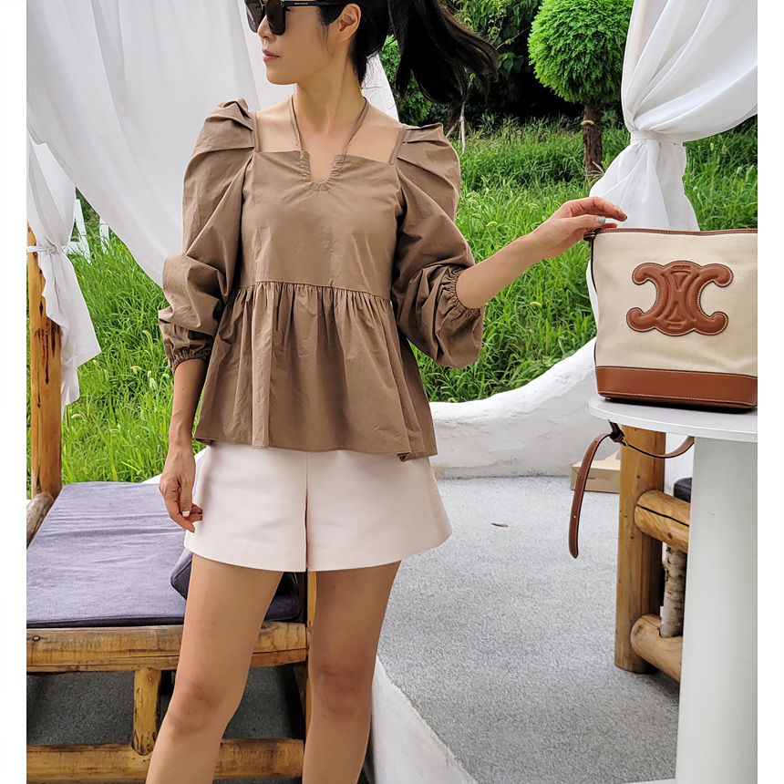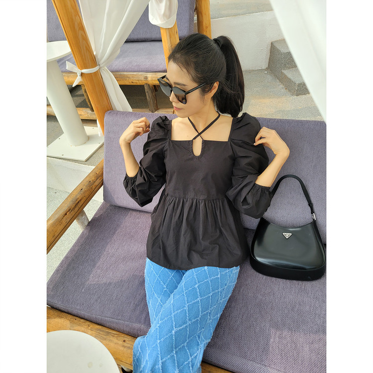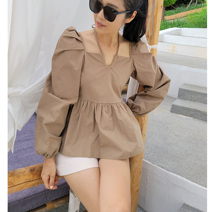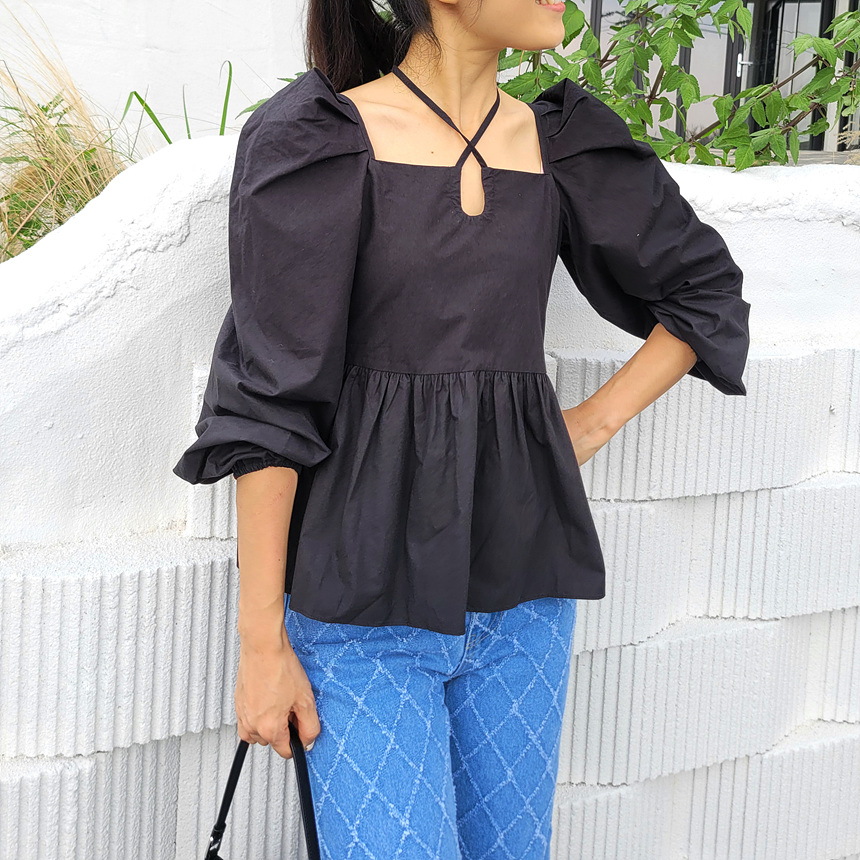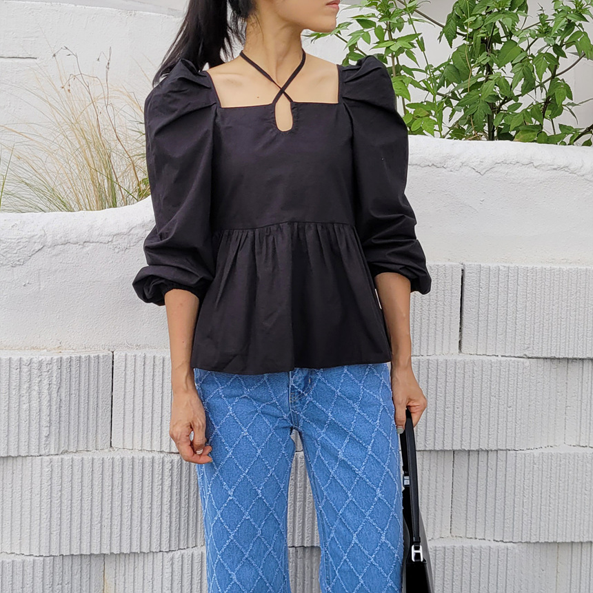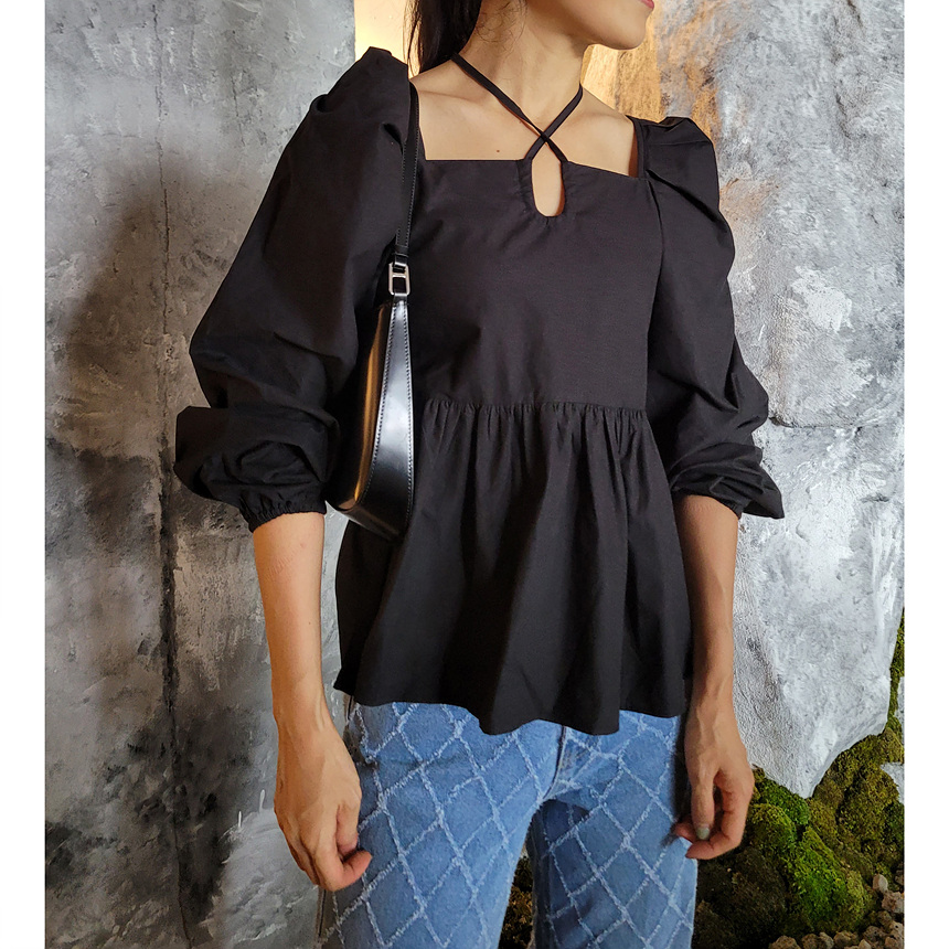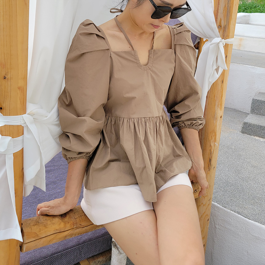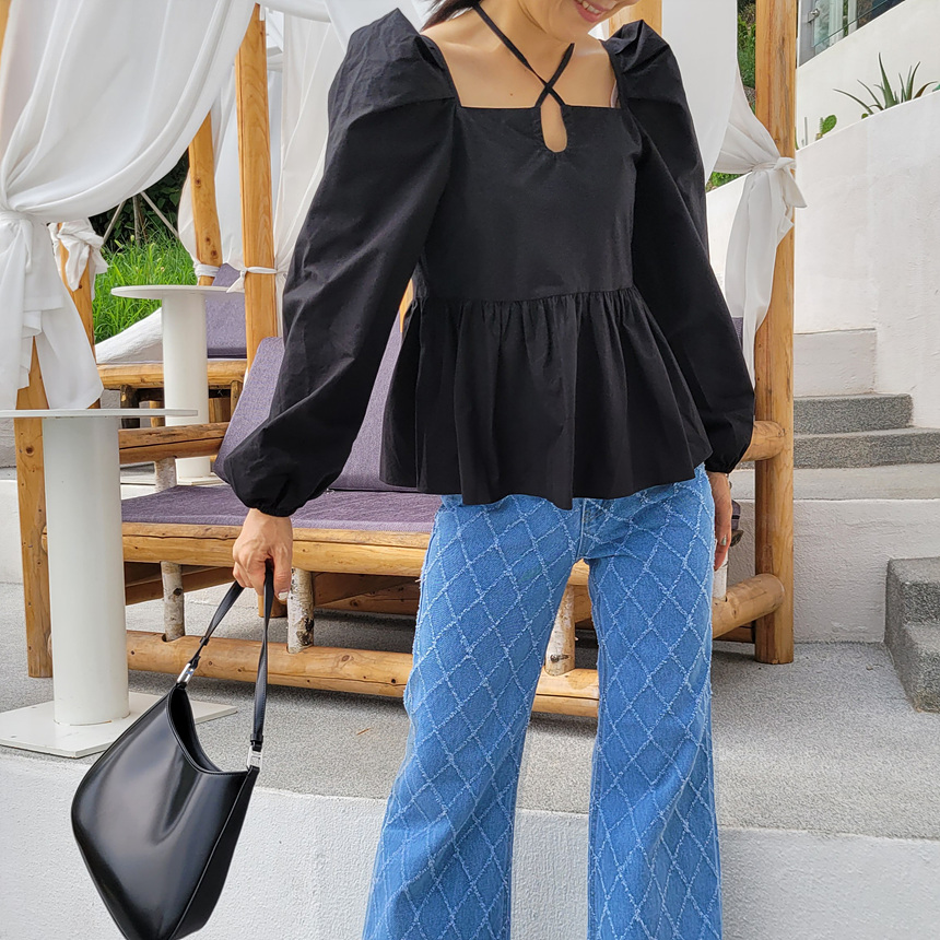바로발송 라붐 홀터 끈 퍼프 블라우스