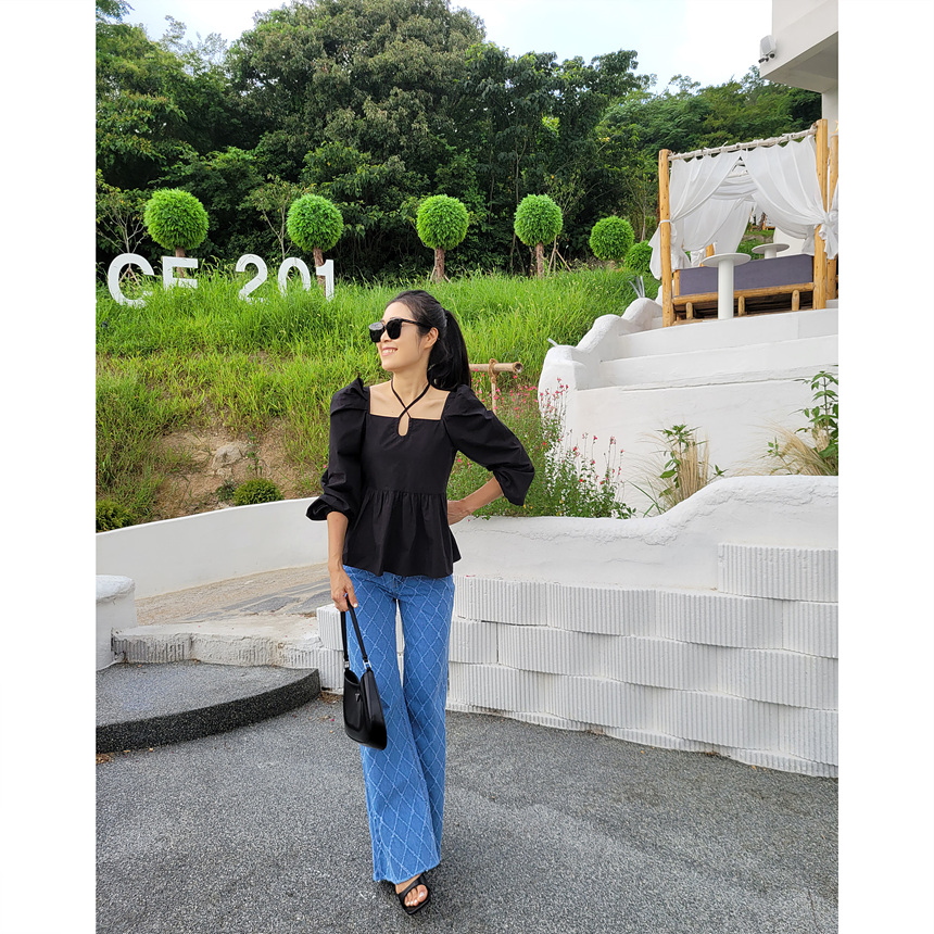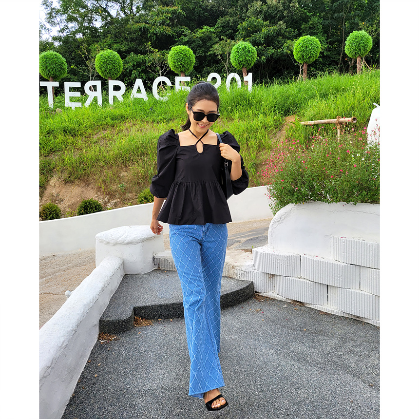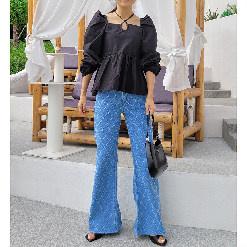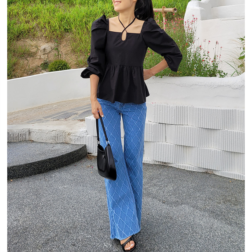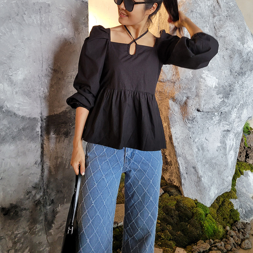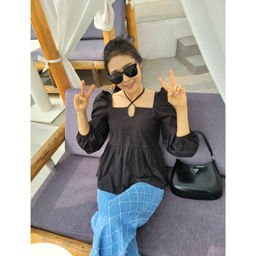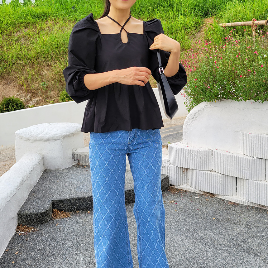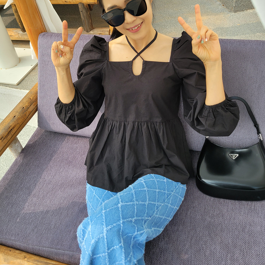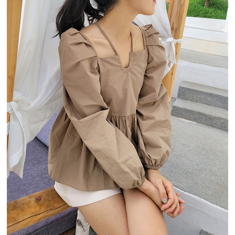 바로발송 라붐 홀터 끈 퍼프 블라우스