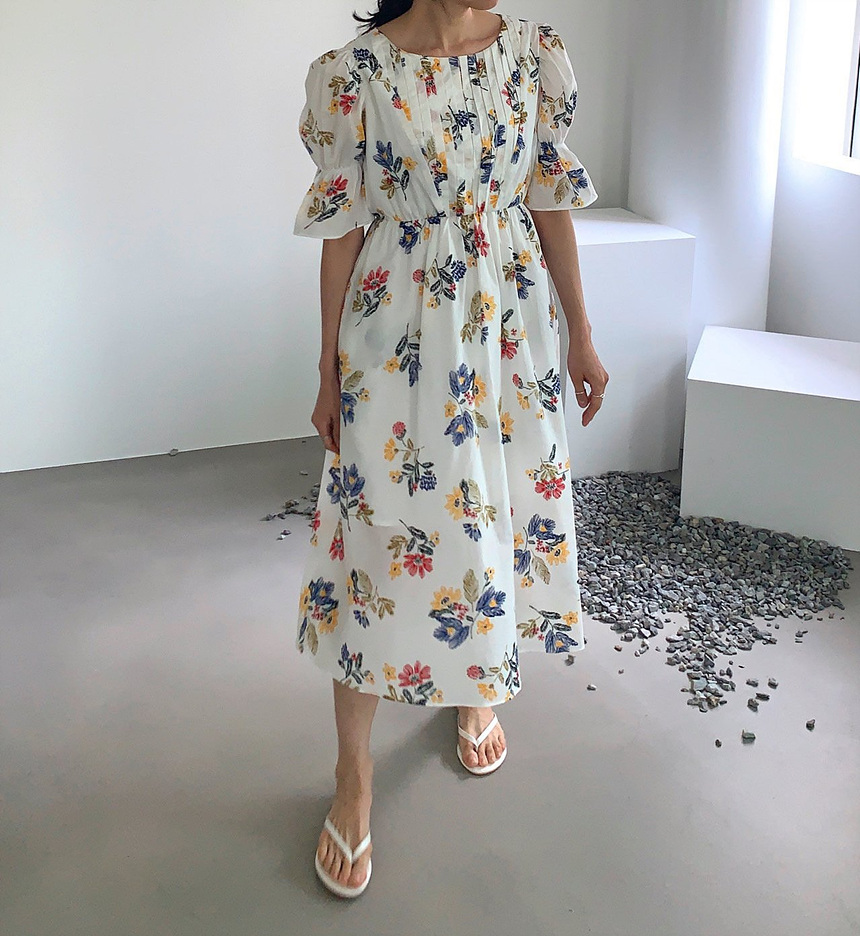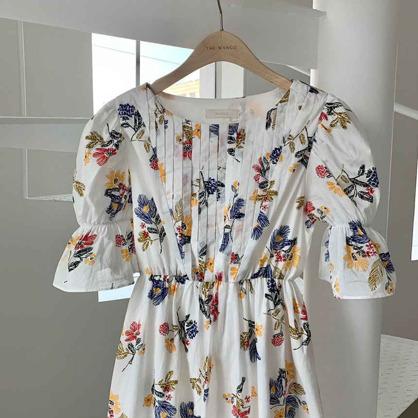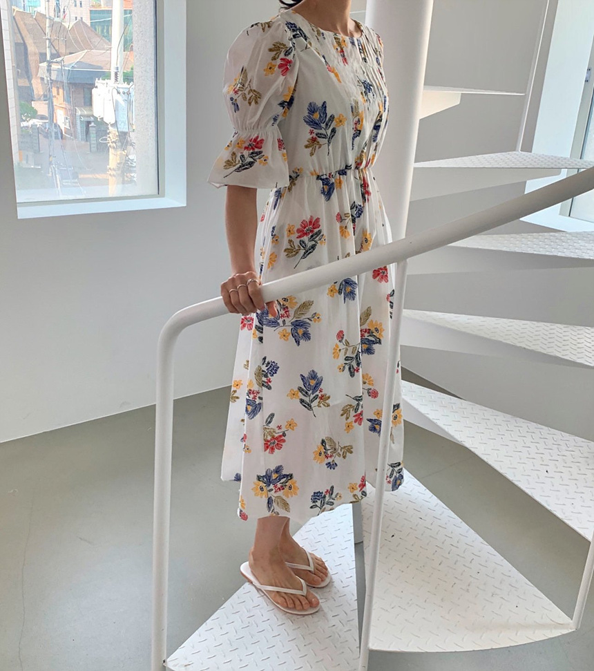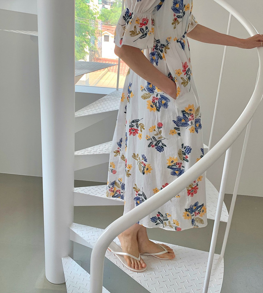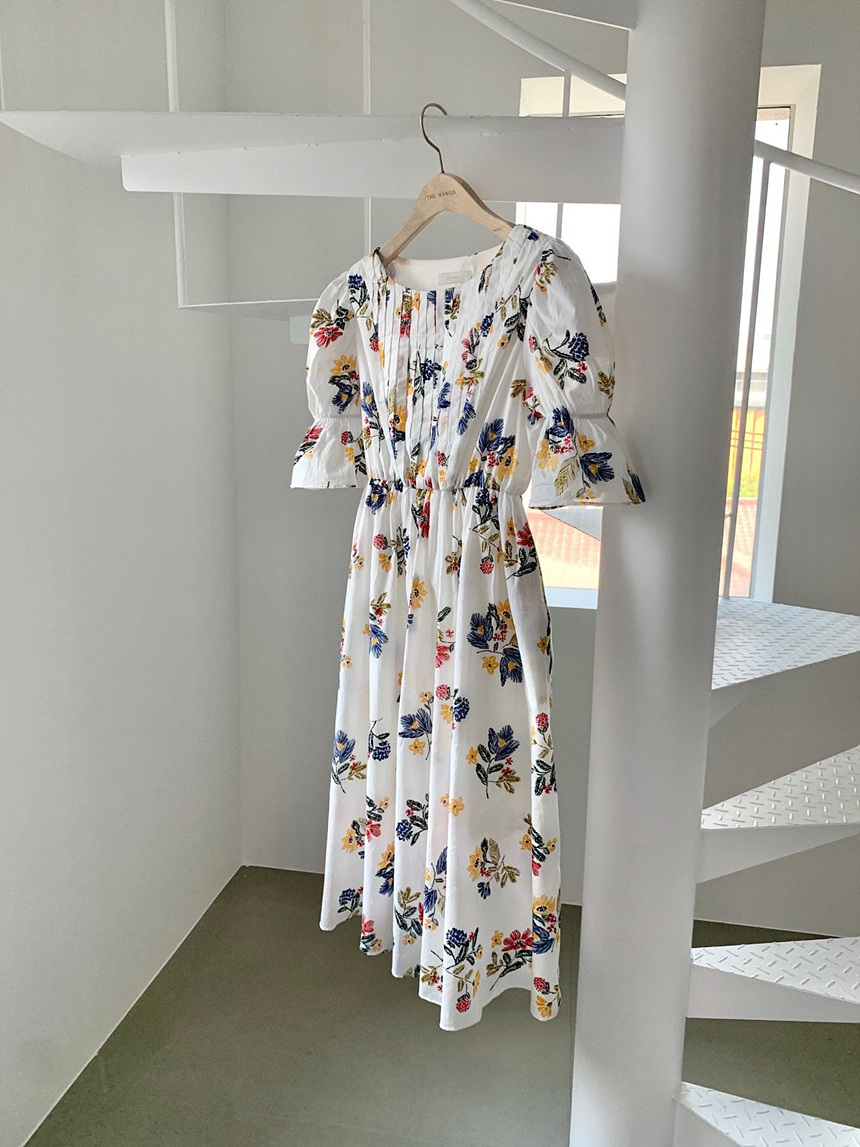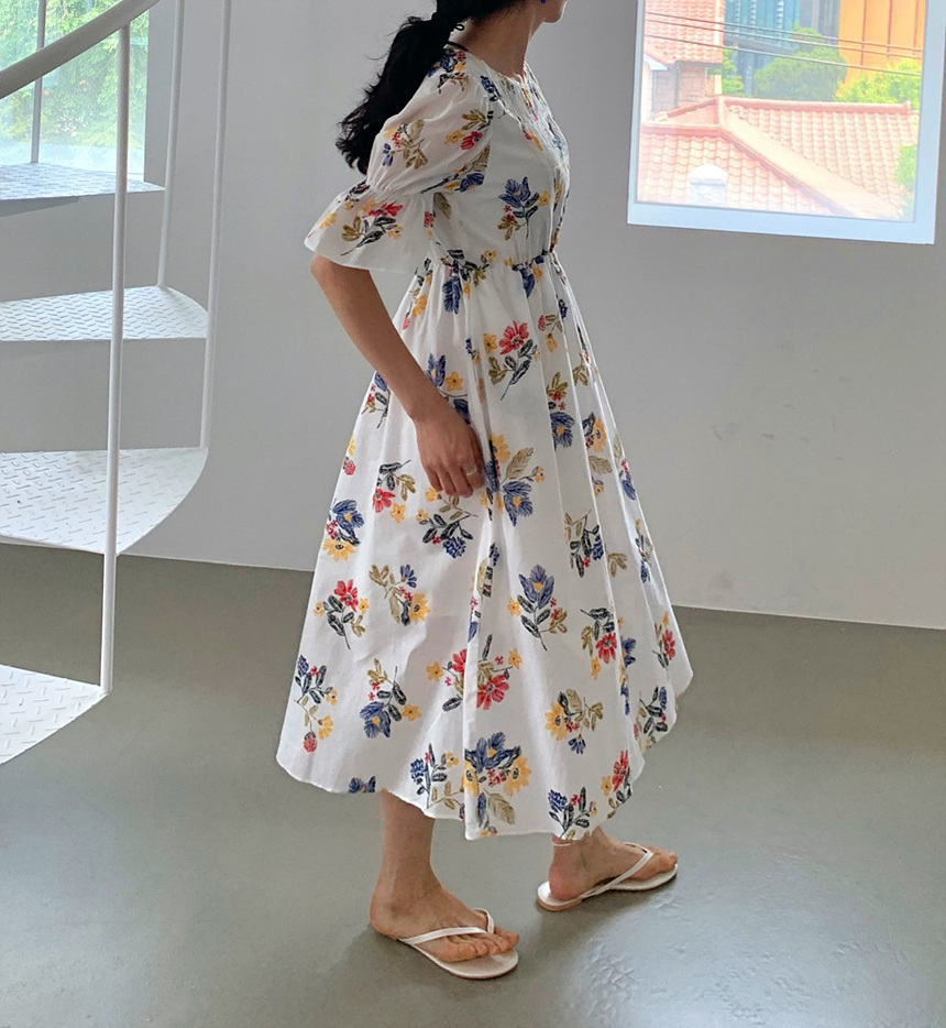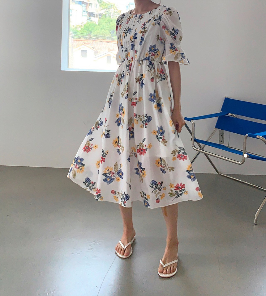 바로발송 로맨틱 플라워 자수 꽃 퍼프 원피스