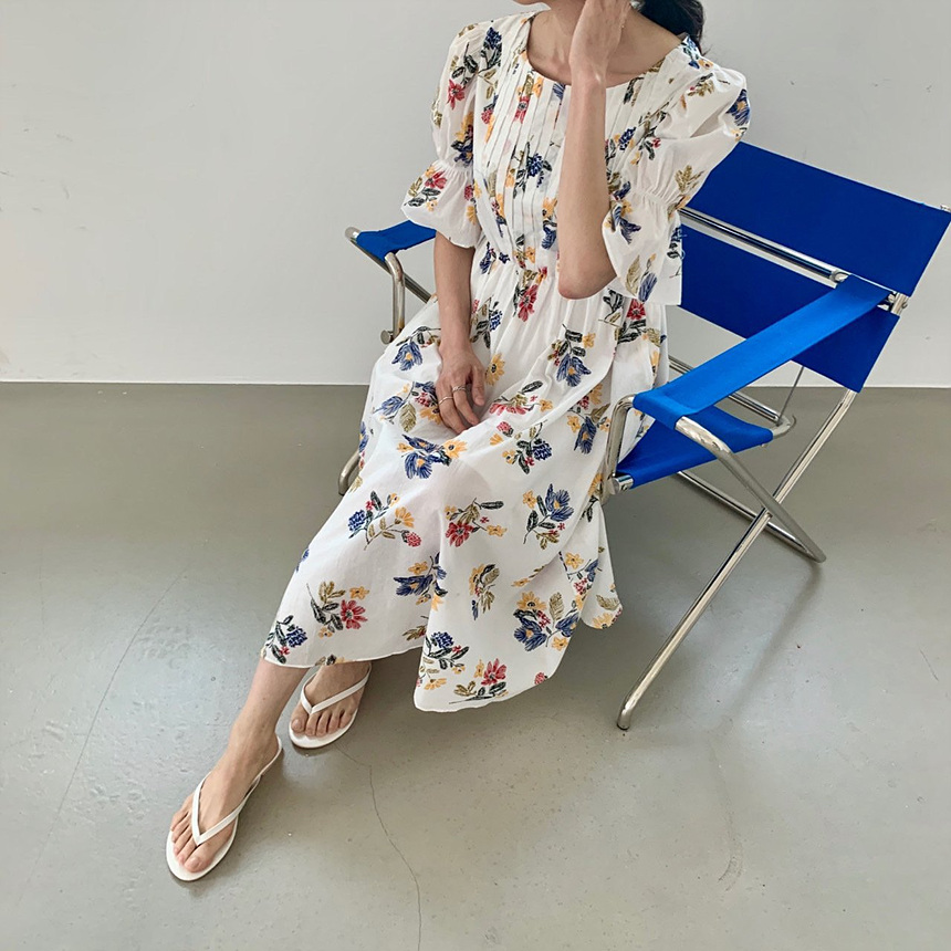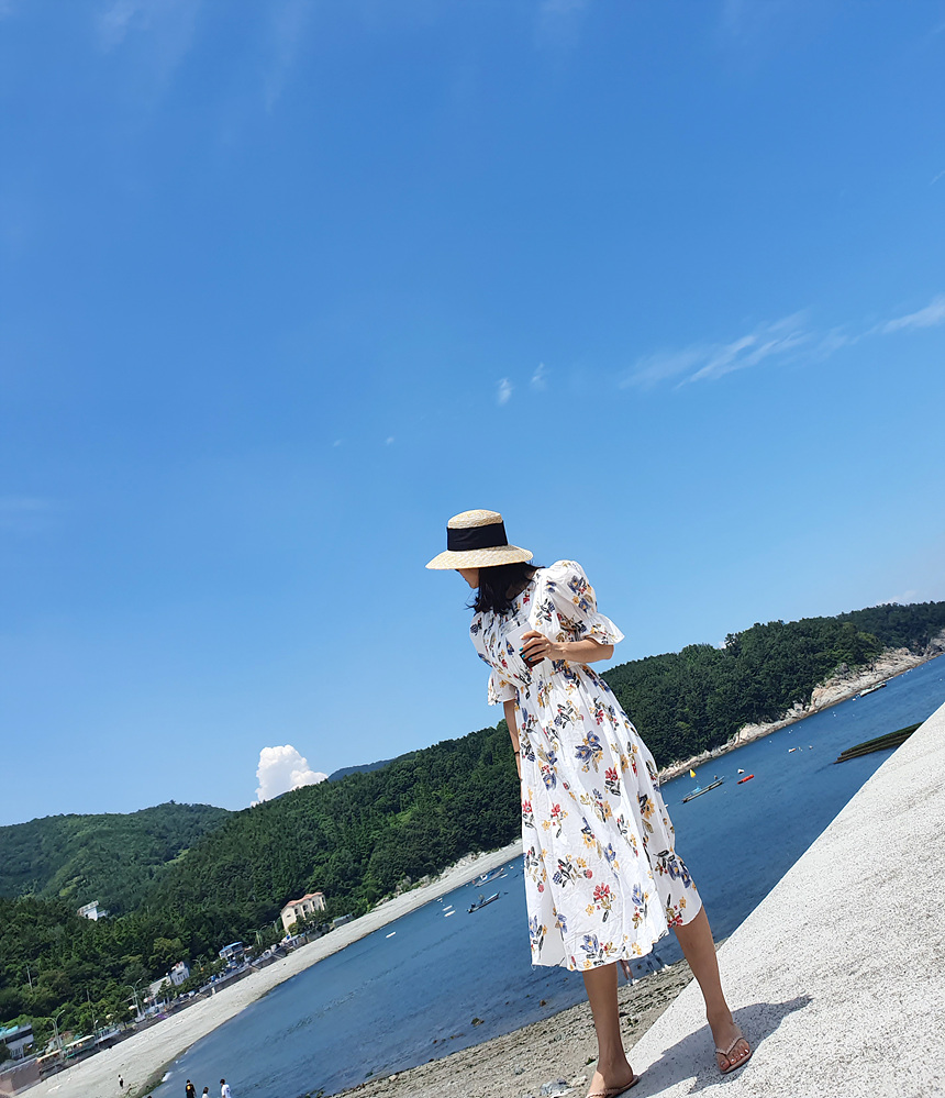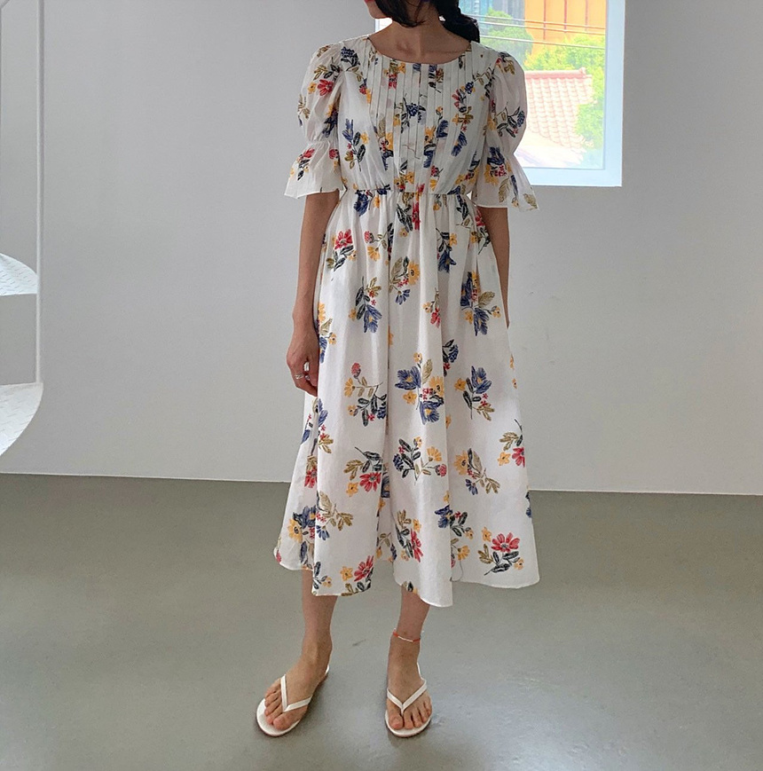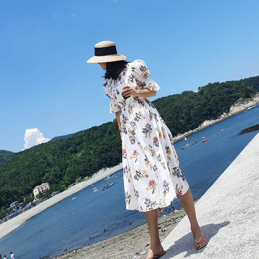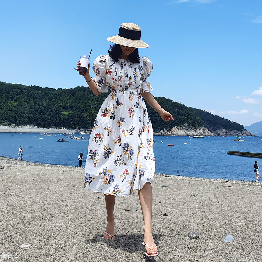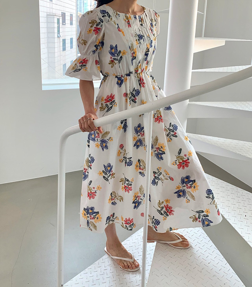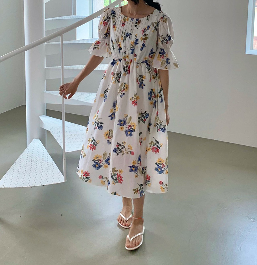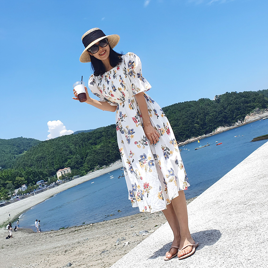 바로발송 로맨틱 플라워 자수 꽃 퍼프 원피스