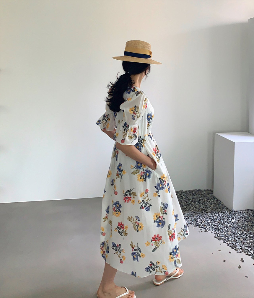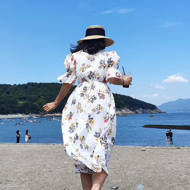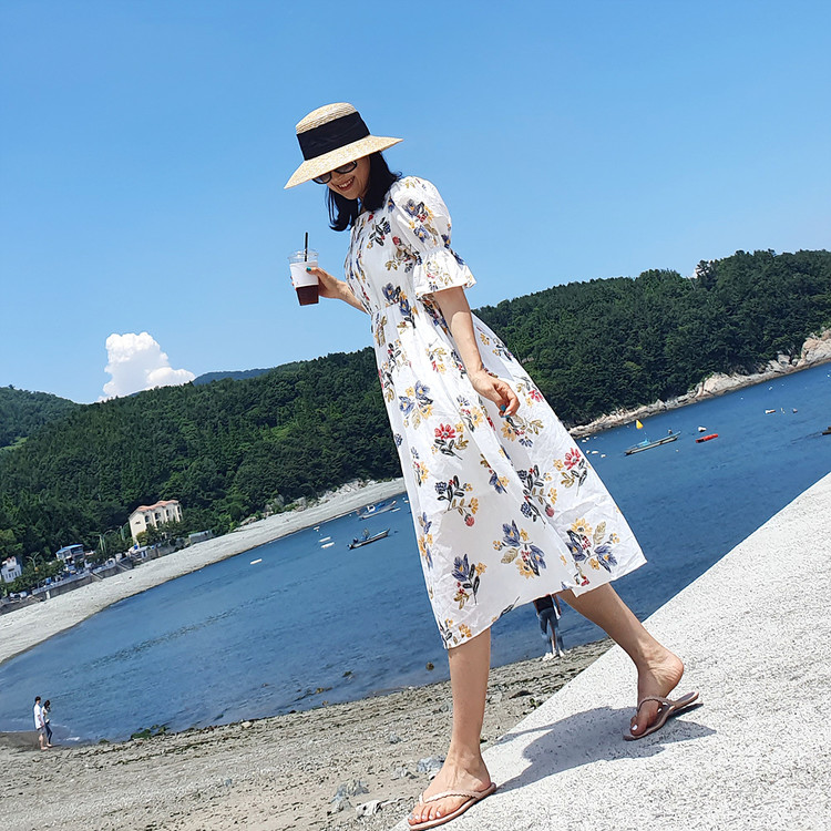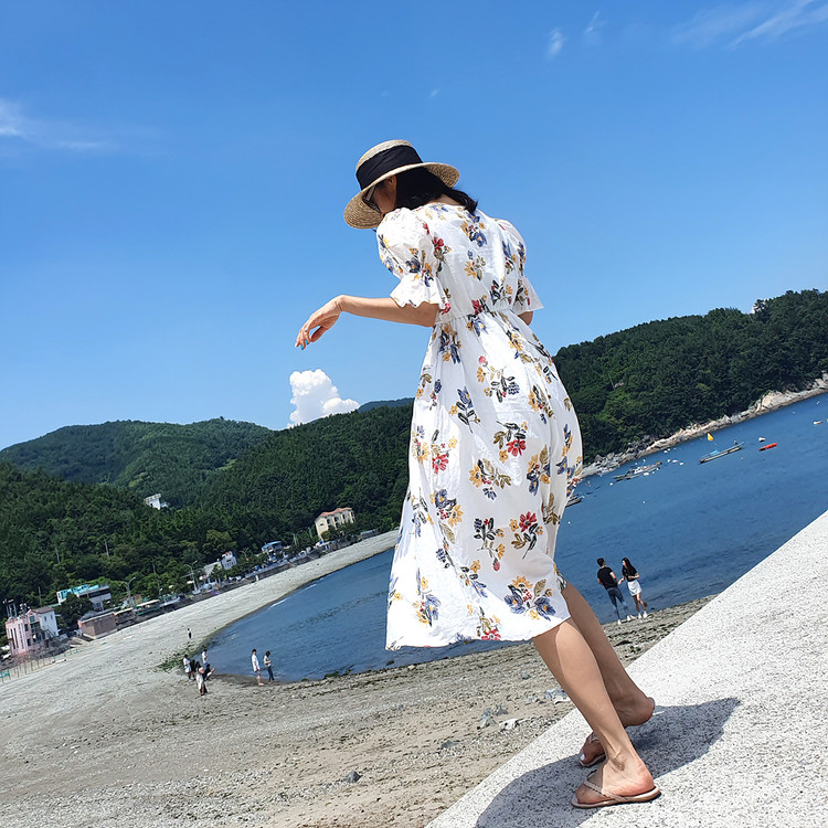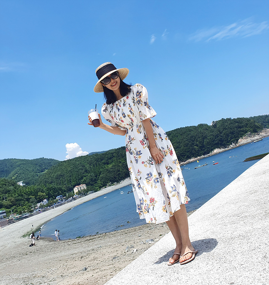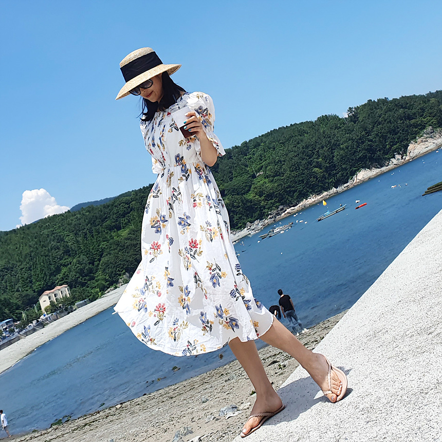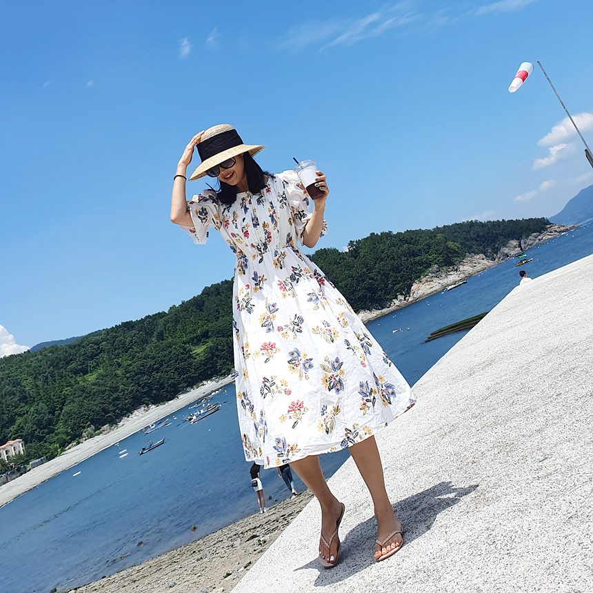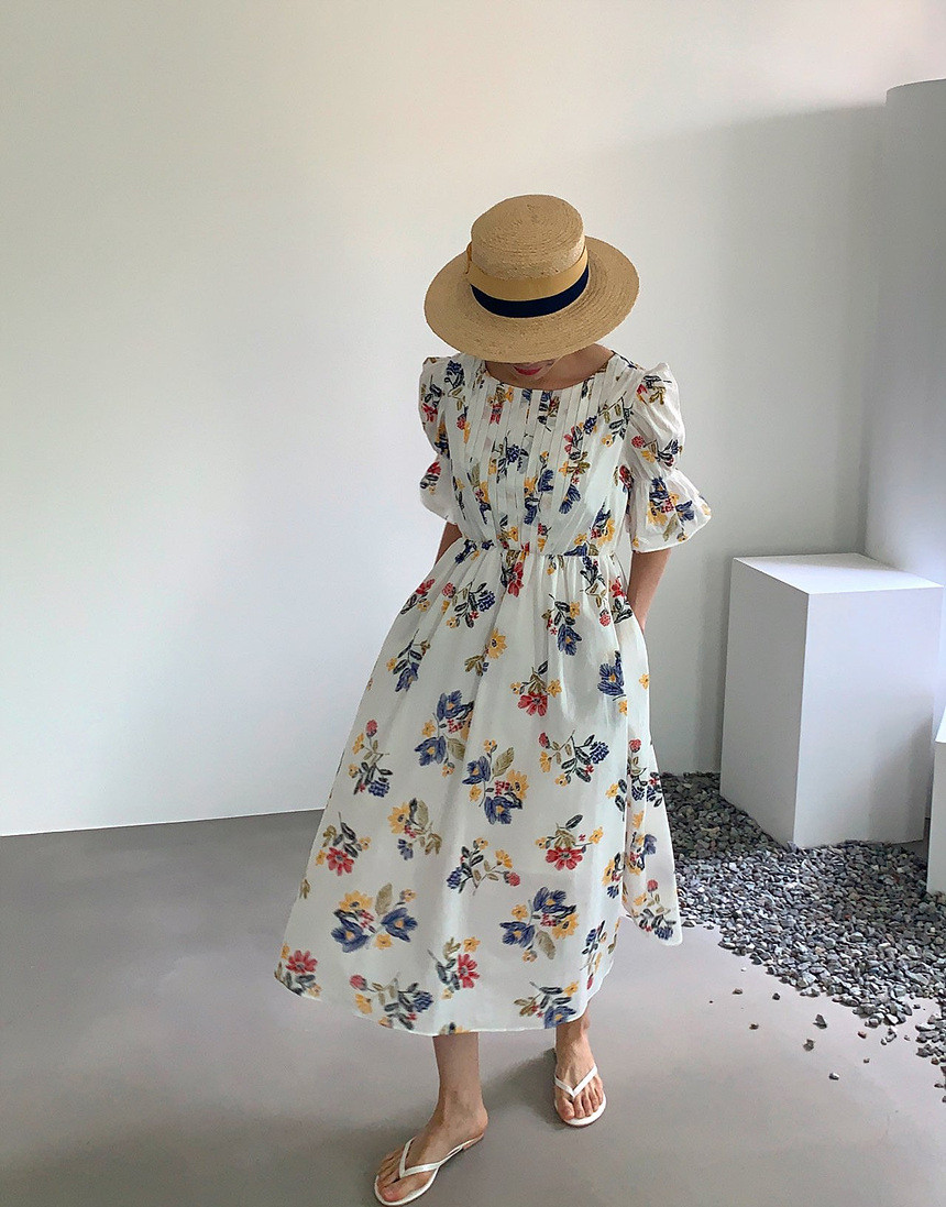 바로발송 로맨틱 플라워 자수 꽃 퍼프 원피스