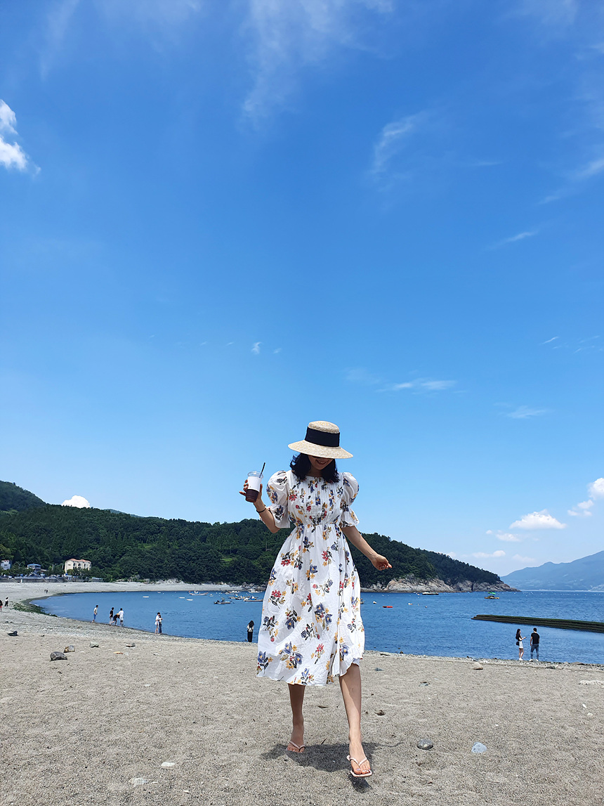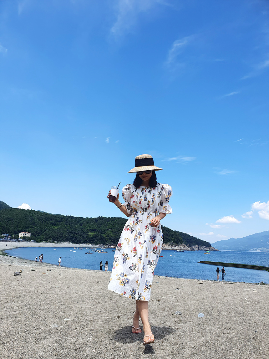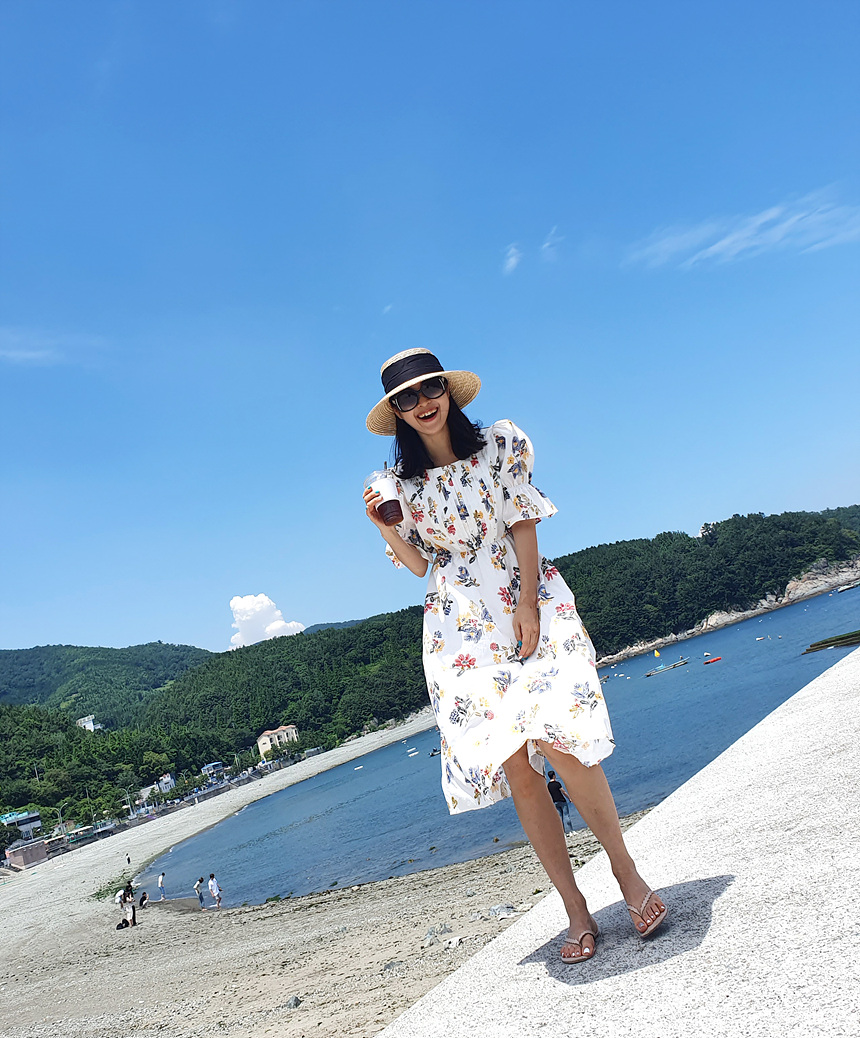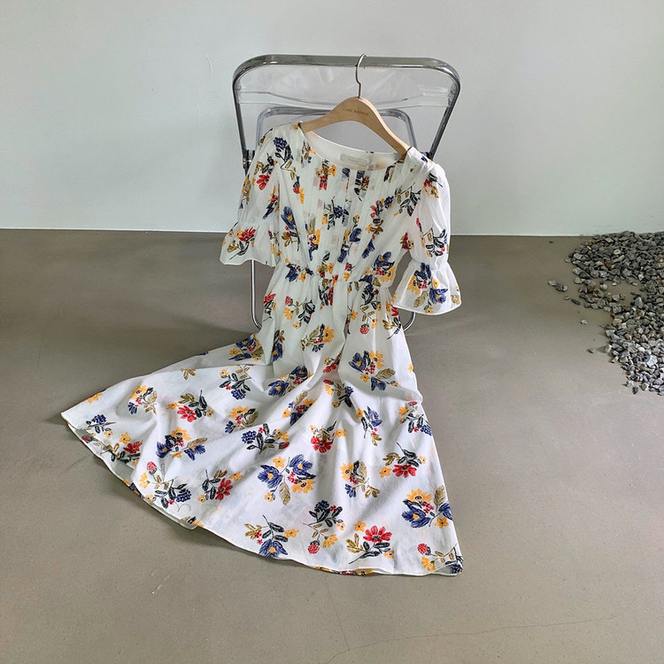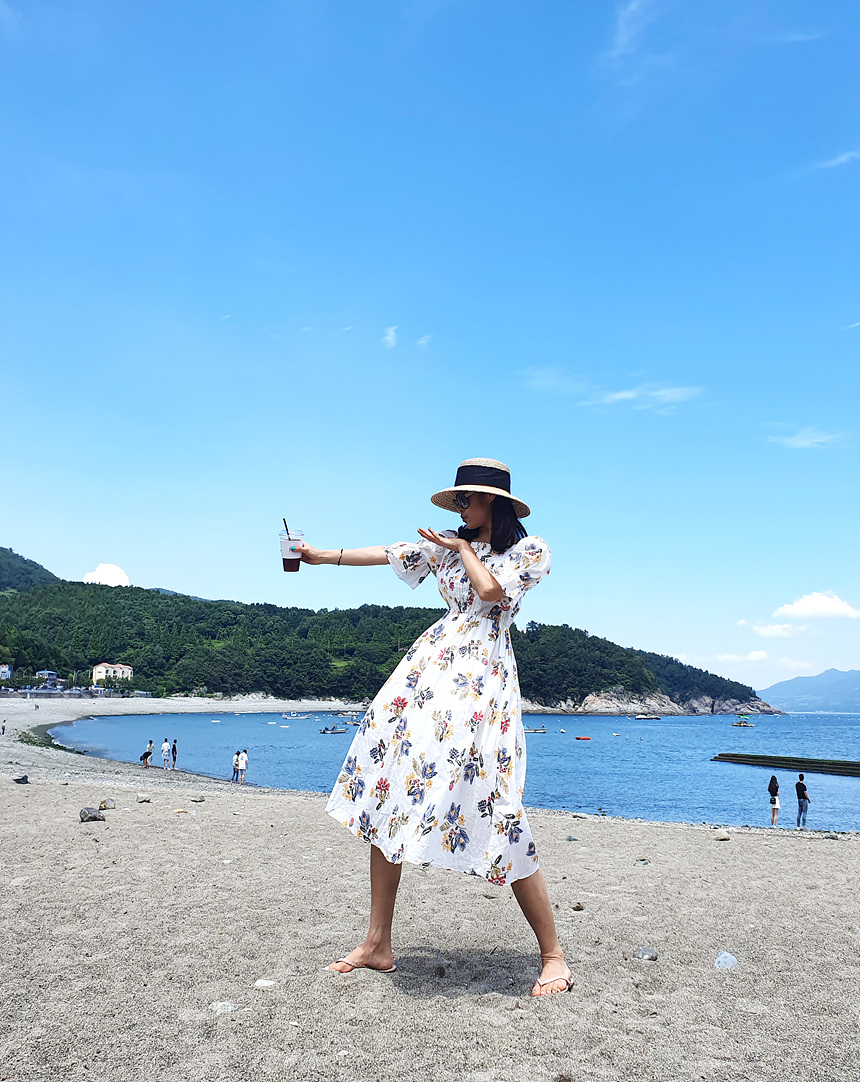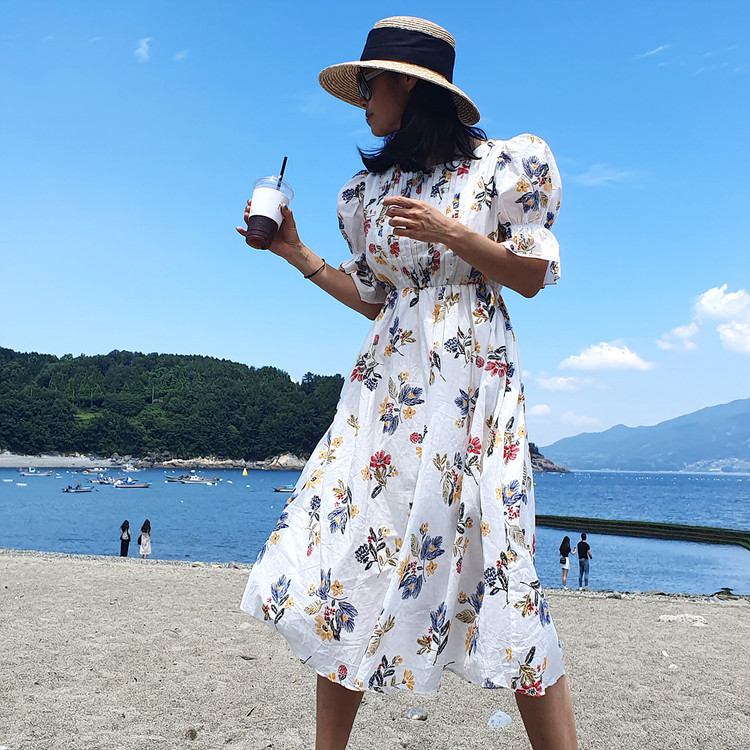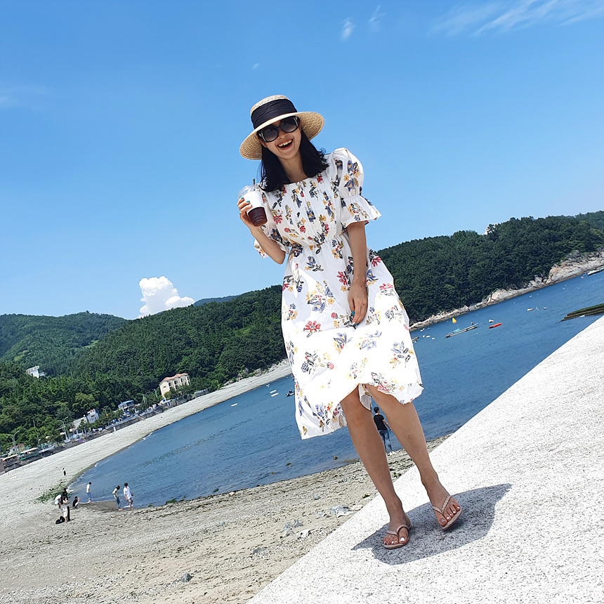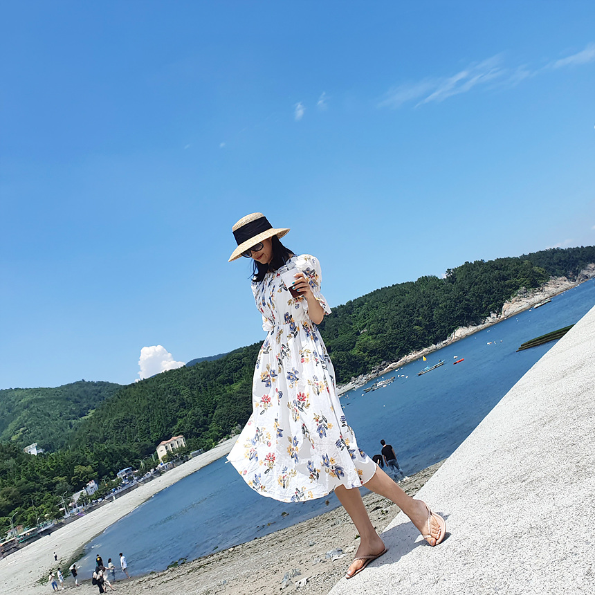 바로발송 로맨틱 플라워 자수 꽃 퍼프 원피스