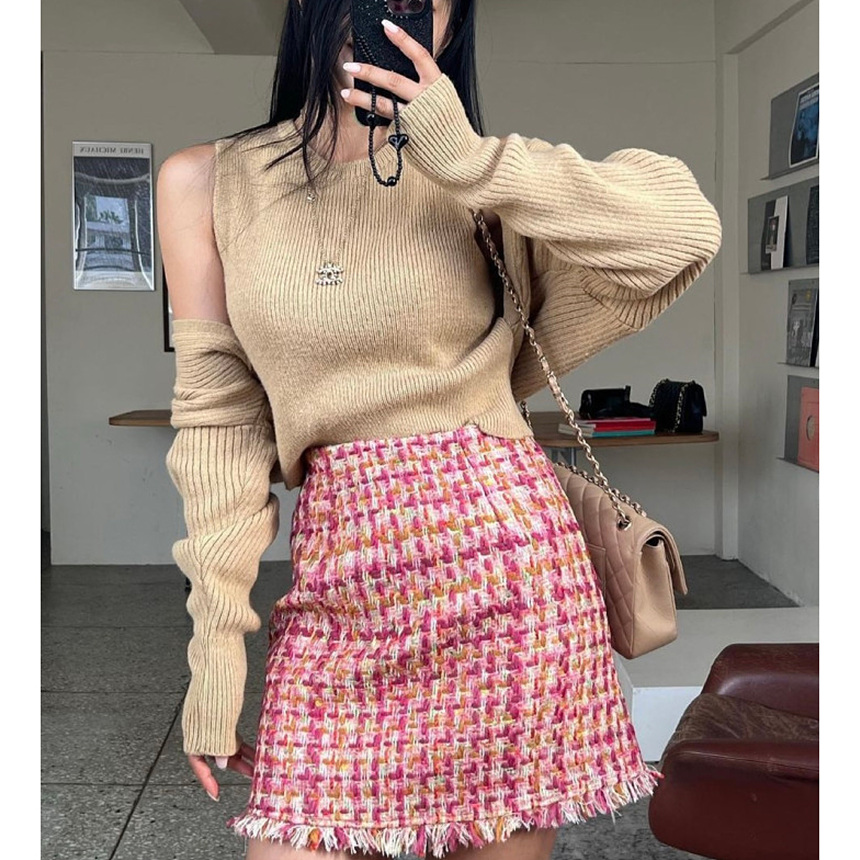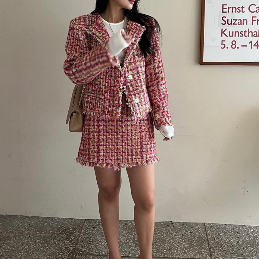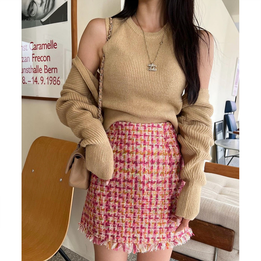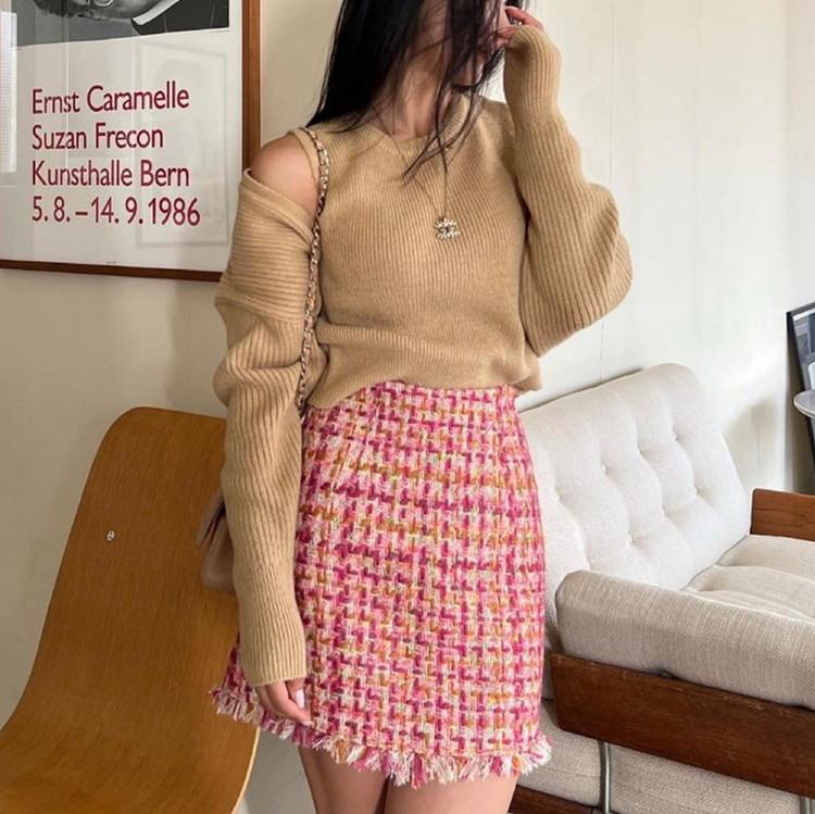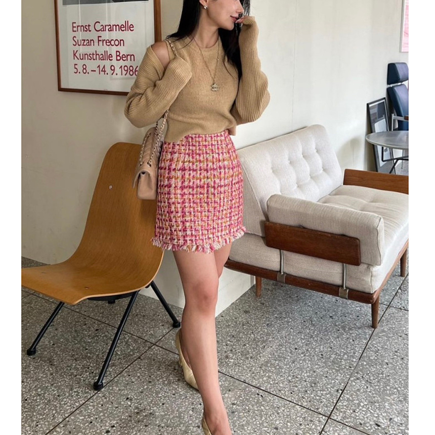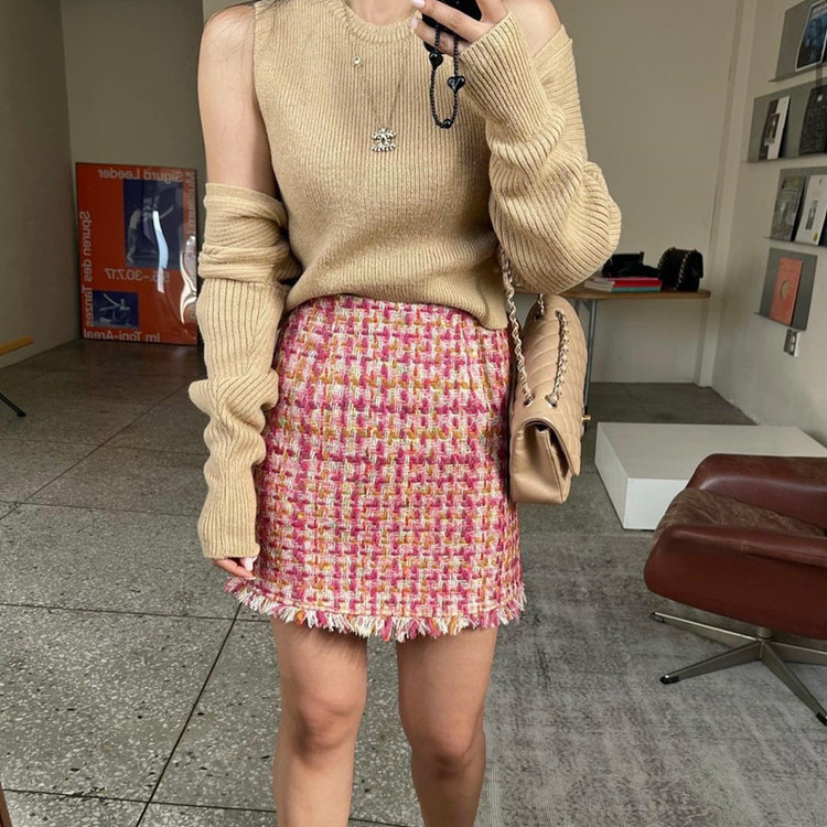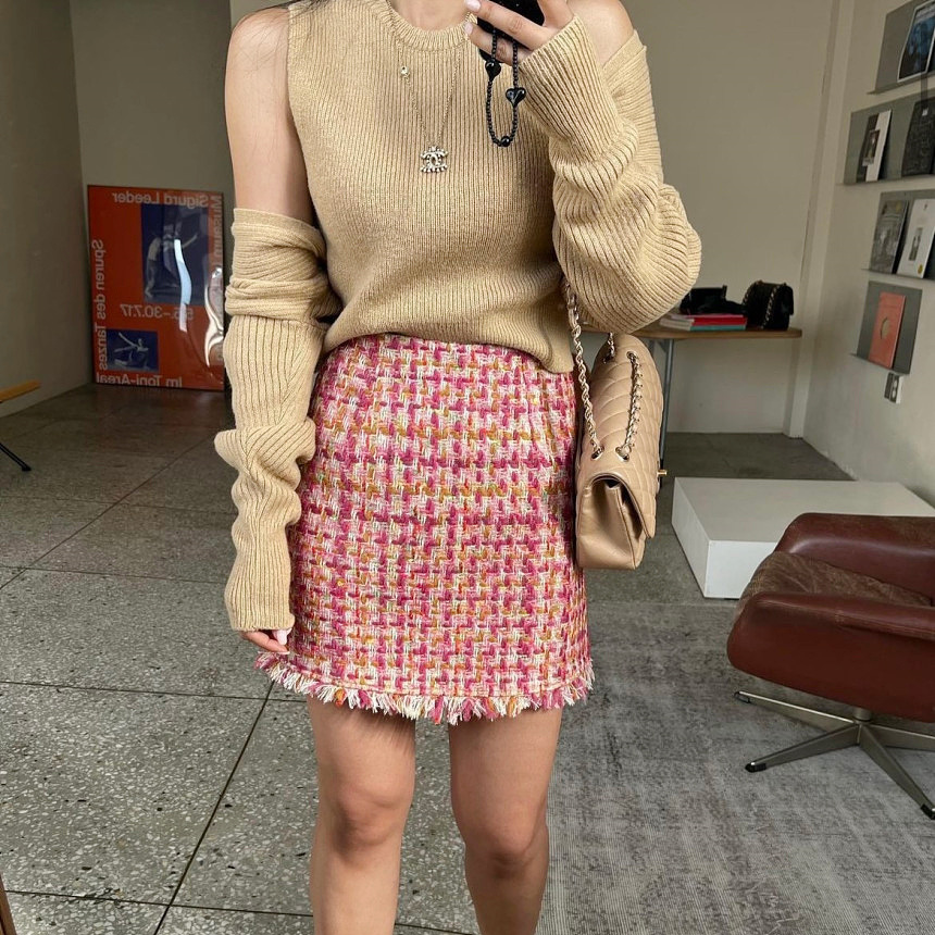 바로발송 핫걸 트위드 프린지 미니 스커트
