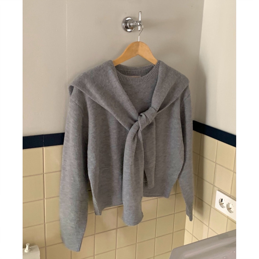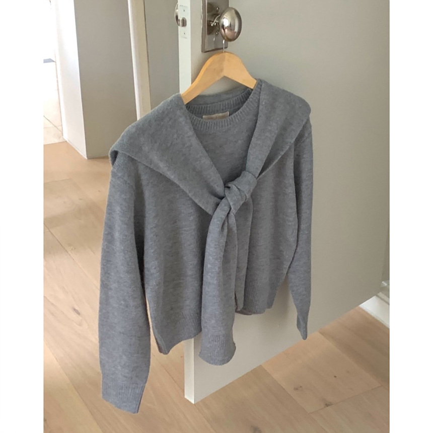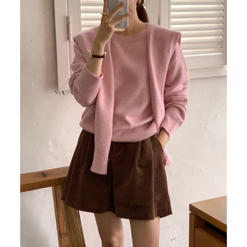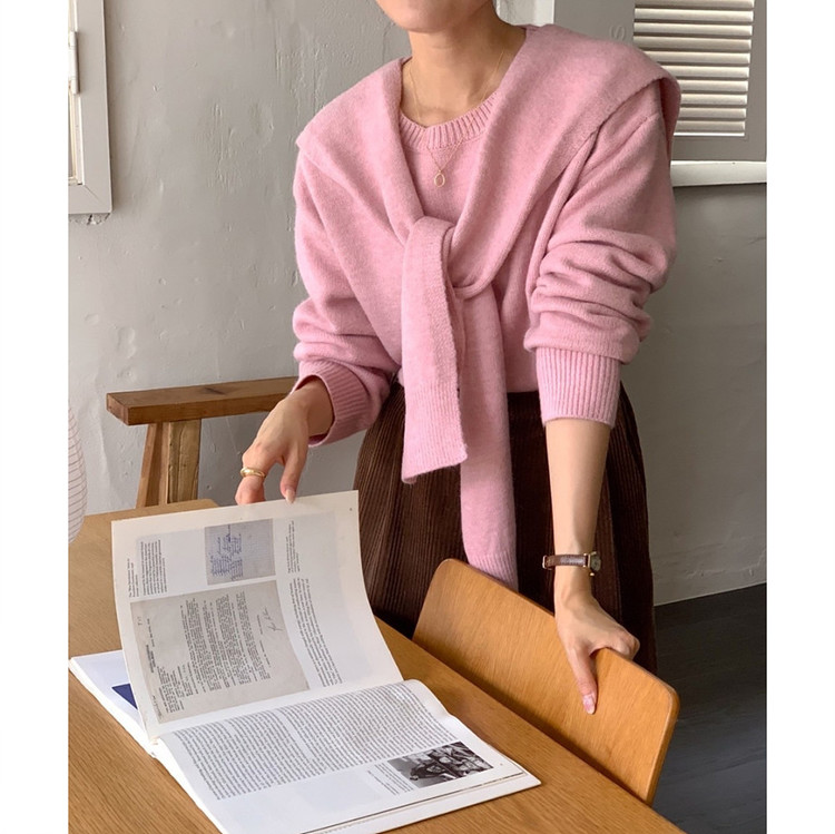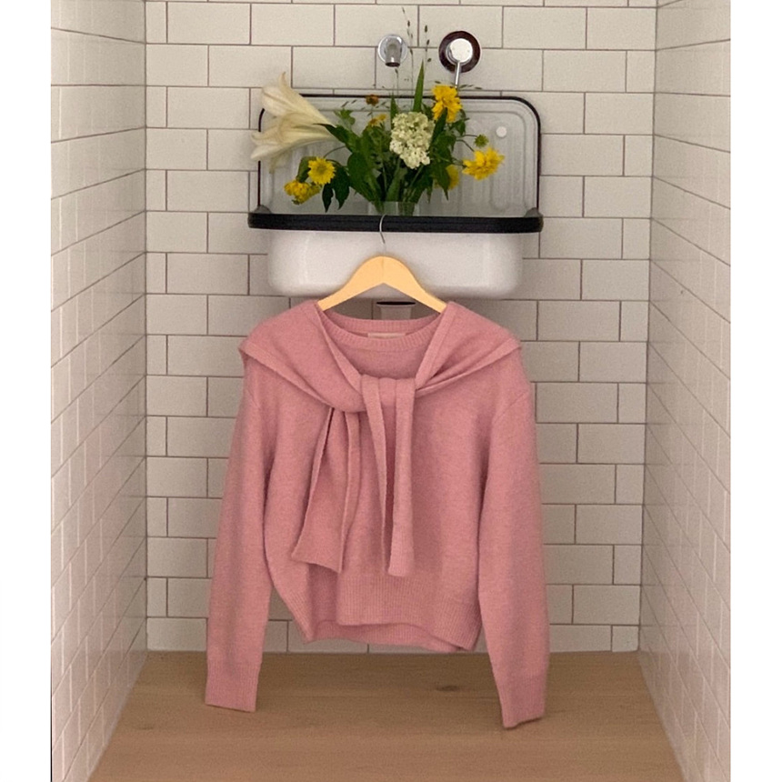 바로발송 나미 라운드 니트와 숄 투피스 세트