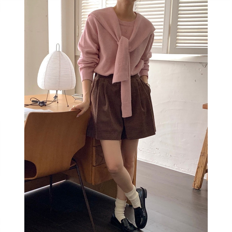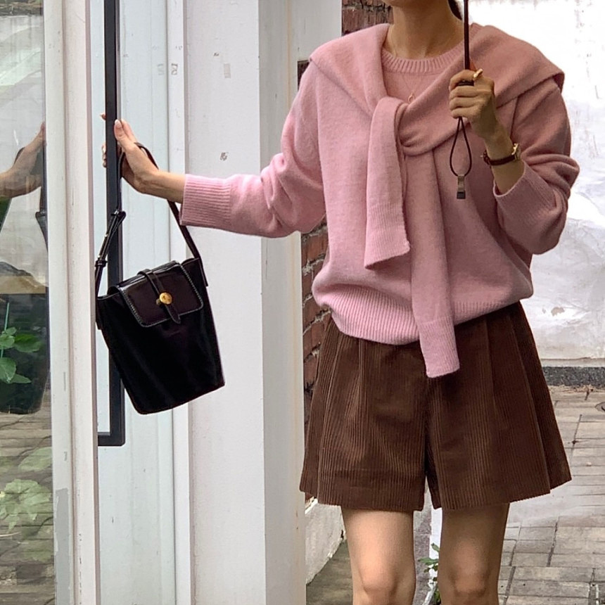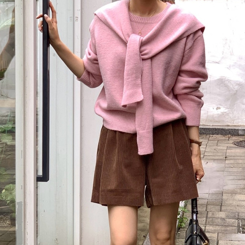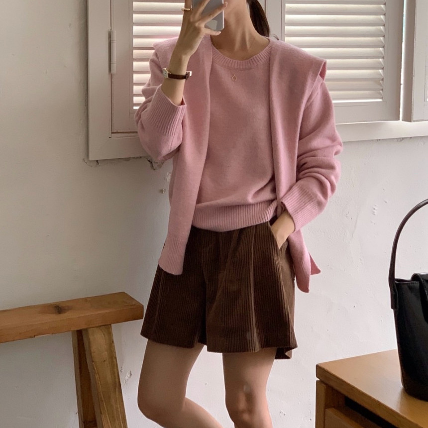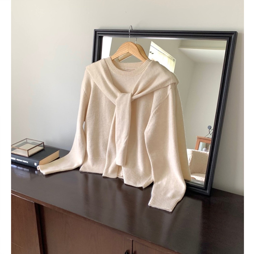 바로발송 나미 라운드 니트와 숄 투피스 세트