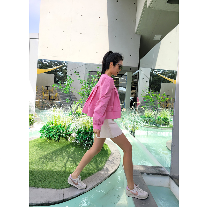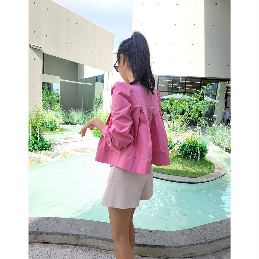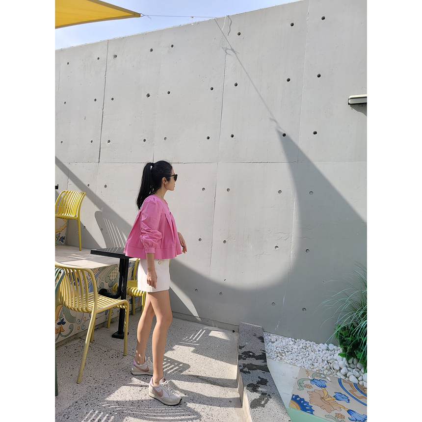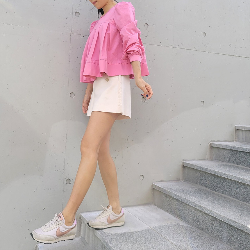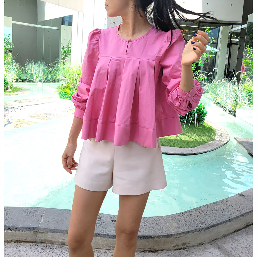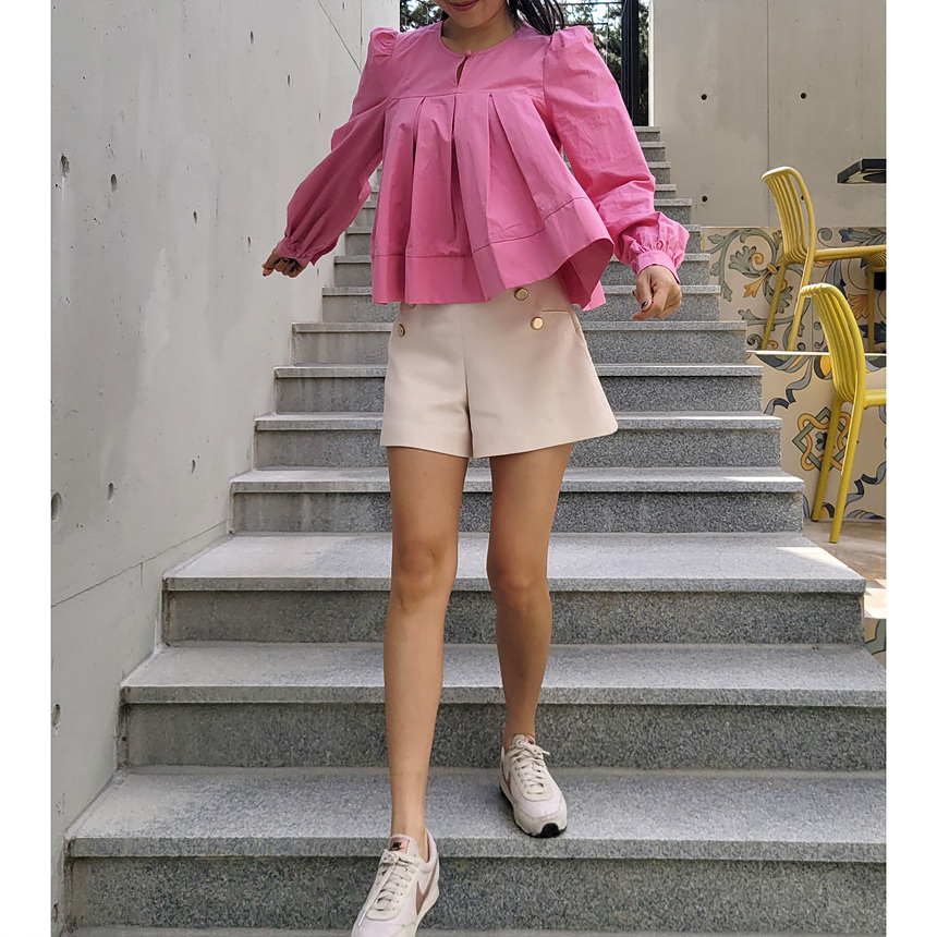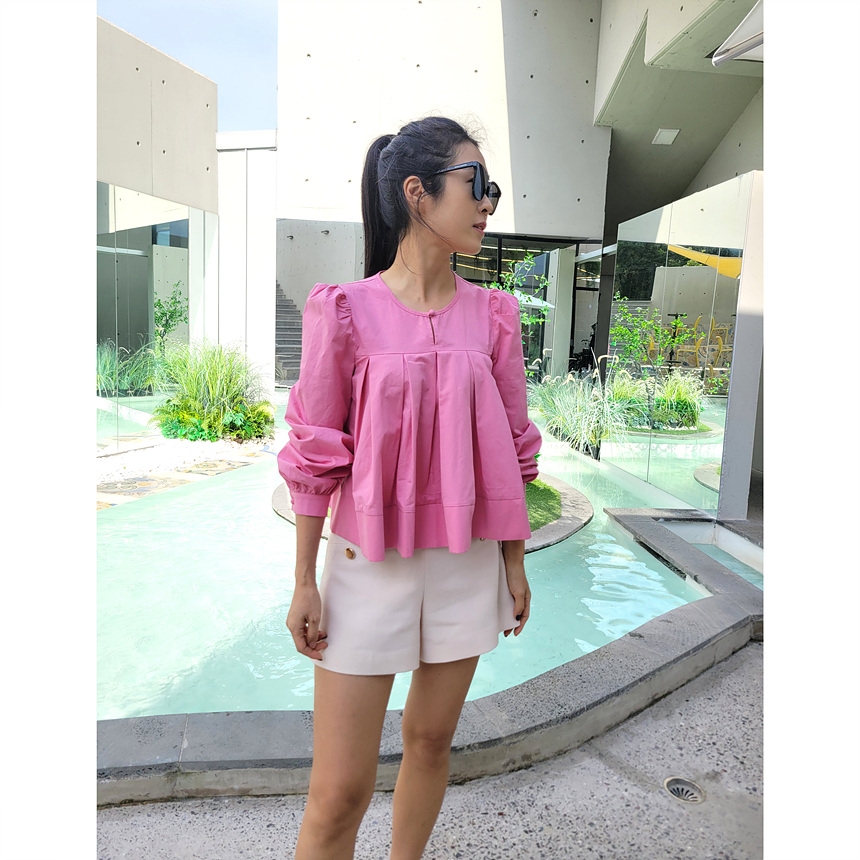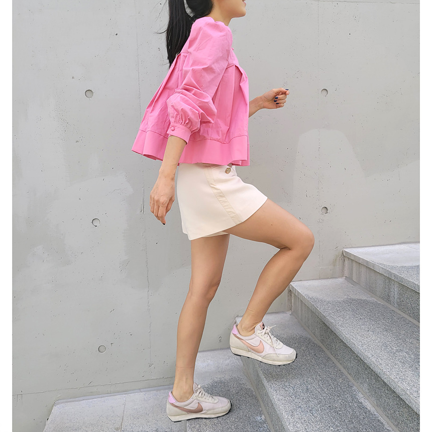 바로발송 핑크 핀턱 훌 라운드 블라우스