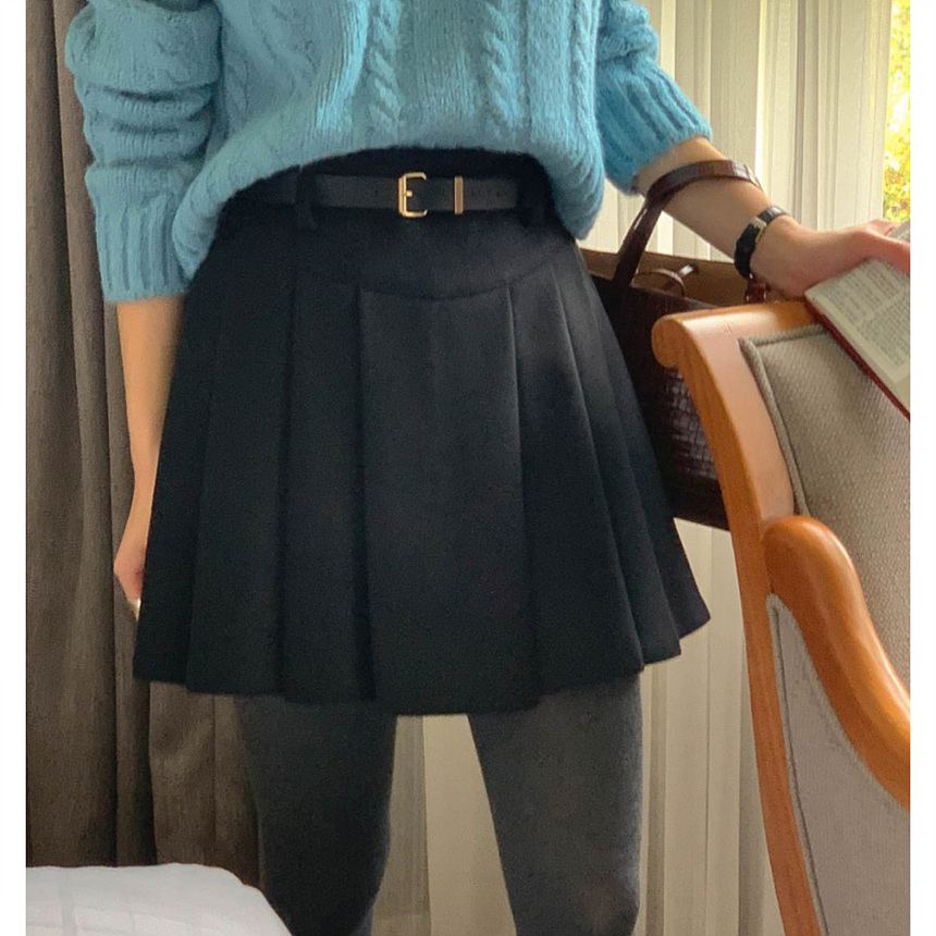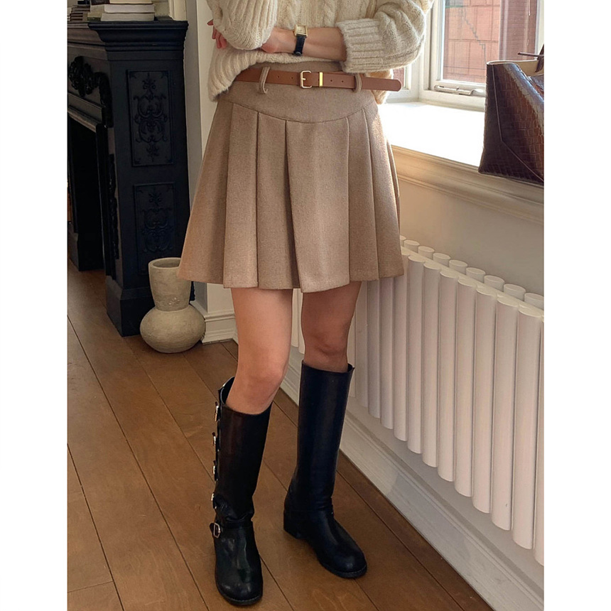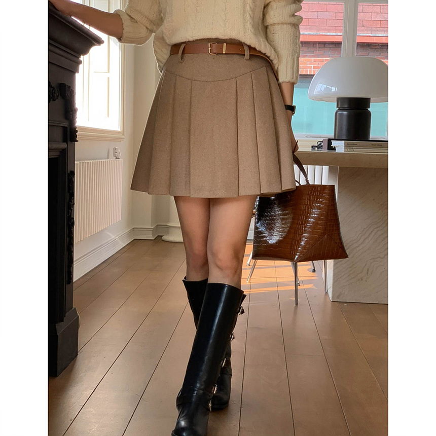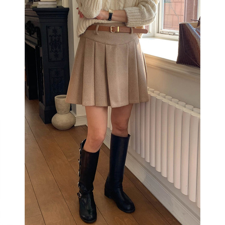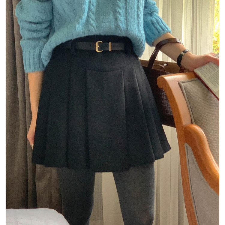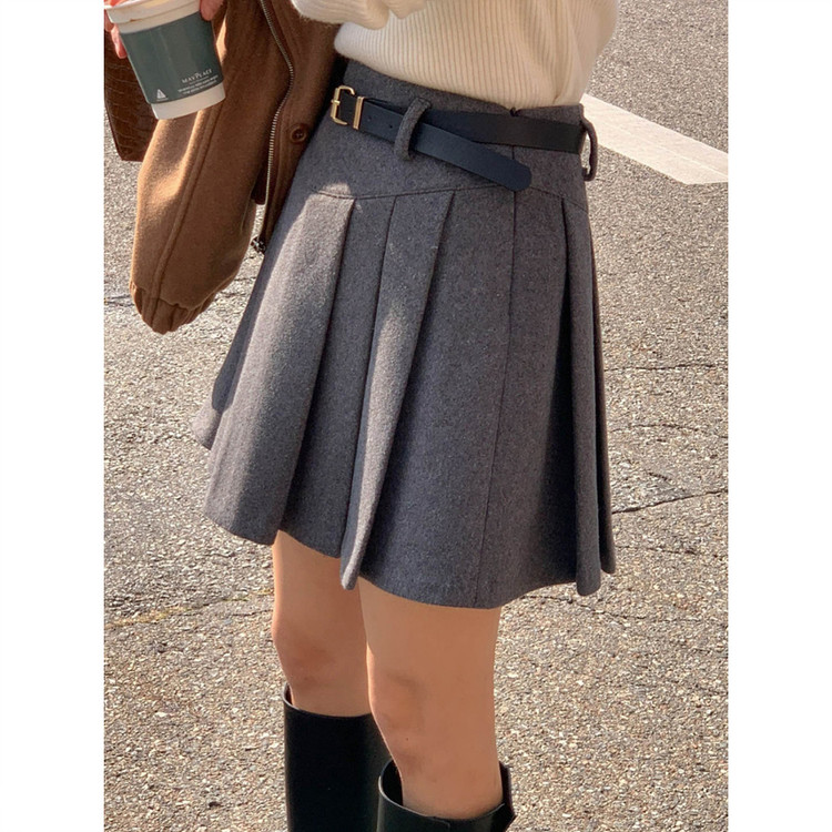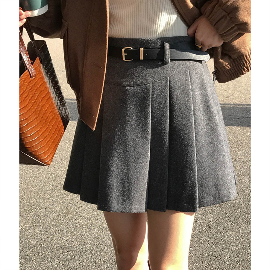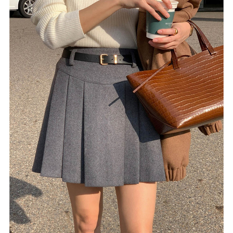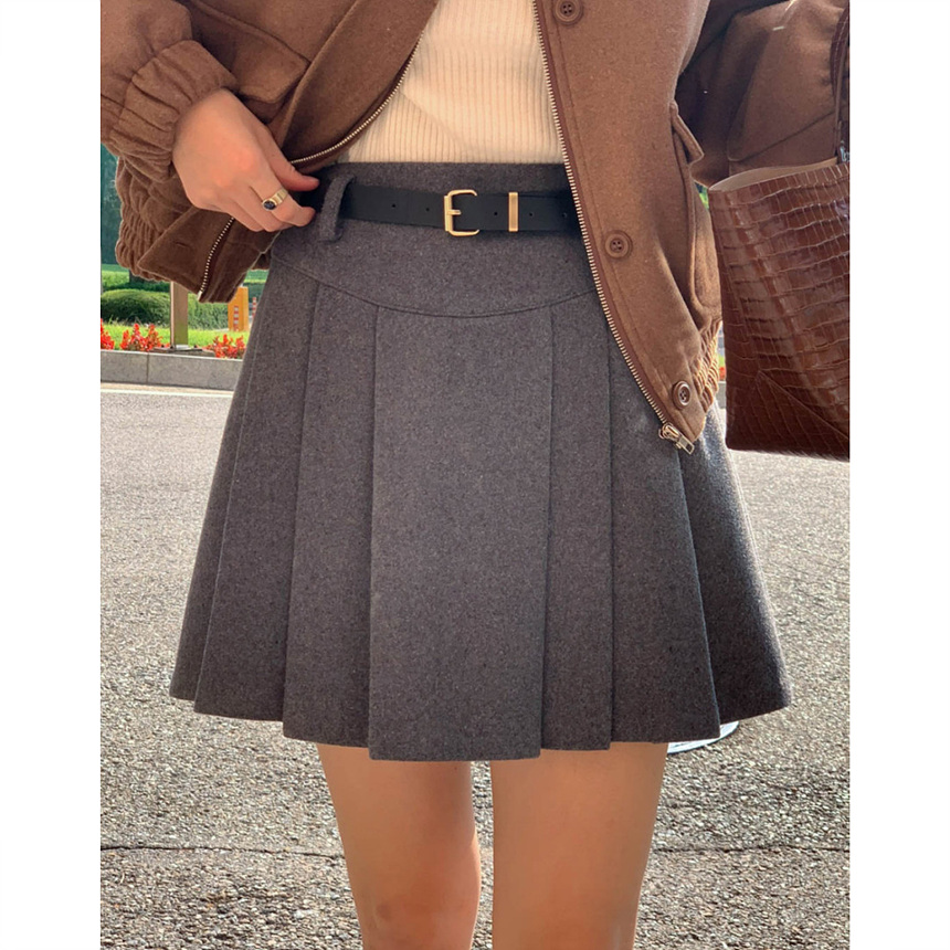 바로발송 벨트포함 모직 플리츠 미니 스커트