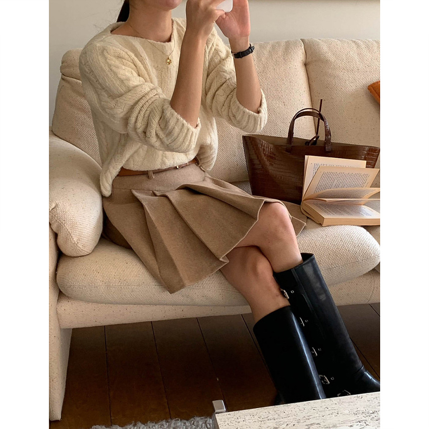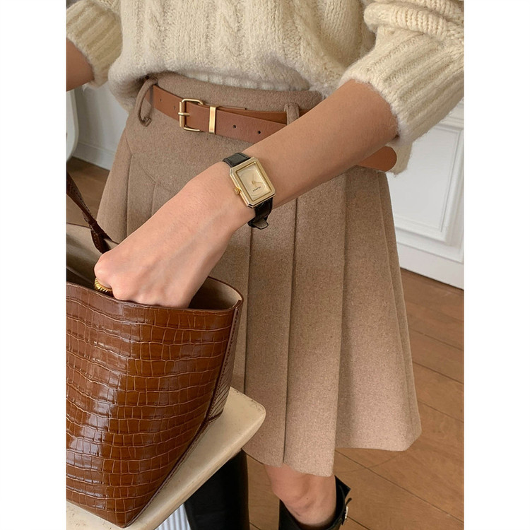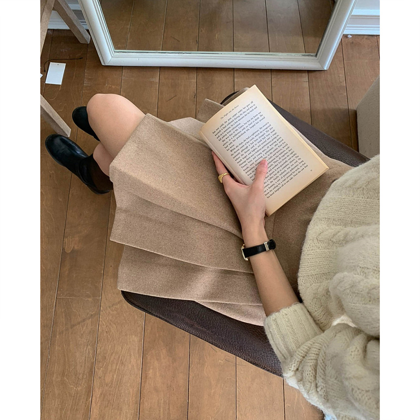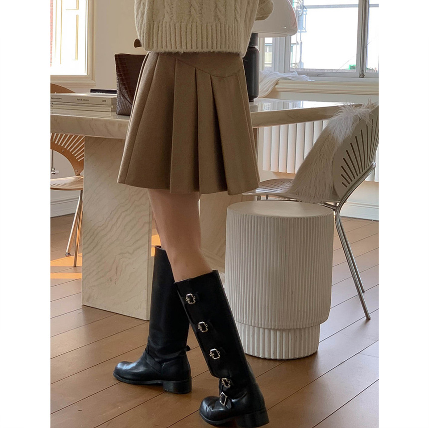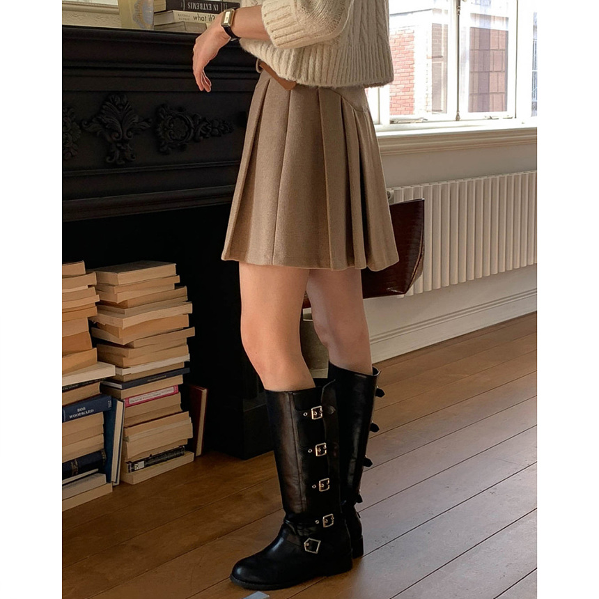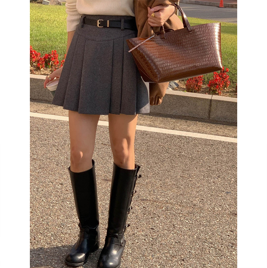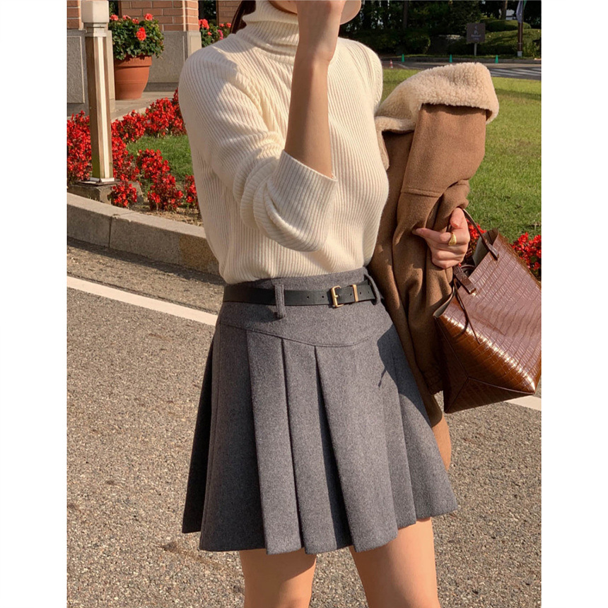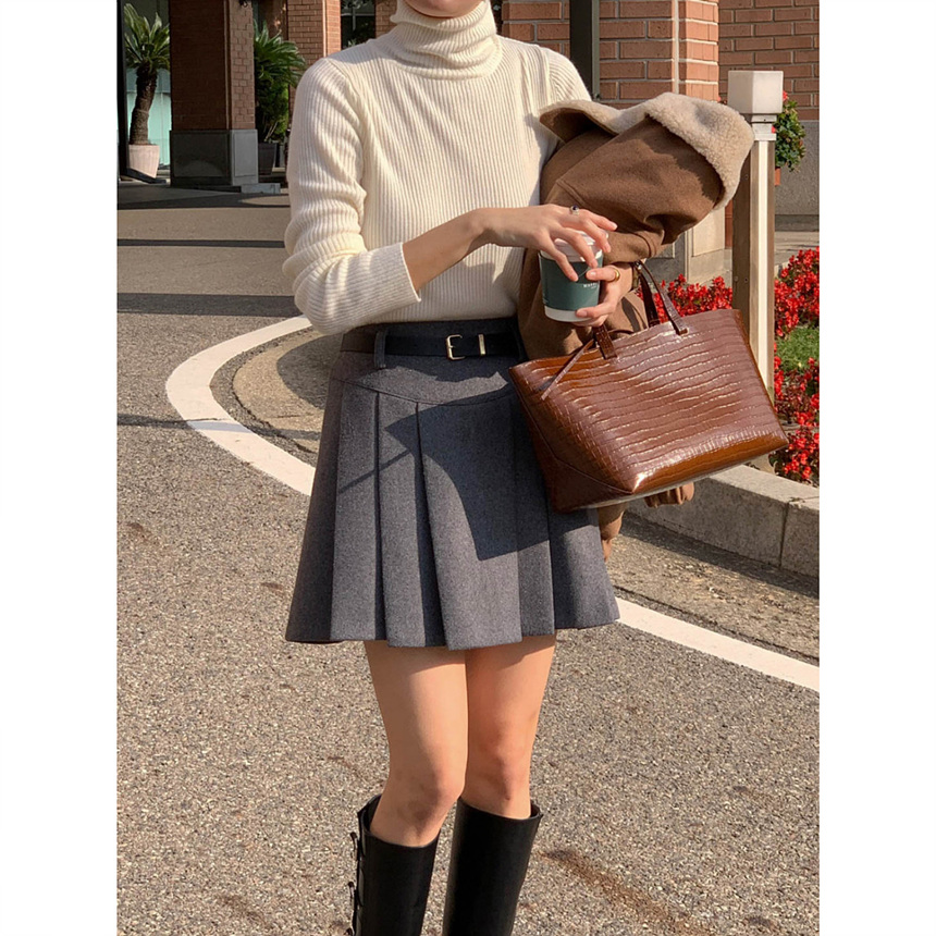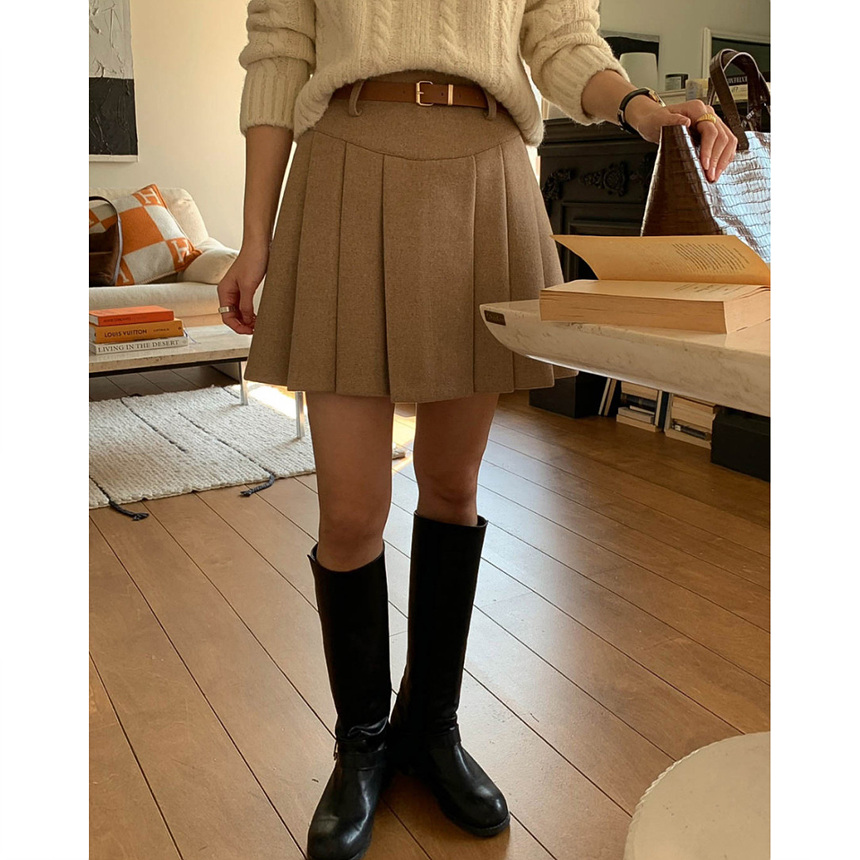 바로발송 벨트포함 모직 플리츠 미니 스커트