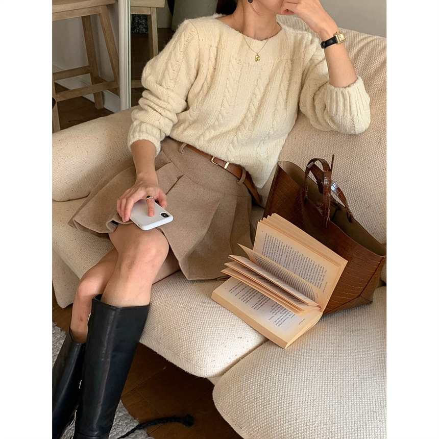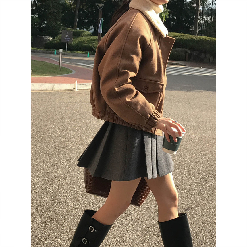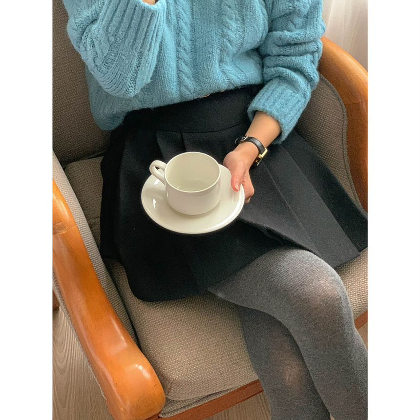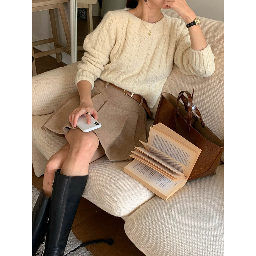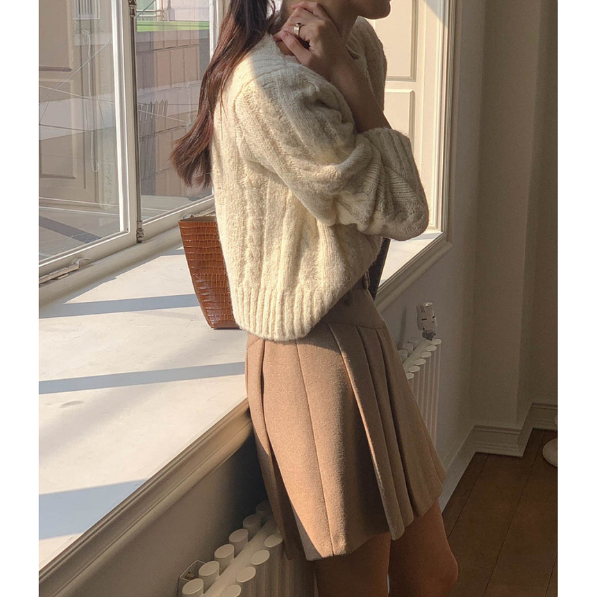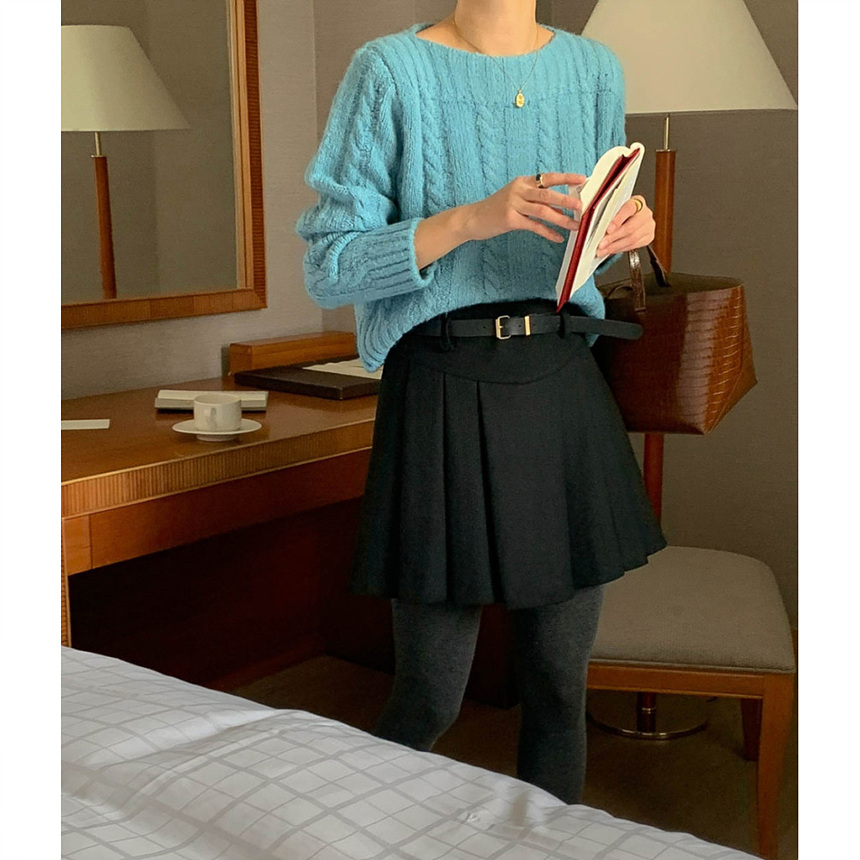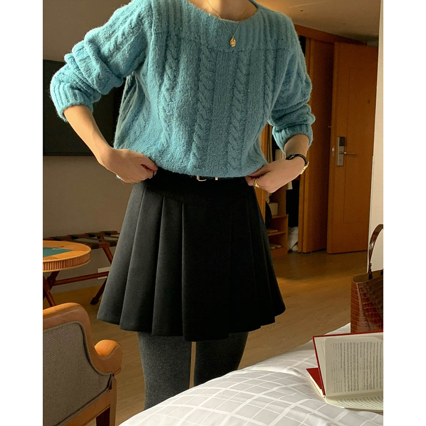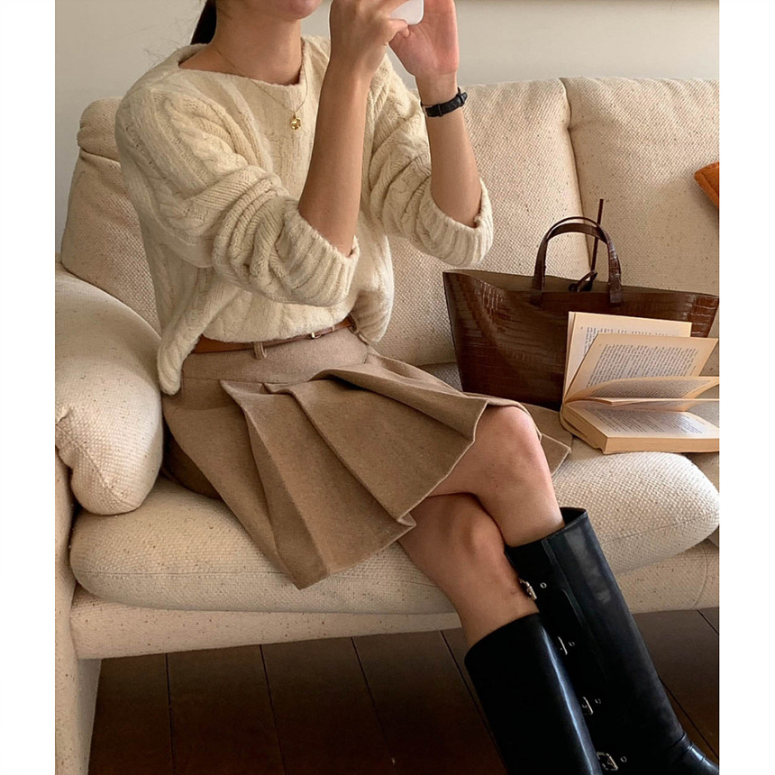 바로발송 벨트포함 모직 플리츠 미니 스커트