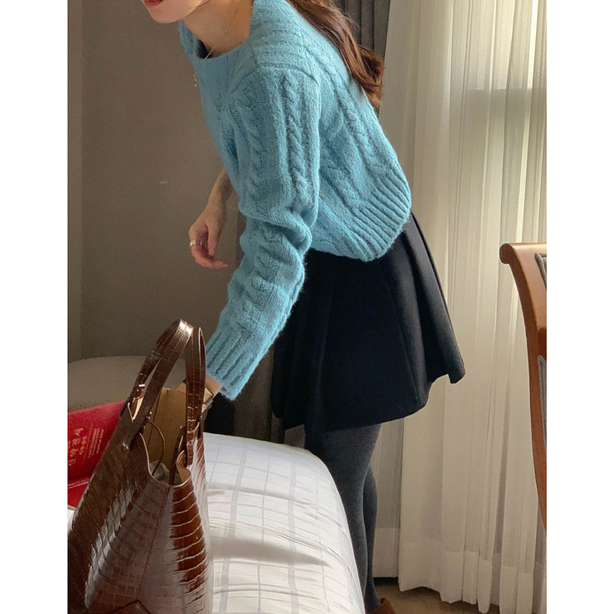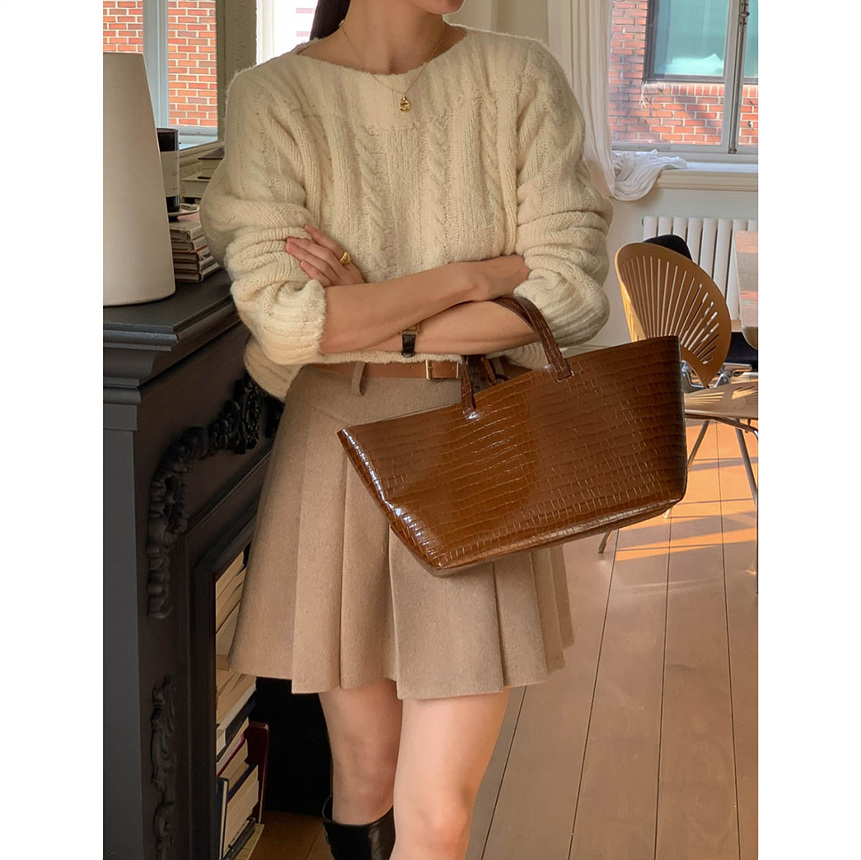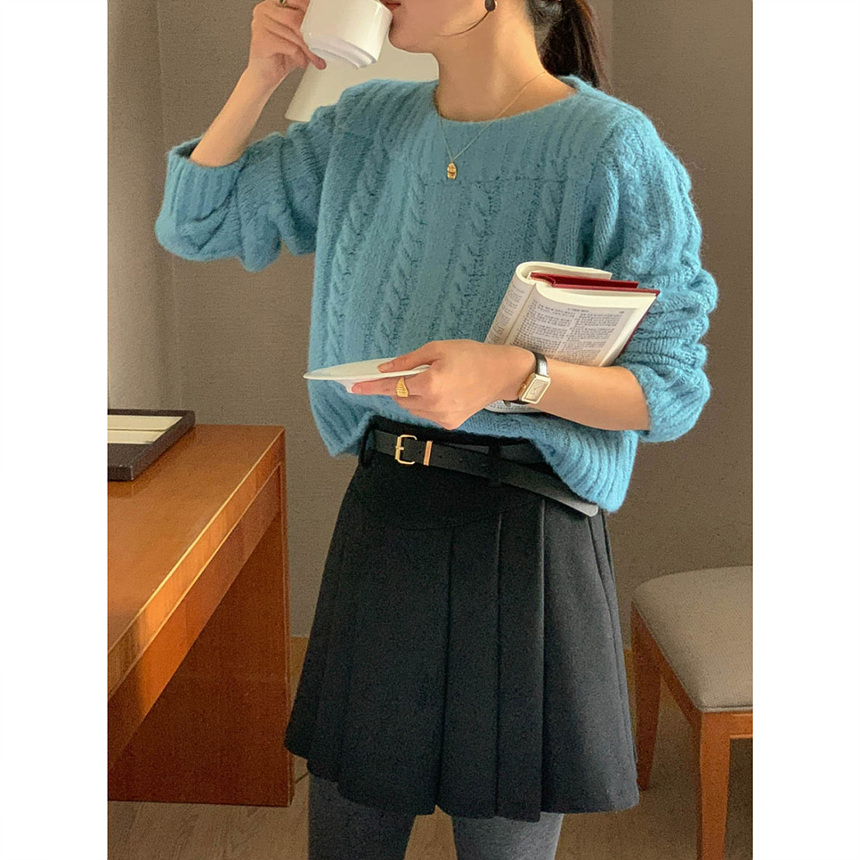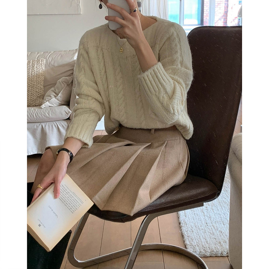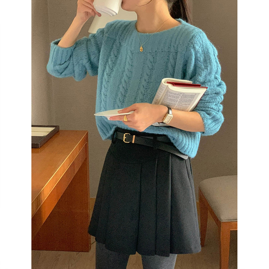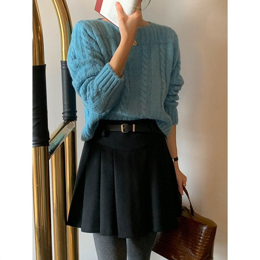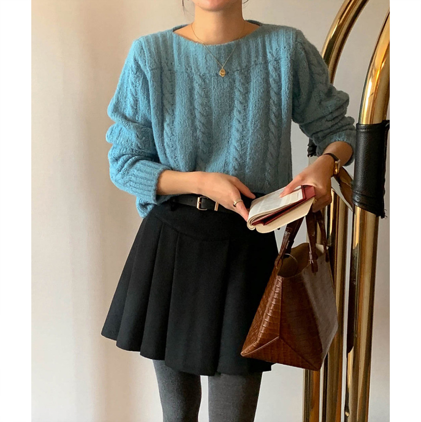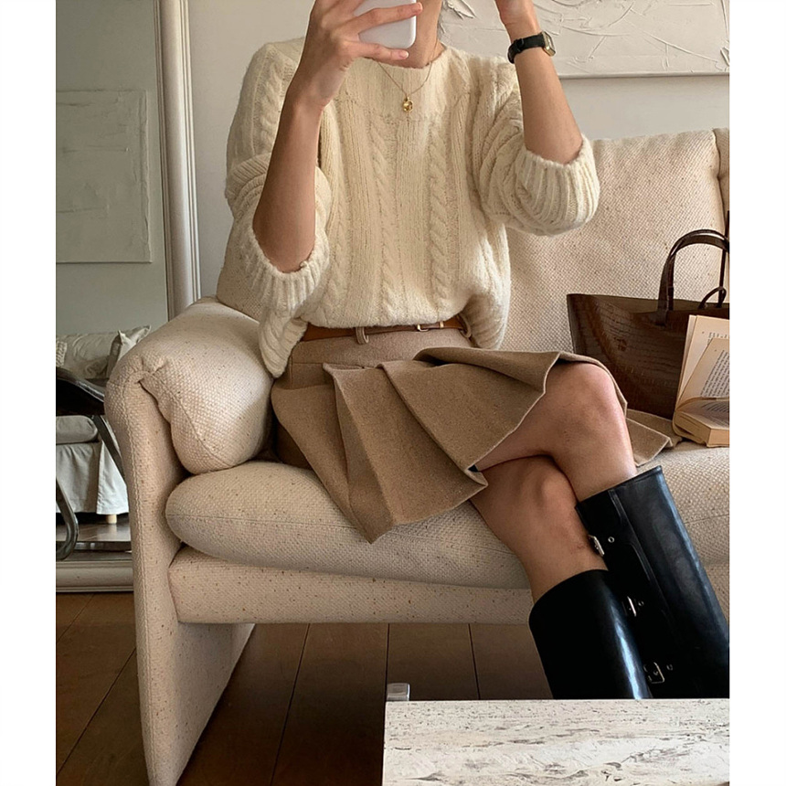바로발송 벨트포함 모직 플리츠 미니 스커트