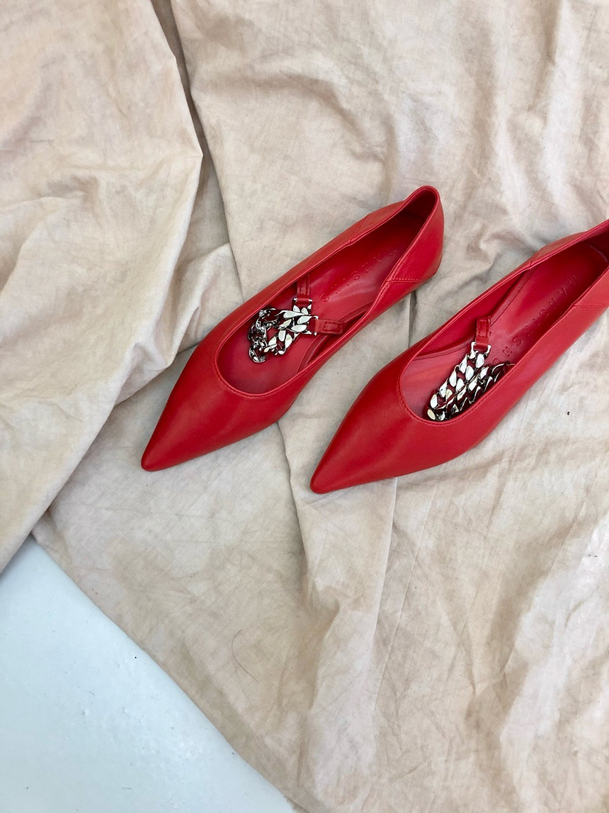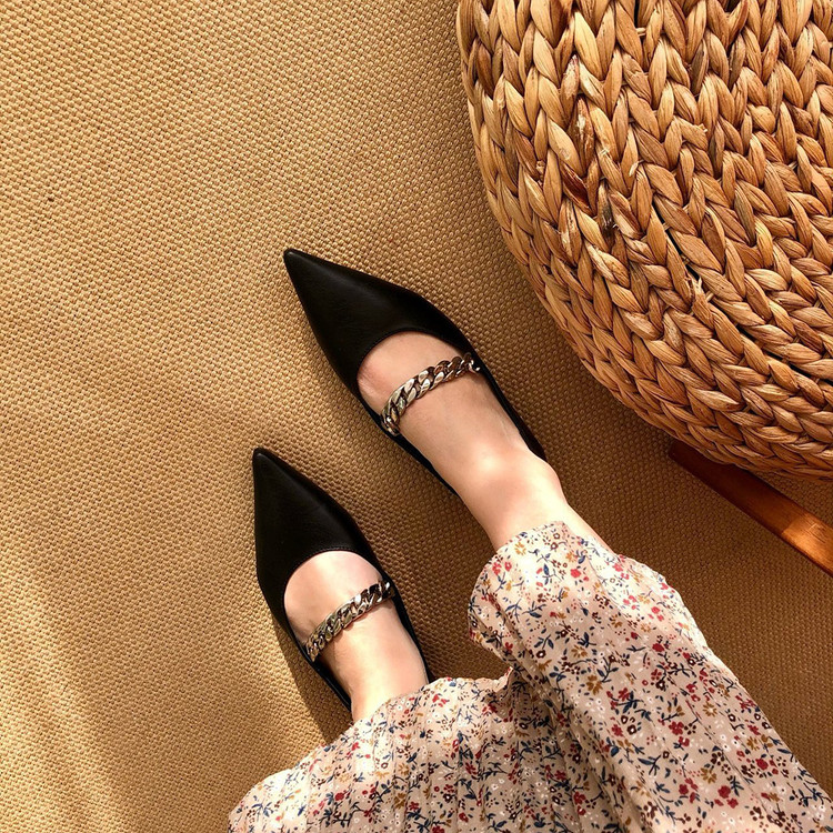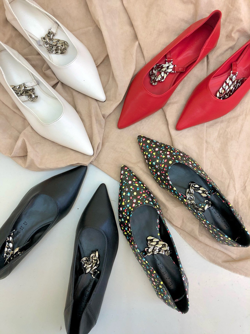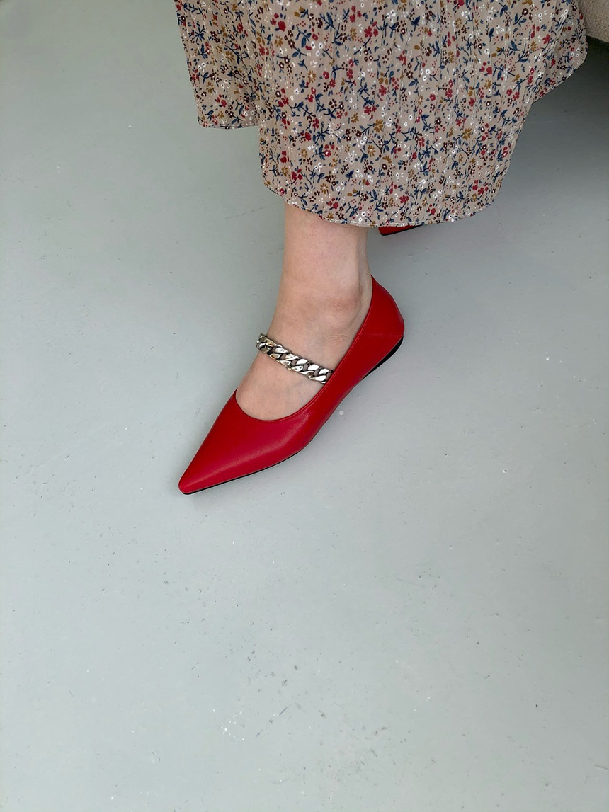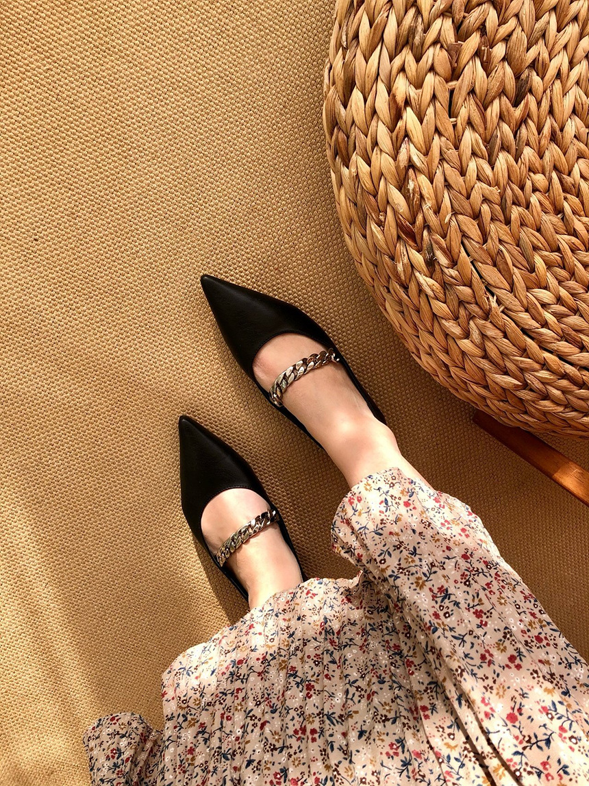 발등을 가로지르는 체인 스트랩이 포인트가 되어