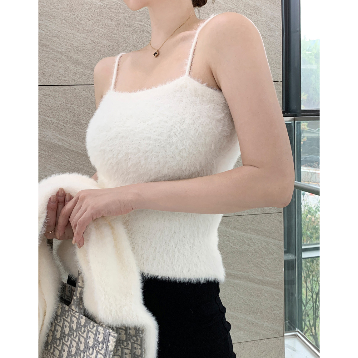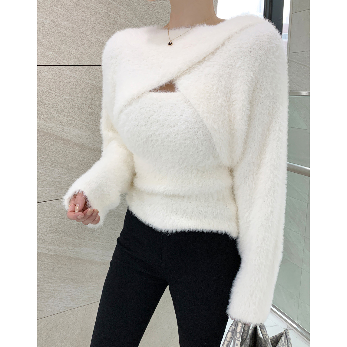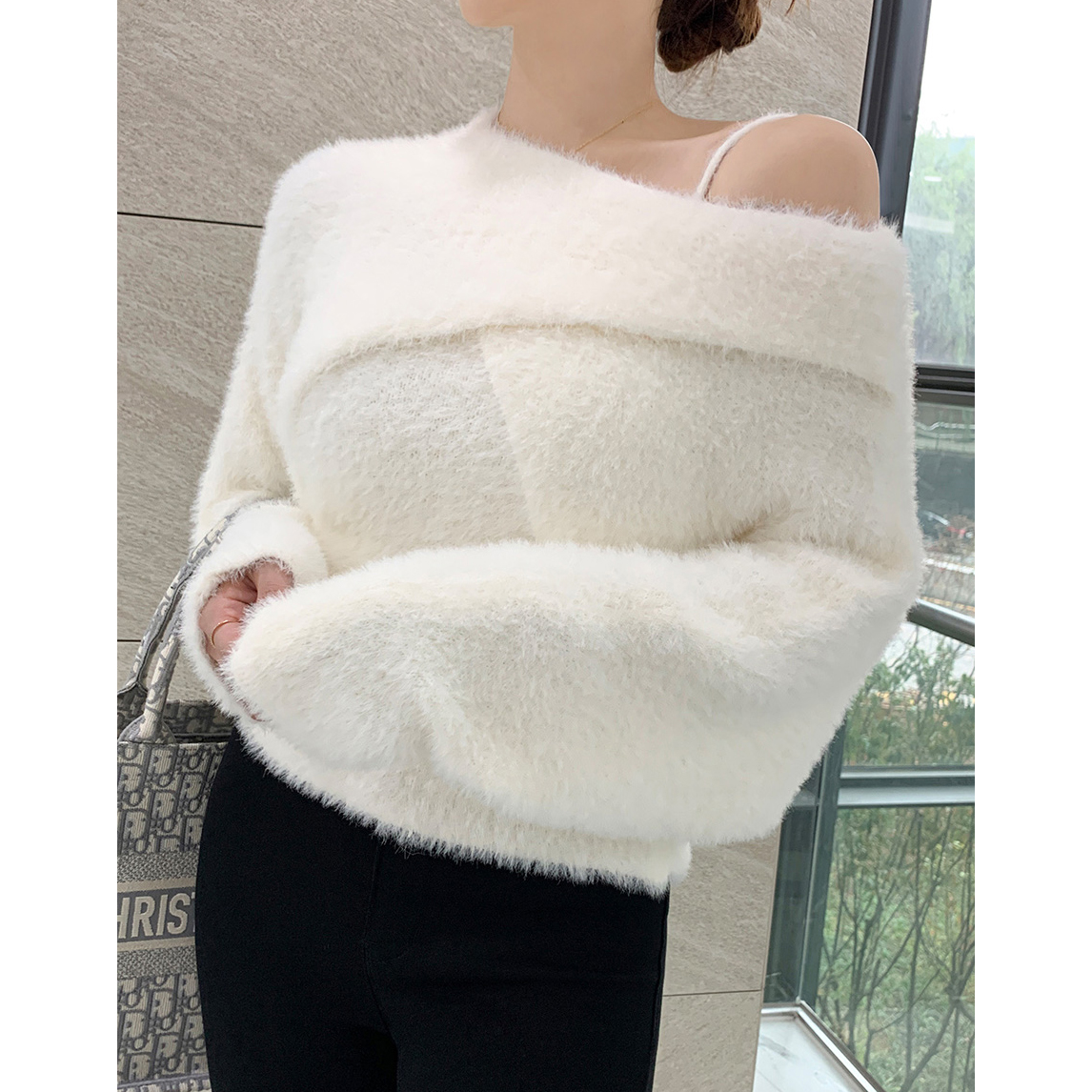 볼레로를 한쪽 숄더에 살짝 걸쳐주면