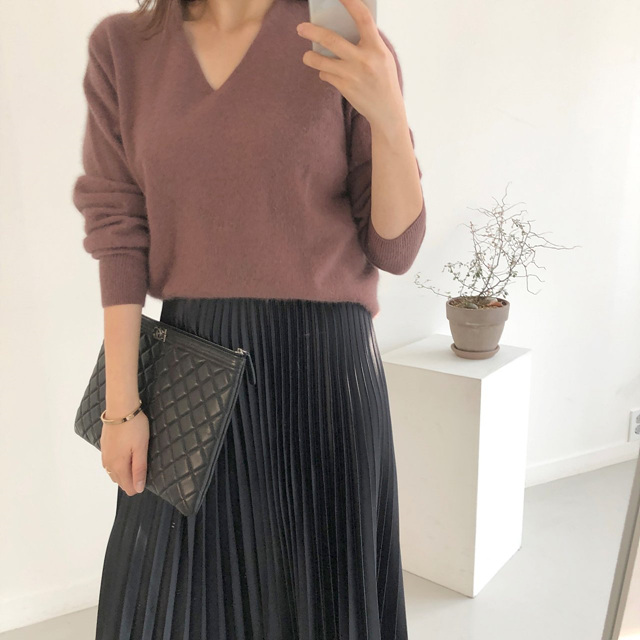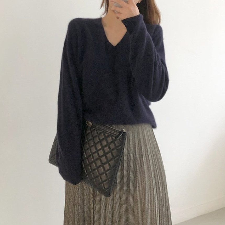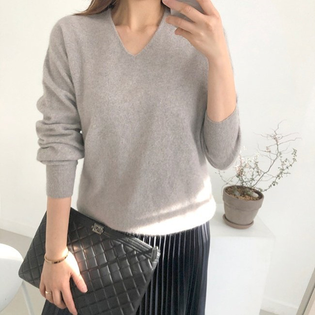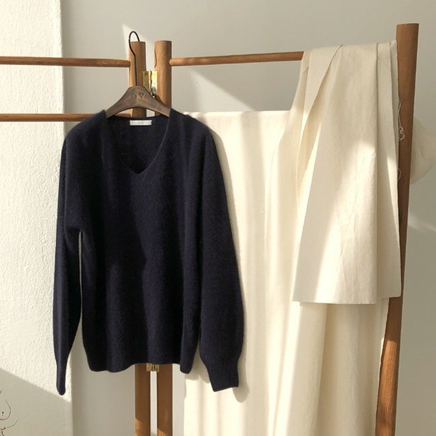 고퀄 폭스 울 브이넥 홀가 니트 스웨터