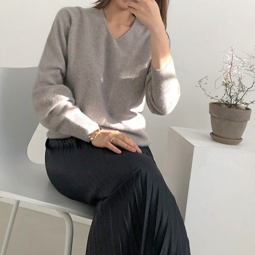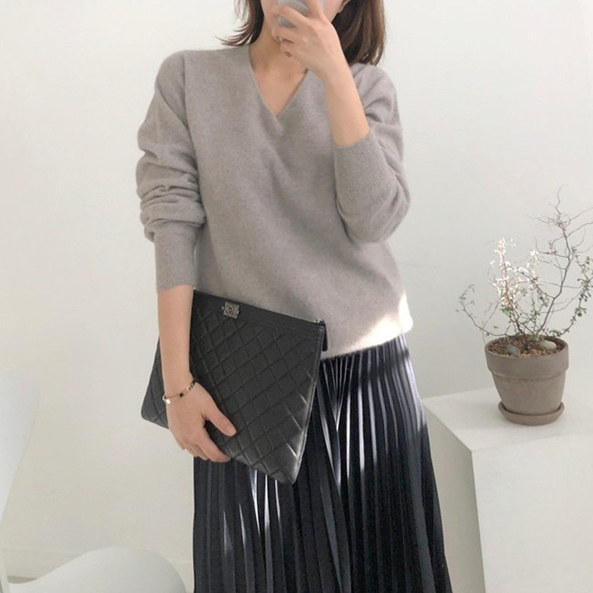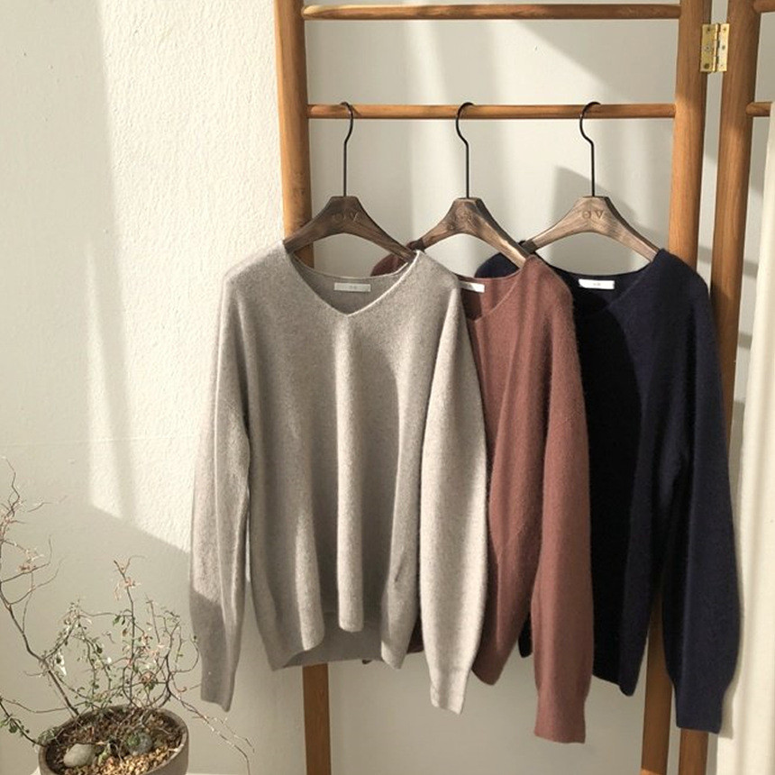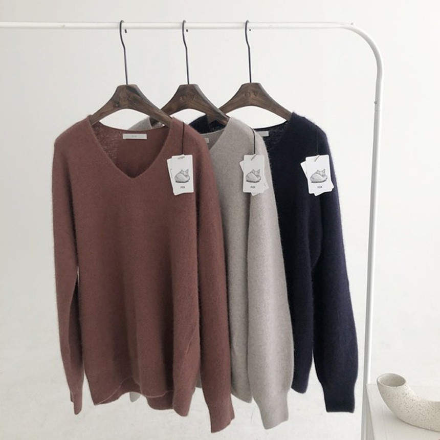 에밀리 폭스 울 브이넥 홀가먼트 니트 스웨터