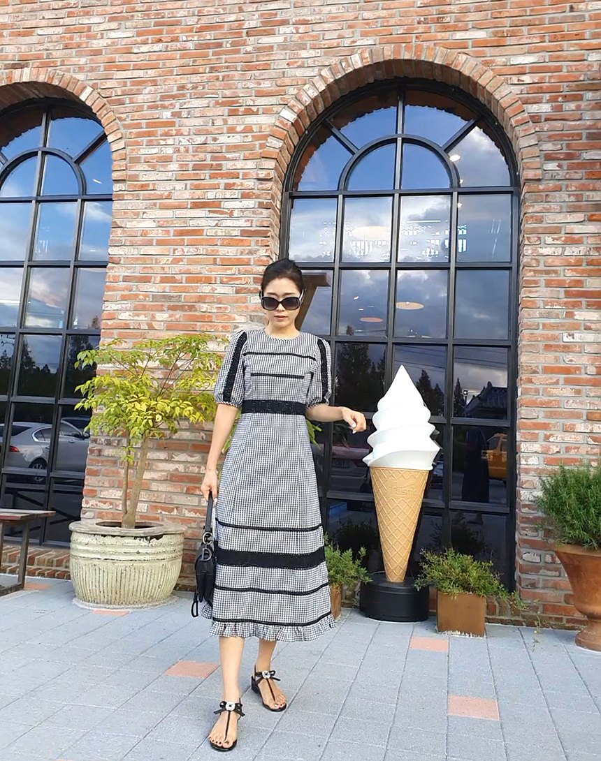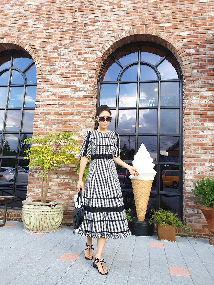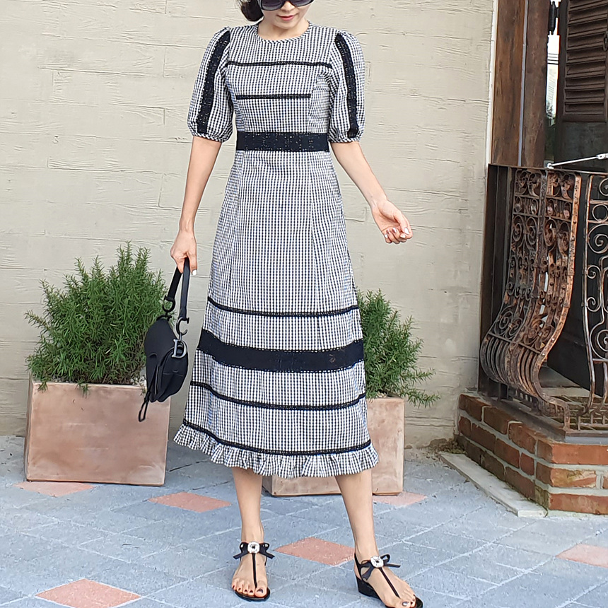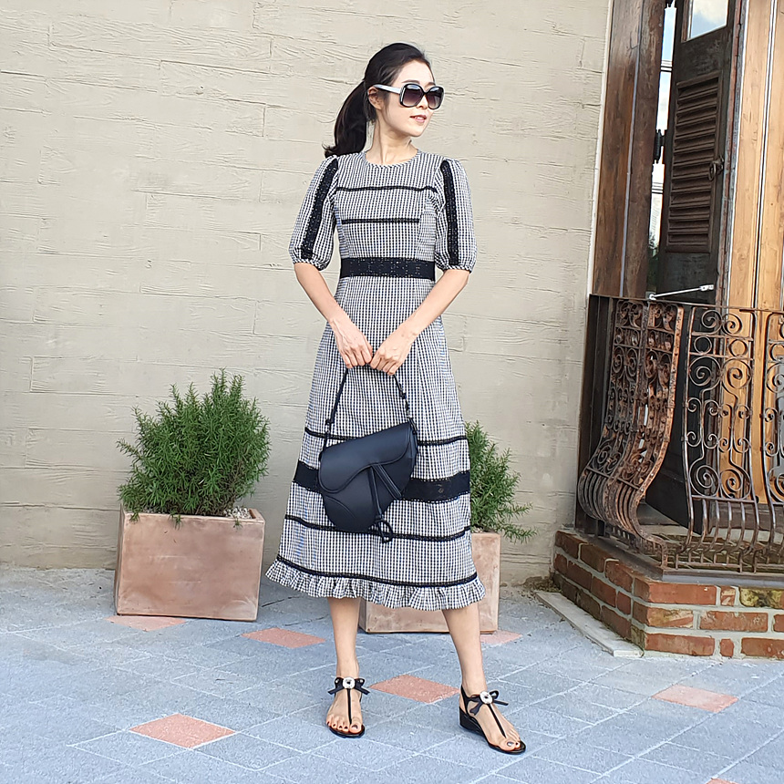 여성스러운 분위기의 예쁜 체크 원피스에요