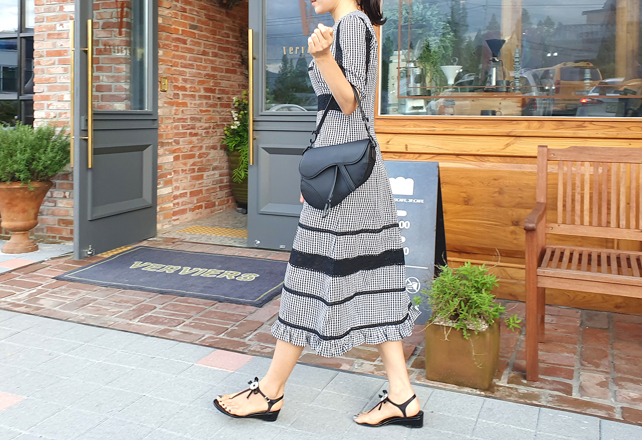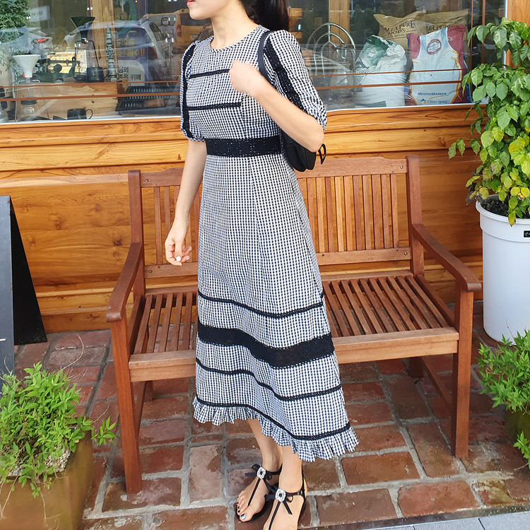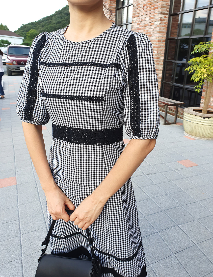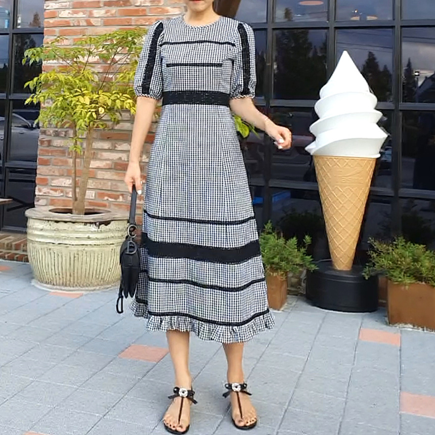 여성스러운 분위기의 예쁜 체크 원피스에요