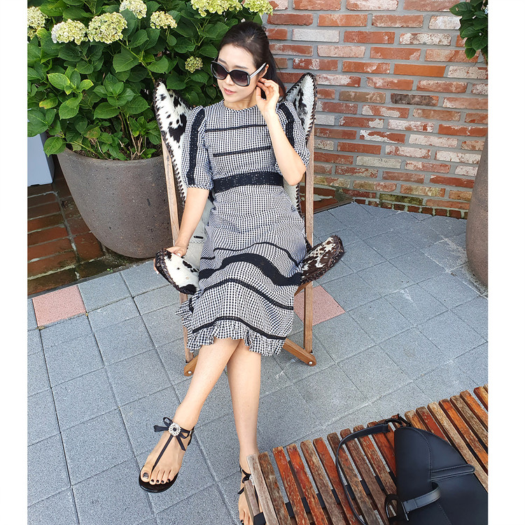 체크 프릴 머메이드 원피스