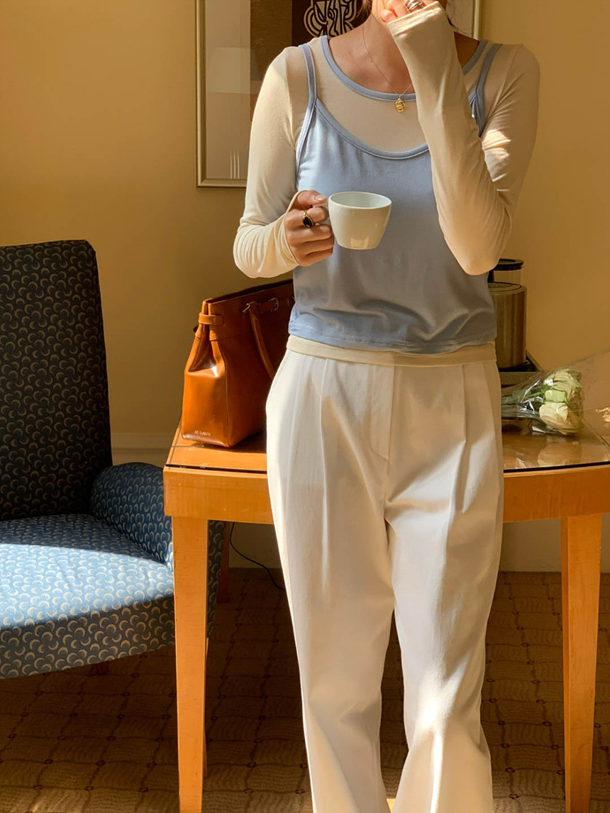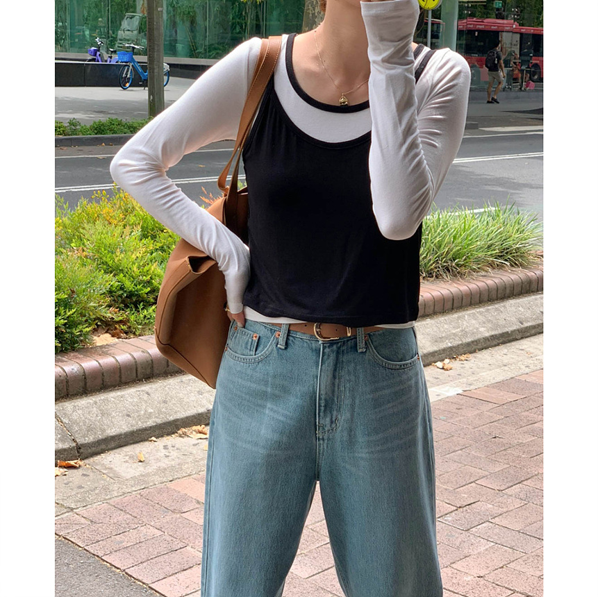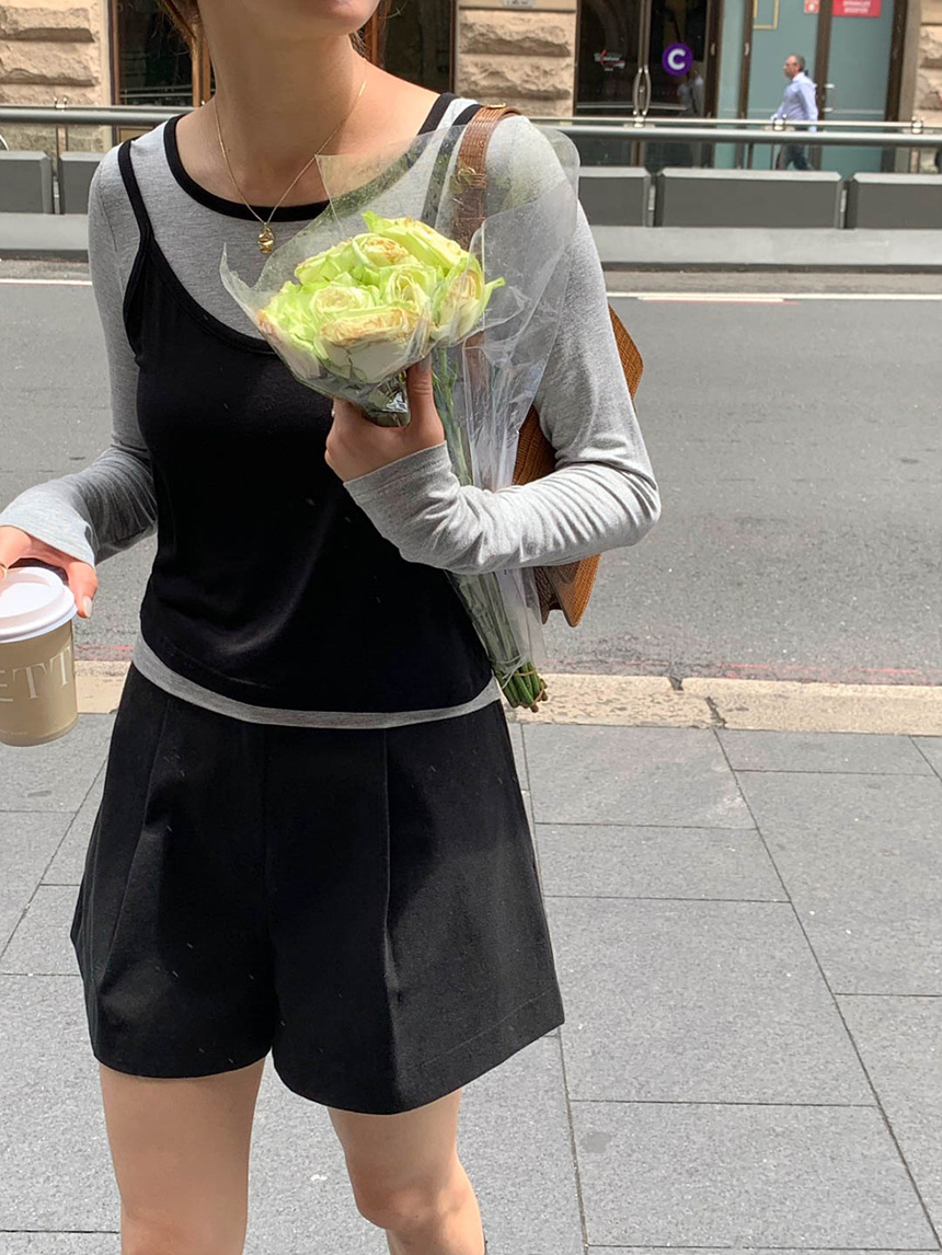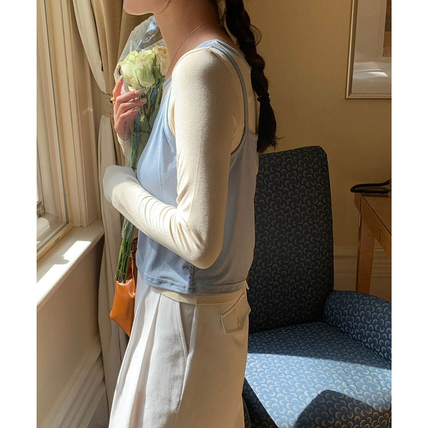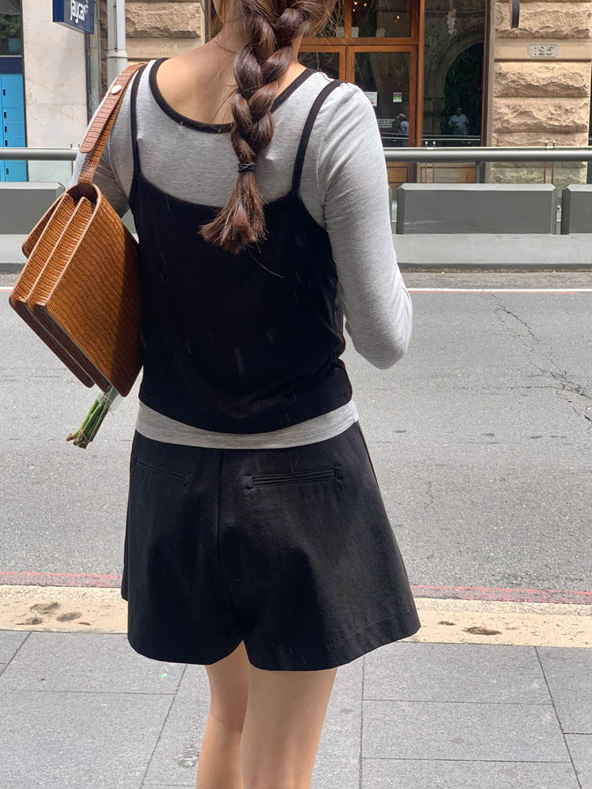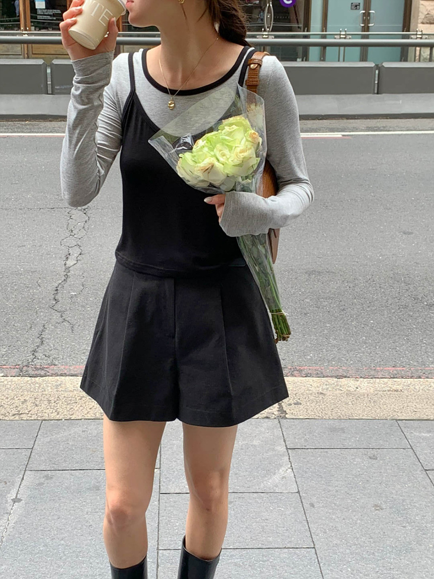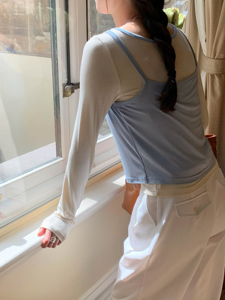 바로발송 푸우 나시와 티 레이어드 배색 코디 세트