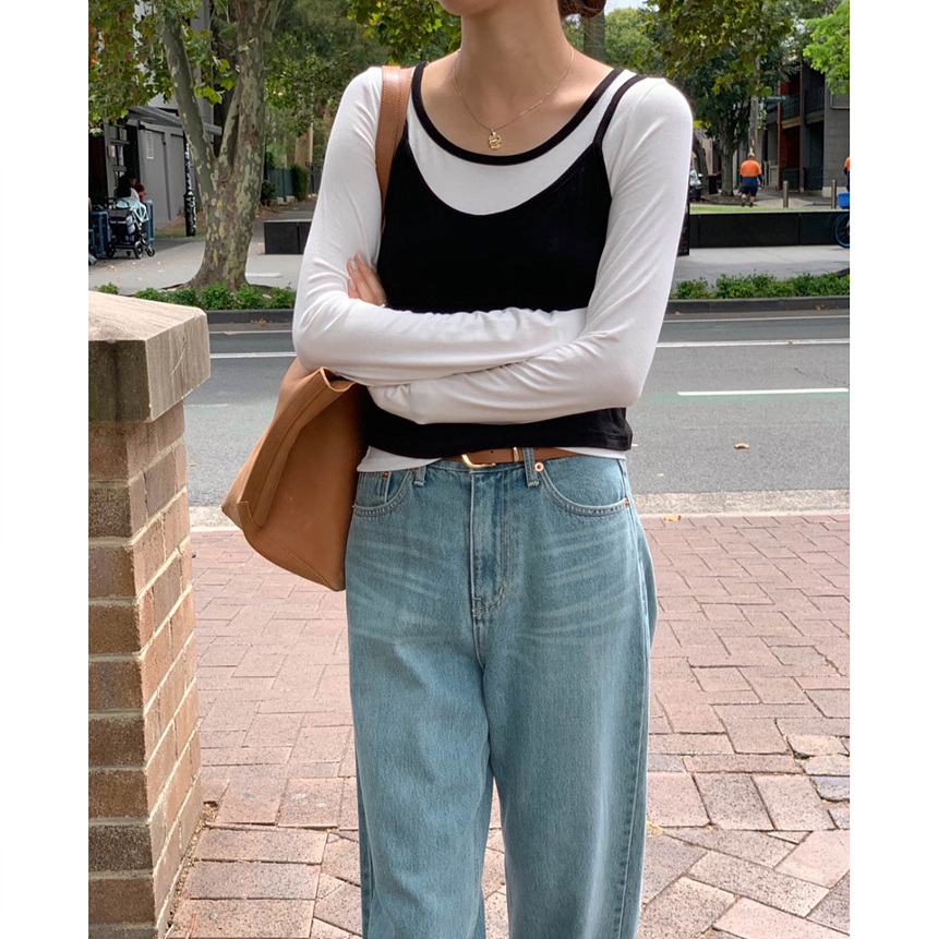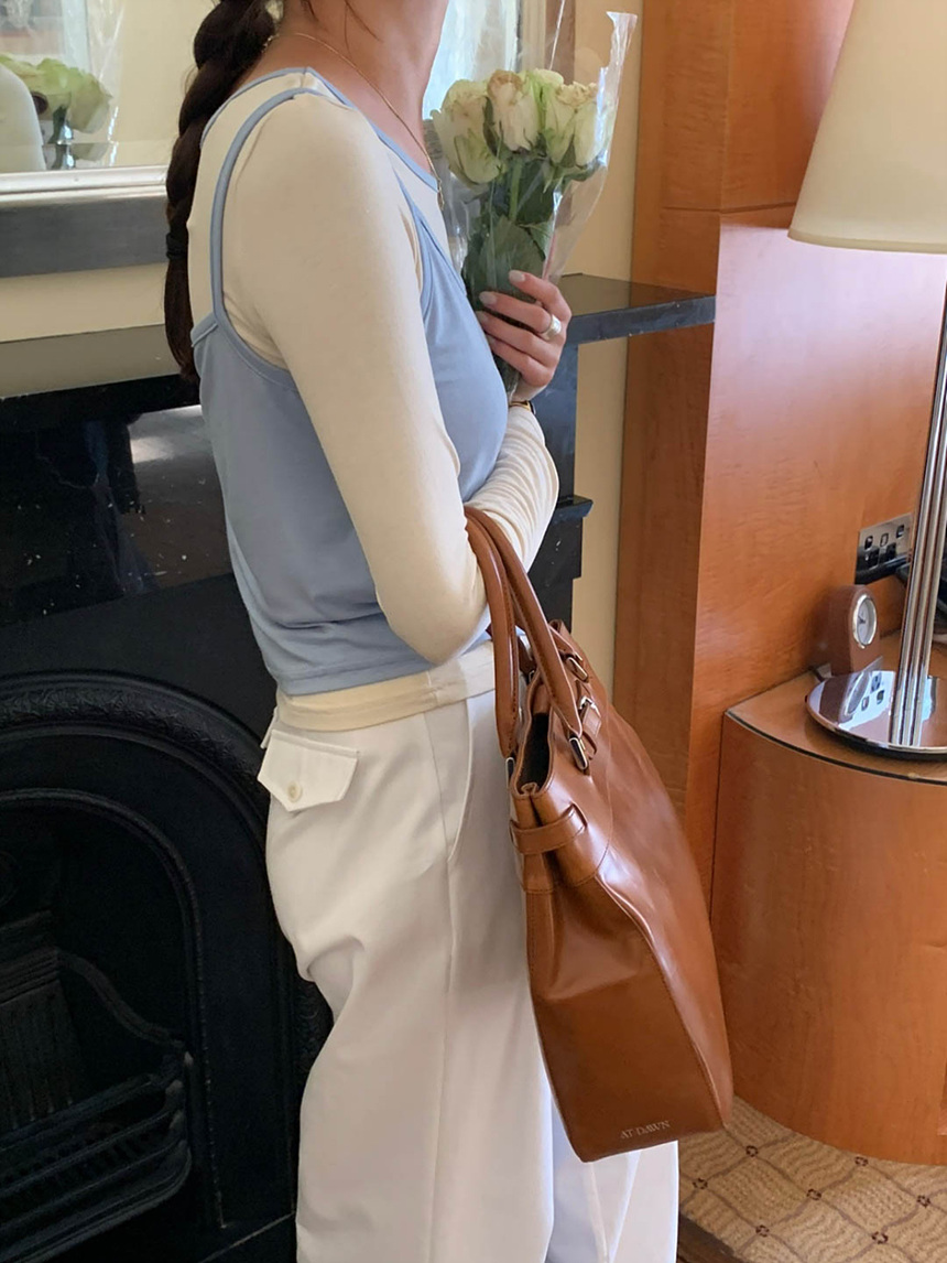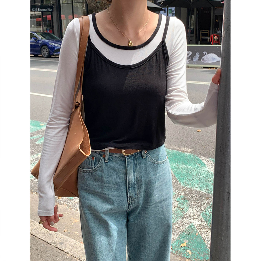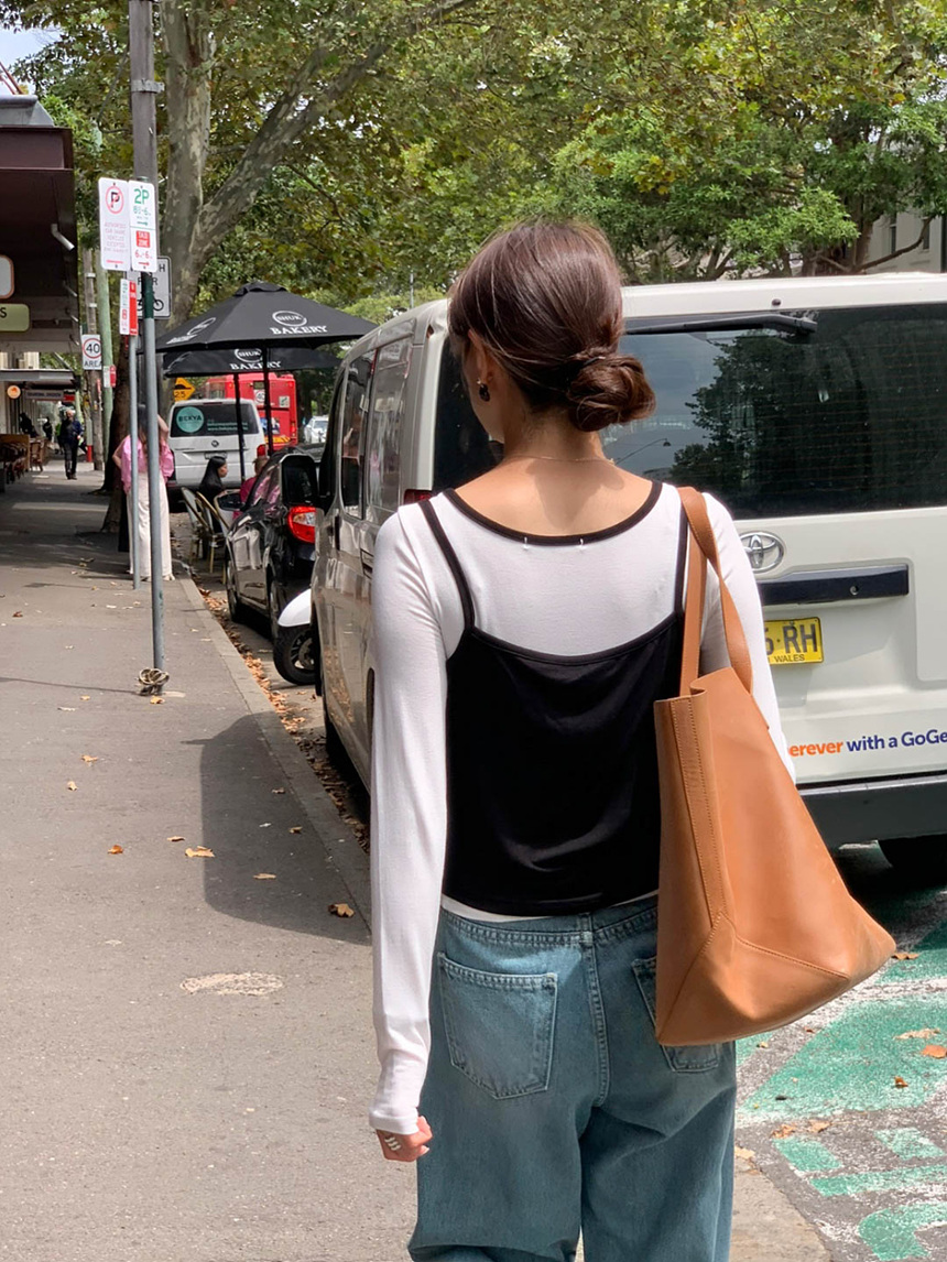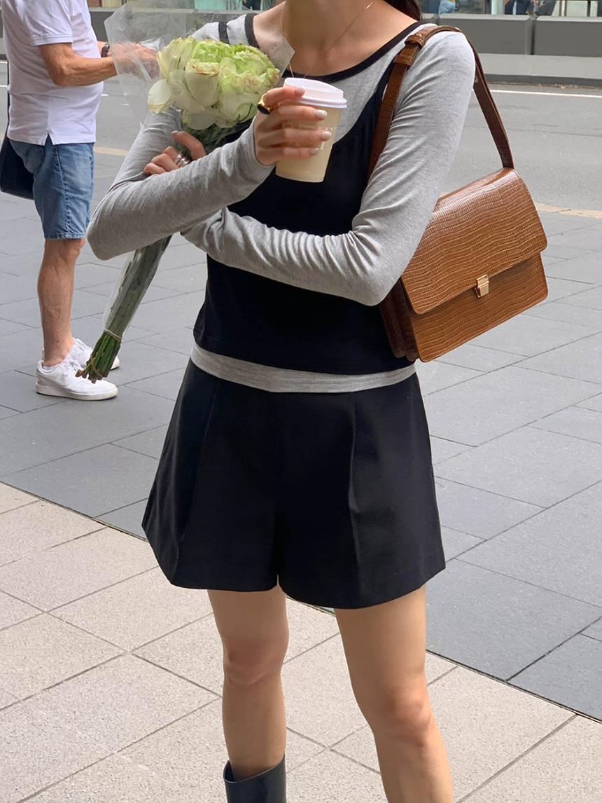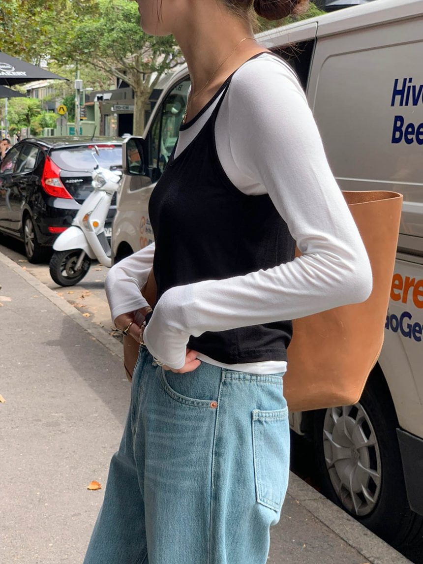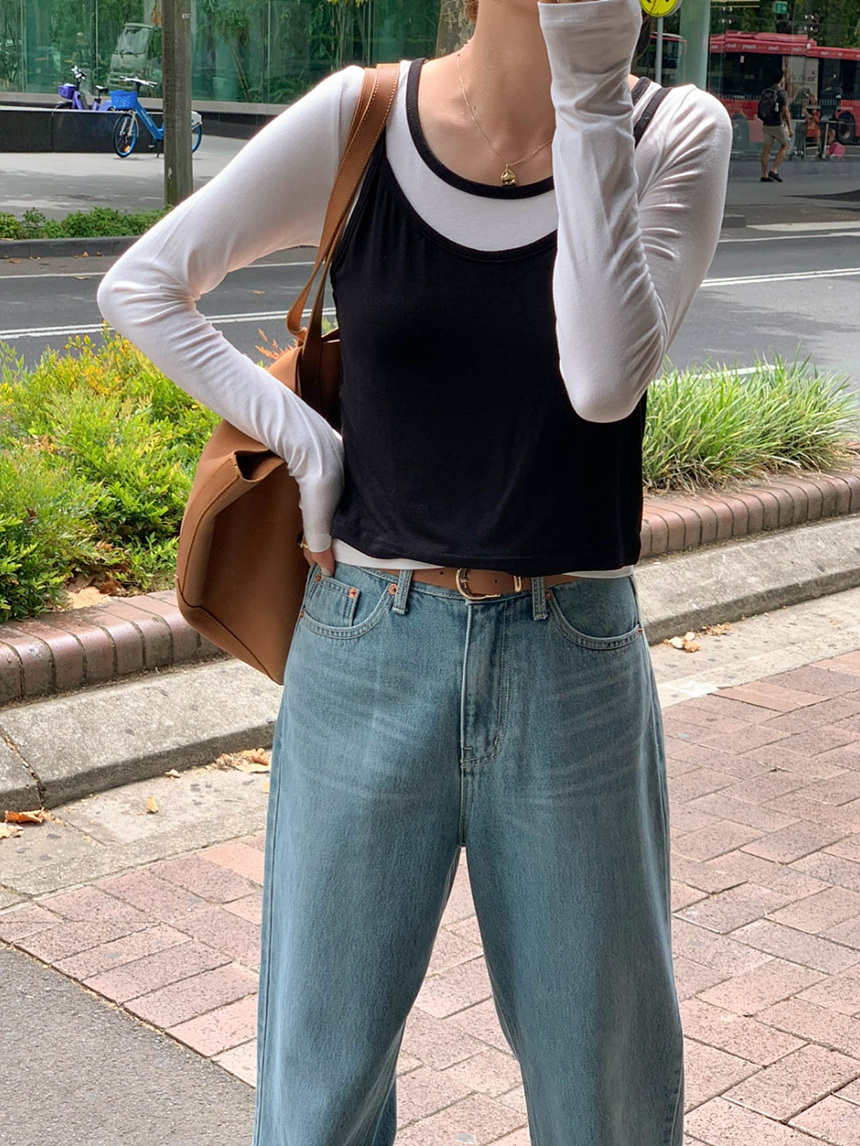 바로발송 푸우 나시와 티 레이어드 배색 코디 세트