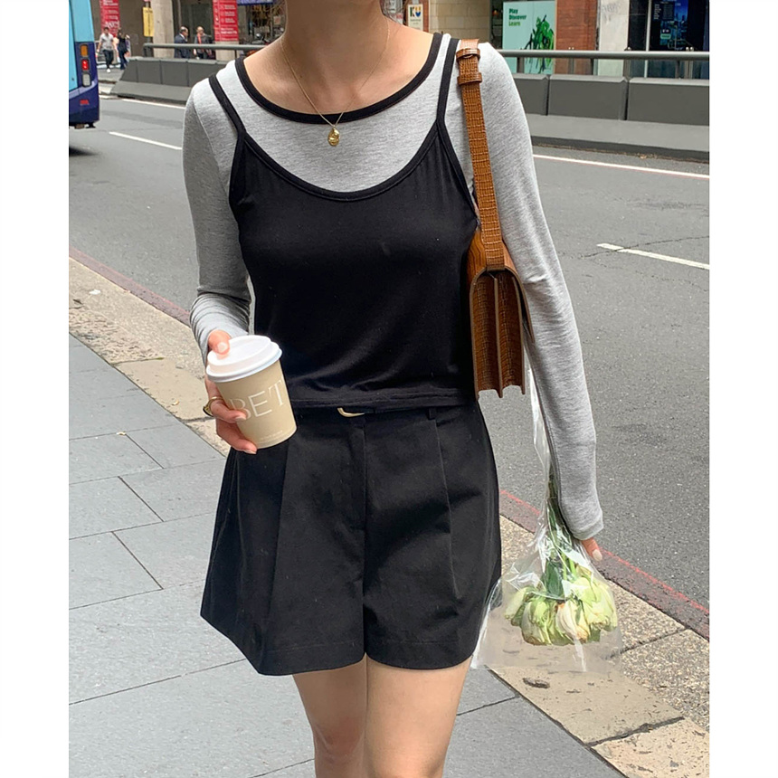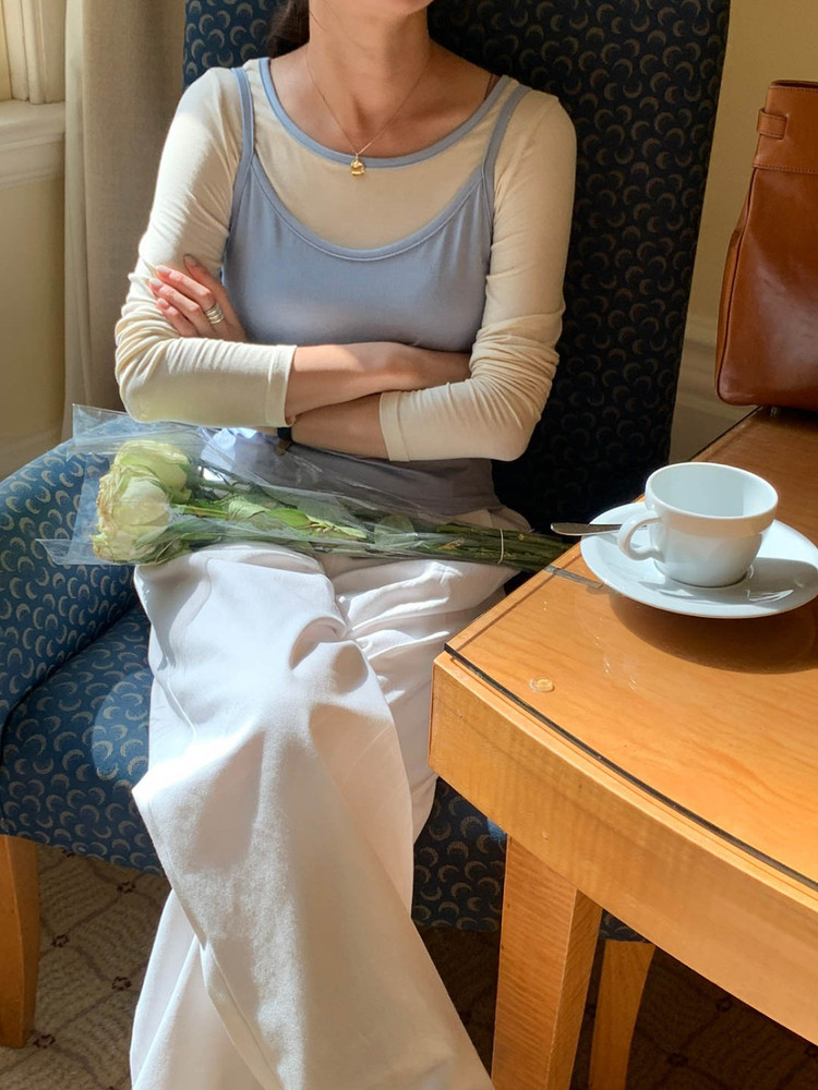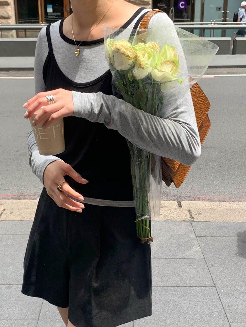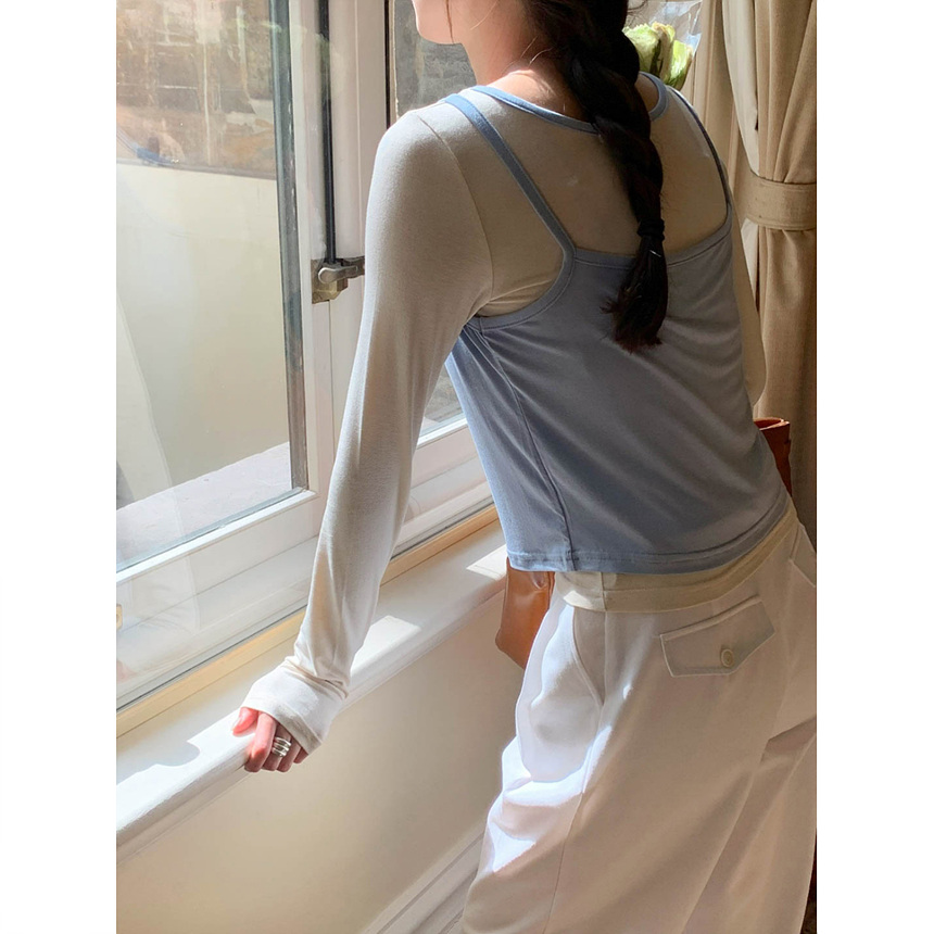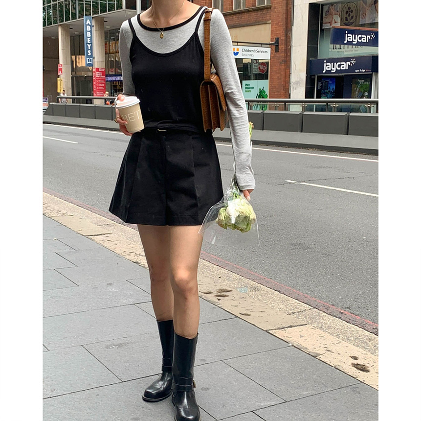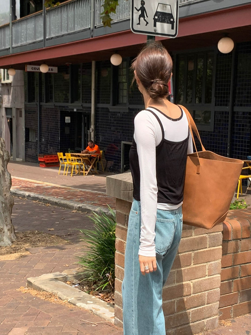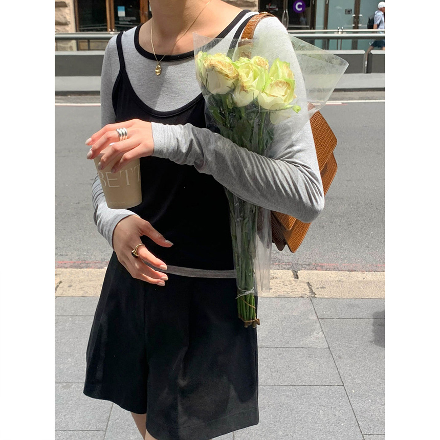 바로발송 푸우 나시와 티 레이어드 배색 코디 세트