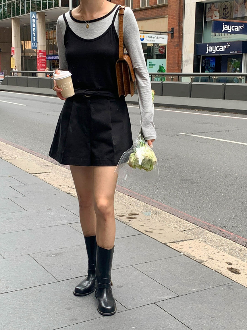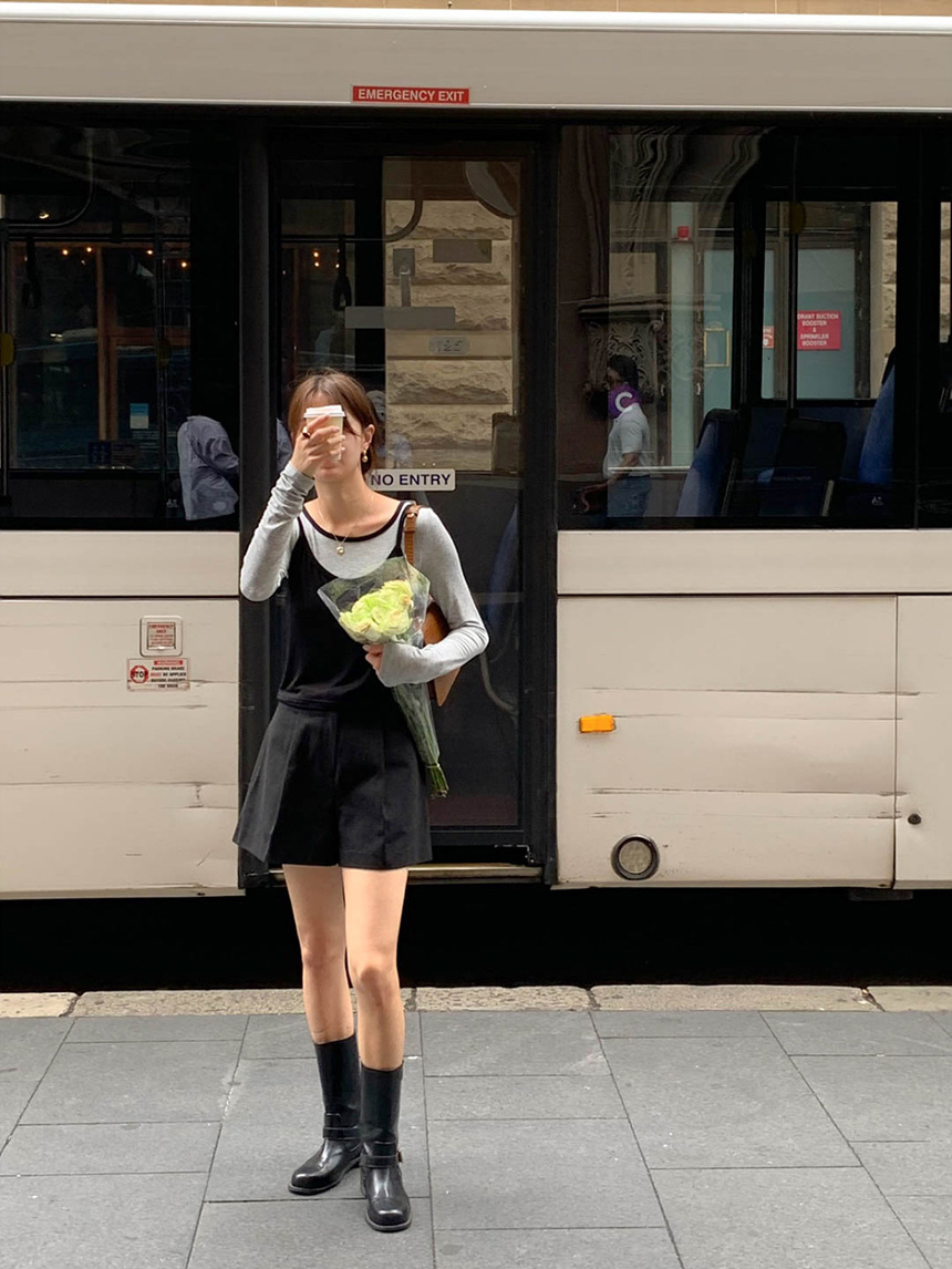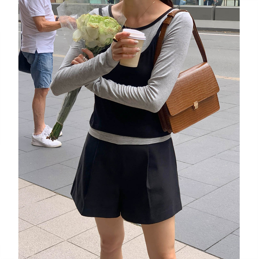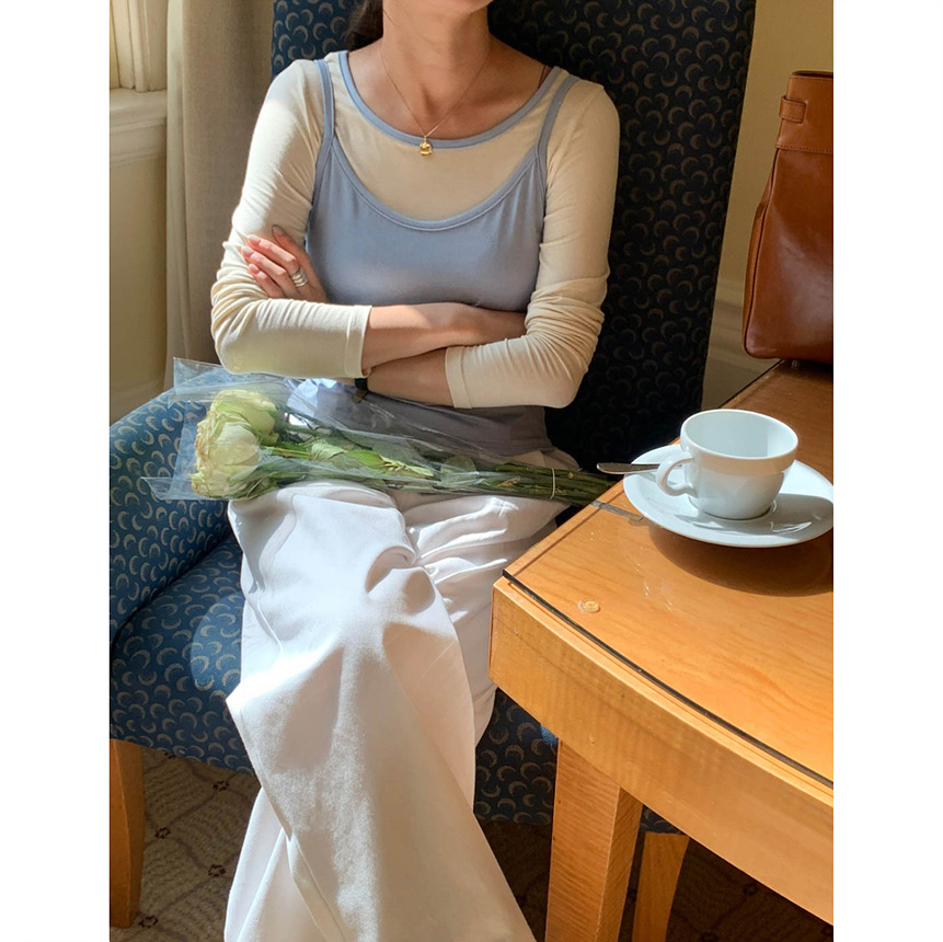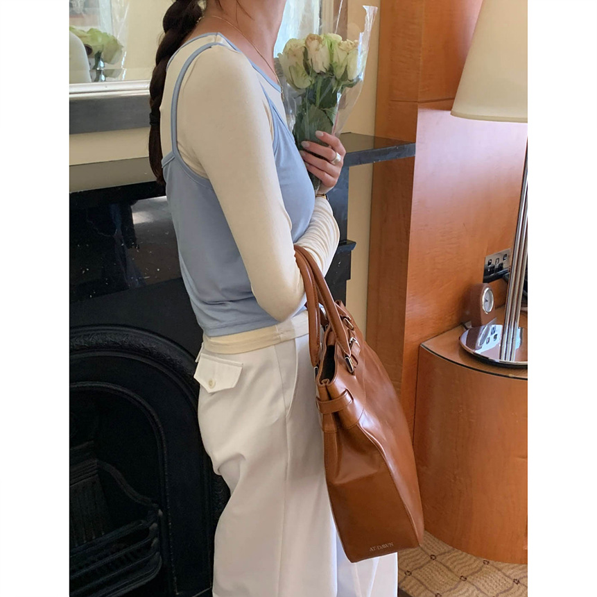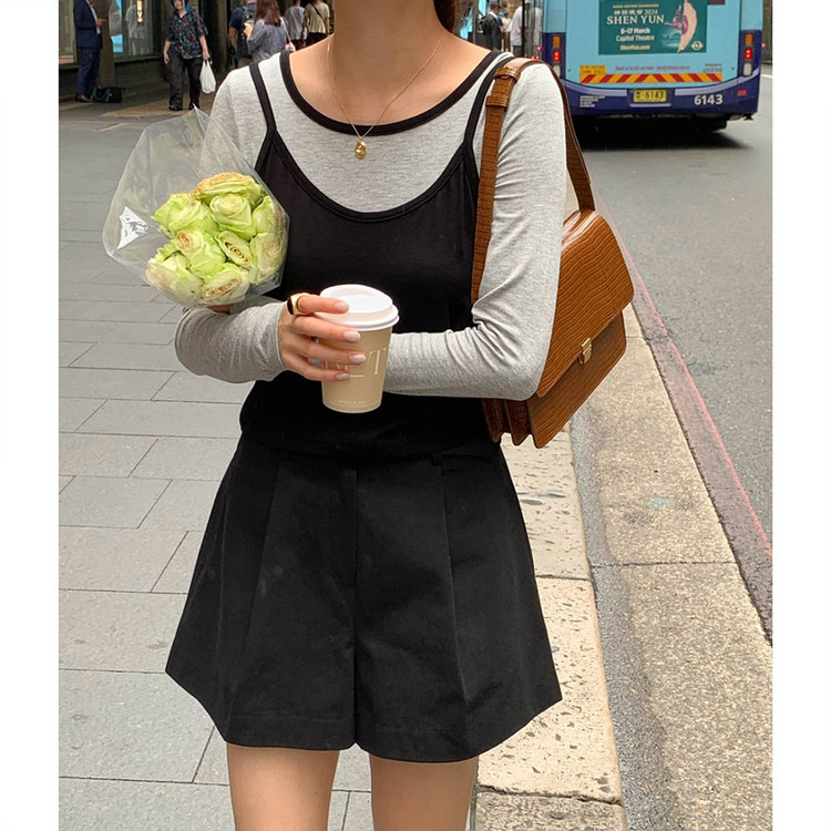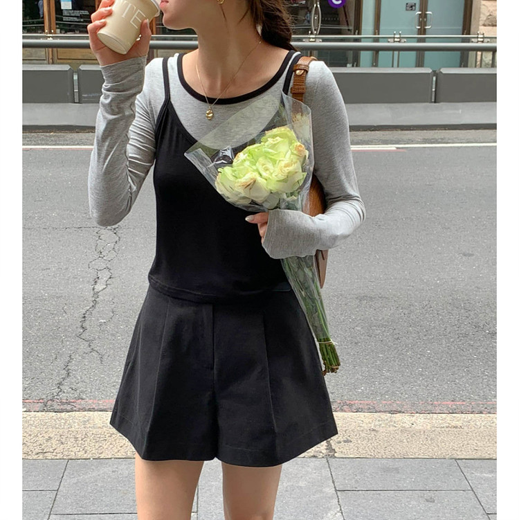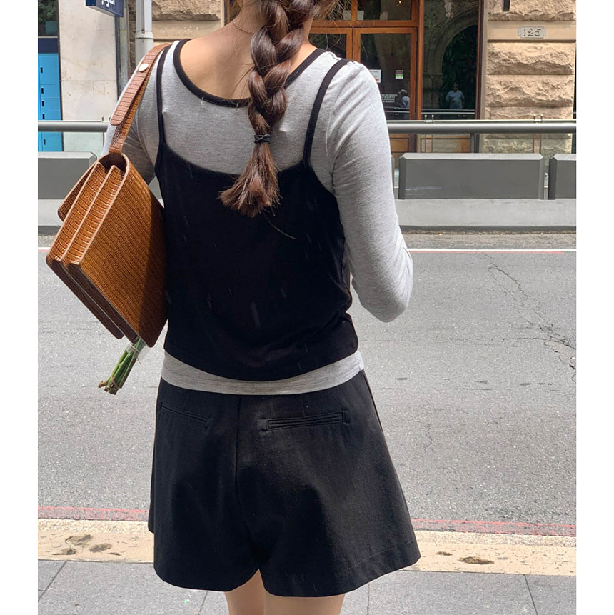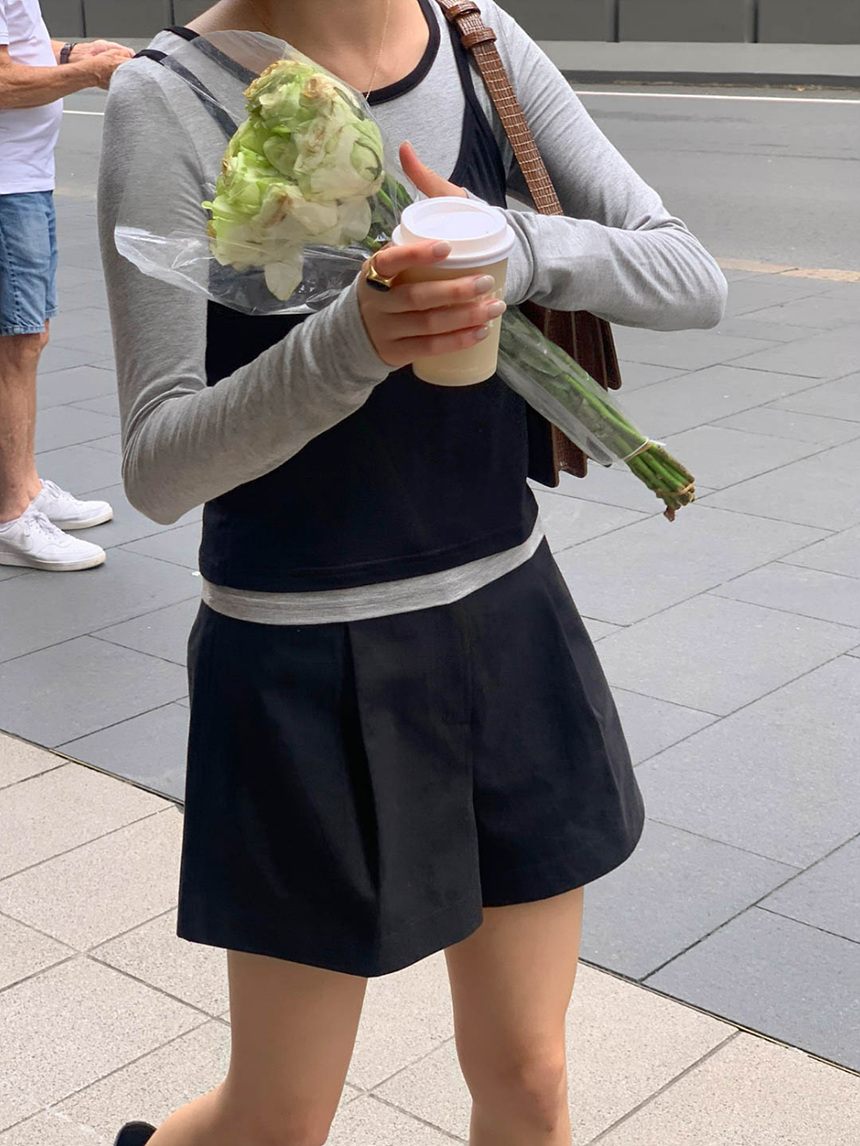 바로발송 푸우 나시와 티 레이어드 배색 코디 세트