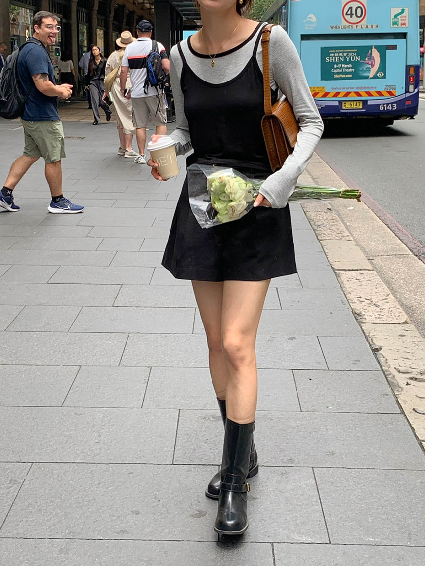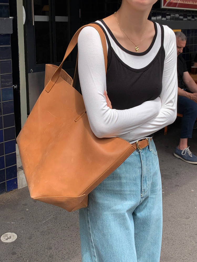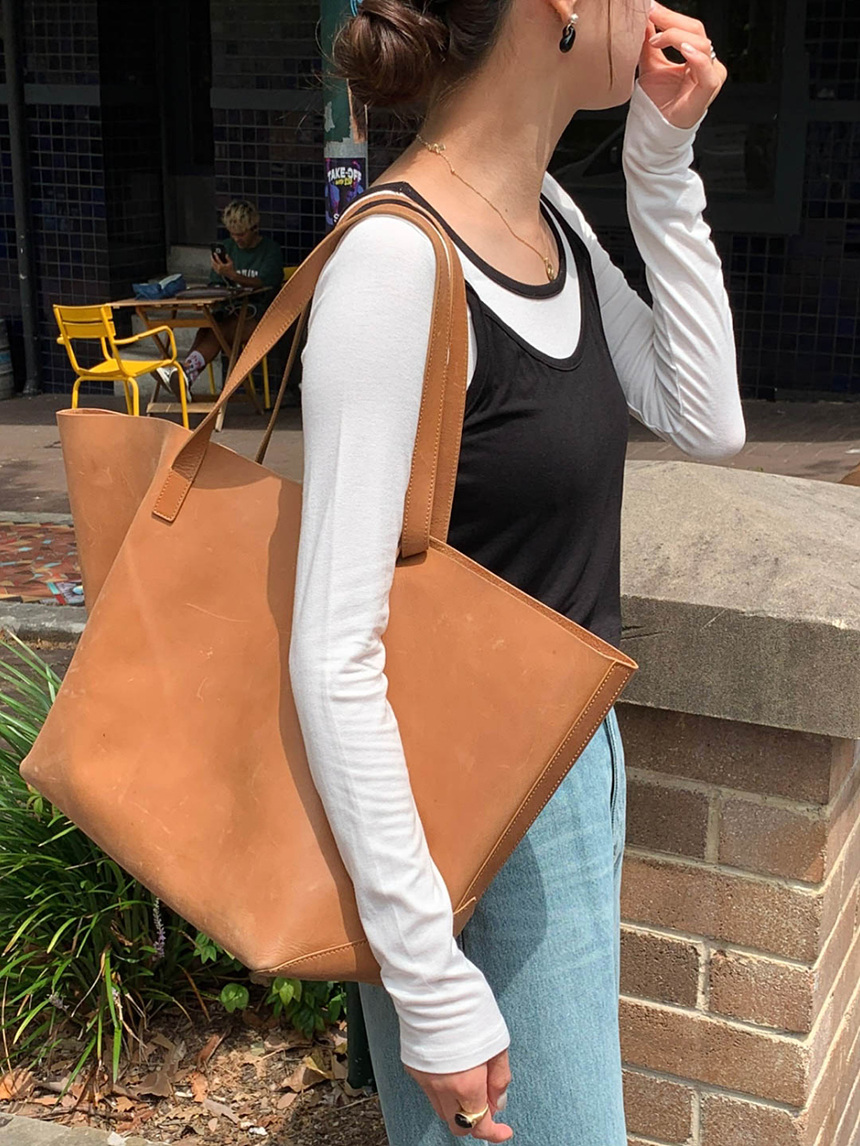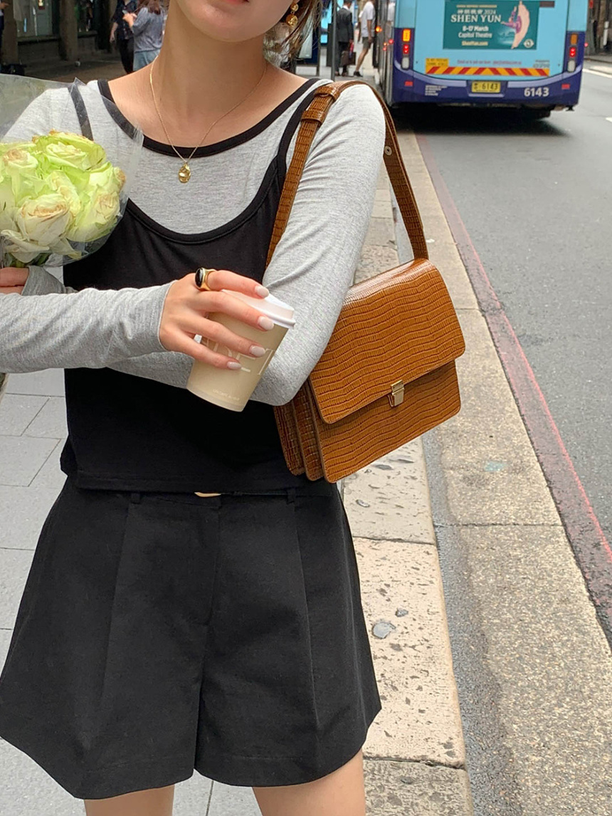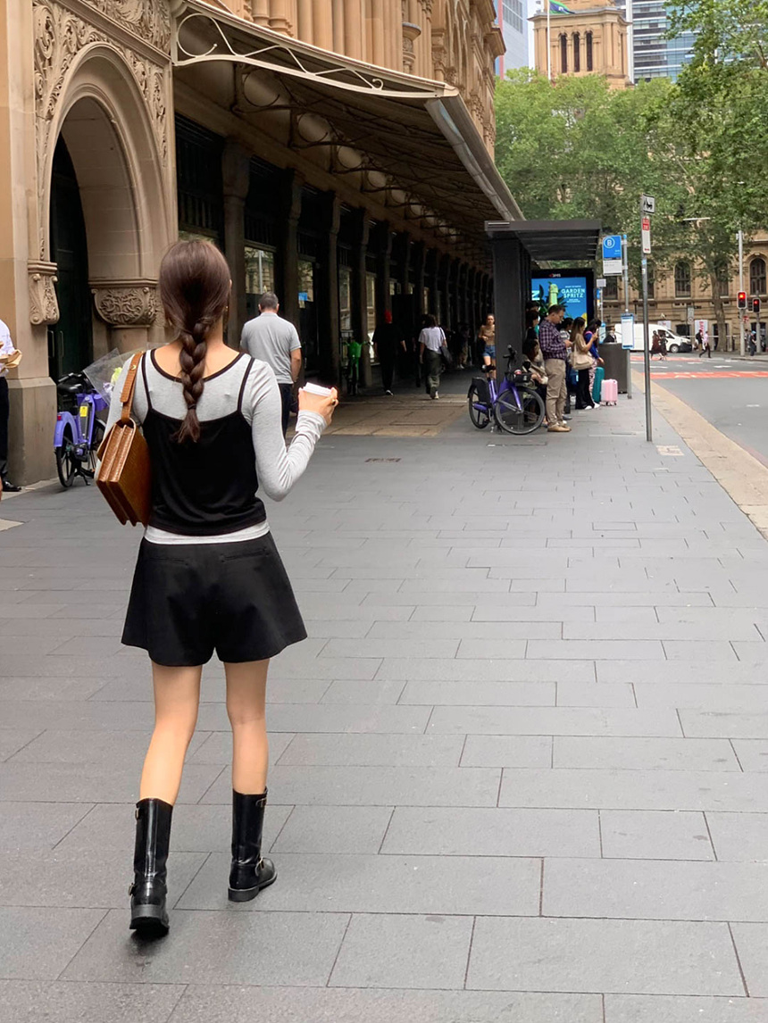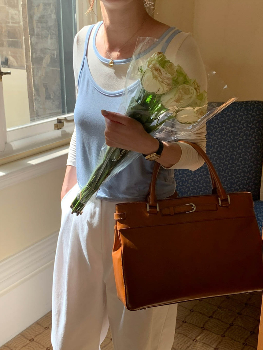 바로발송 푸우 나시와 티 레이어드 배색 코디 세트