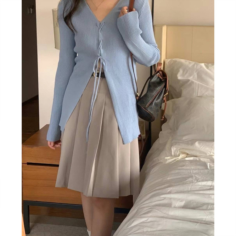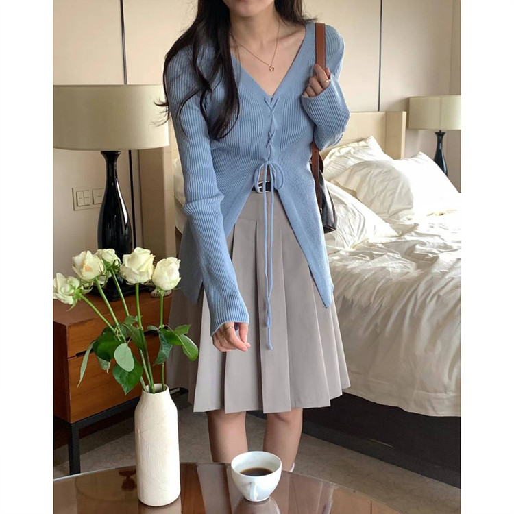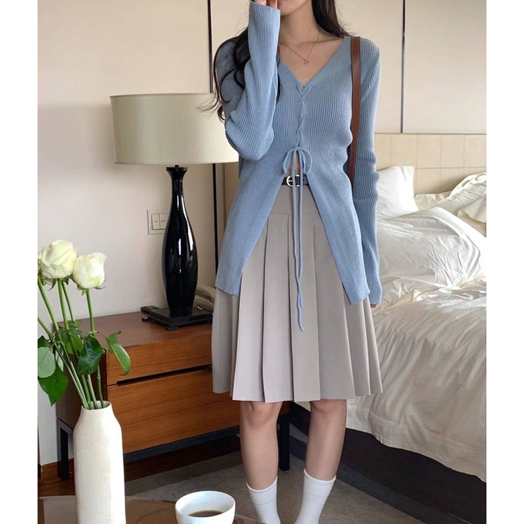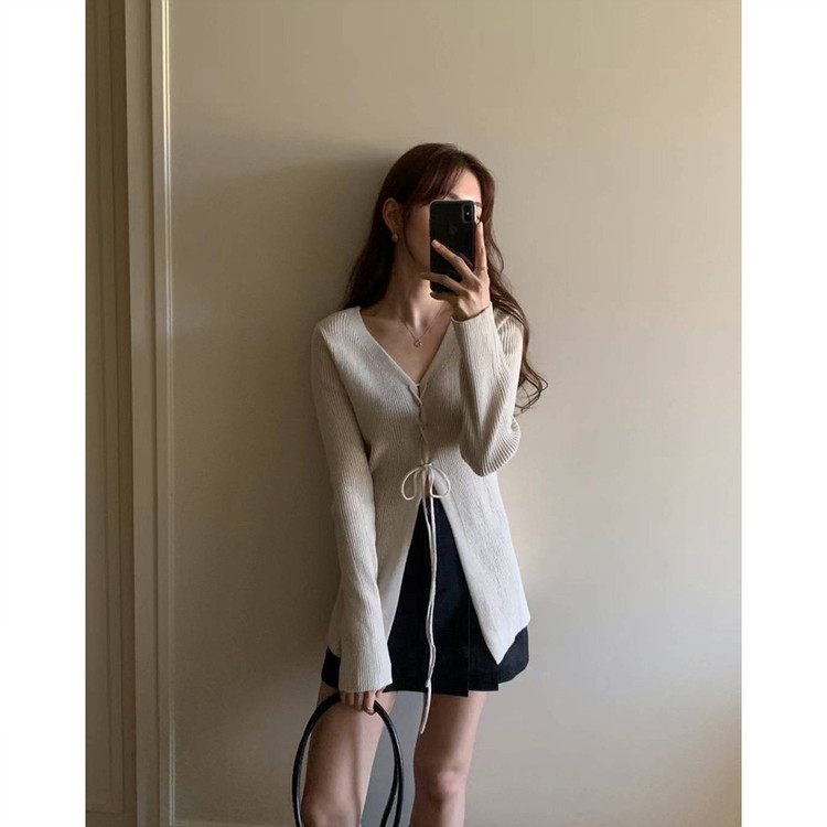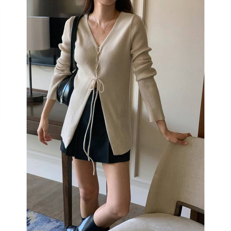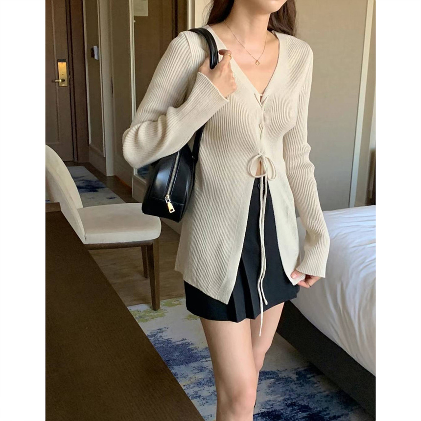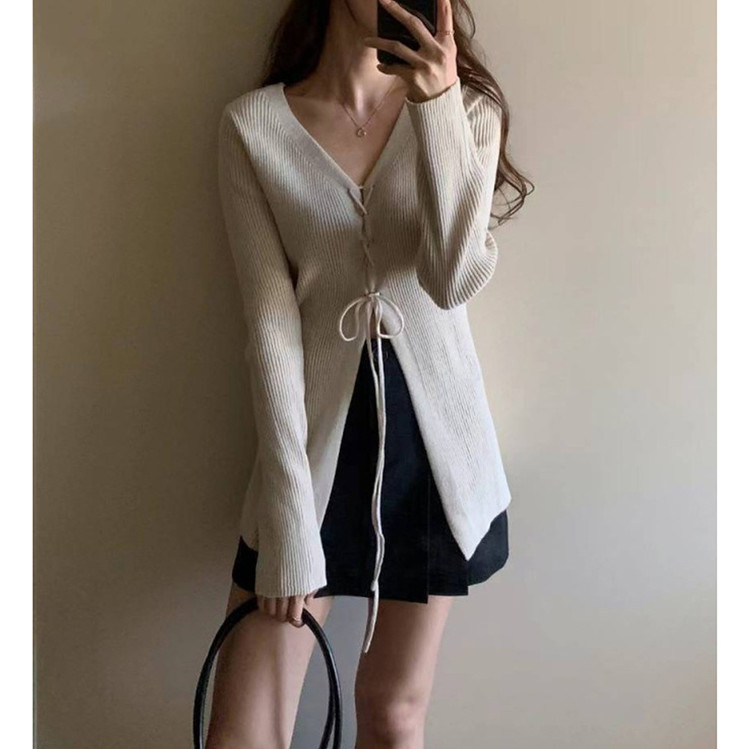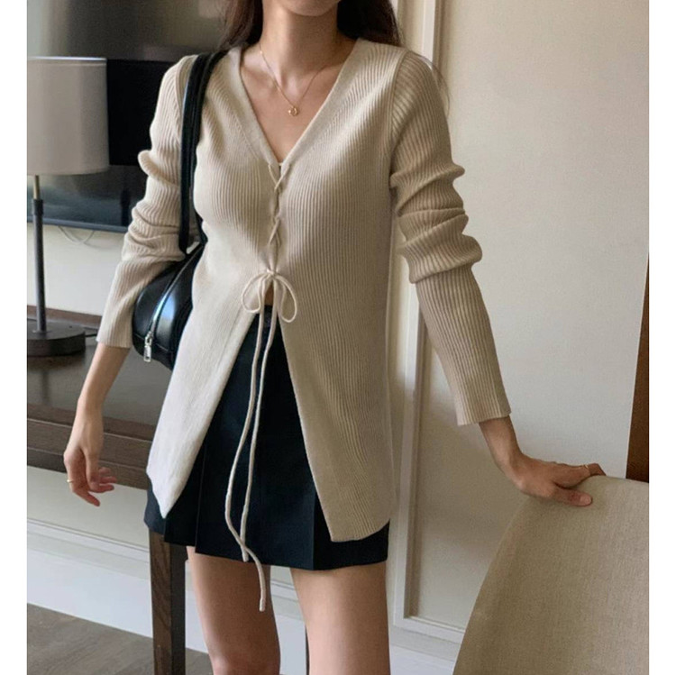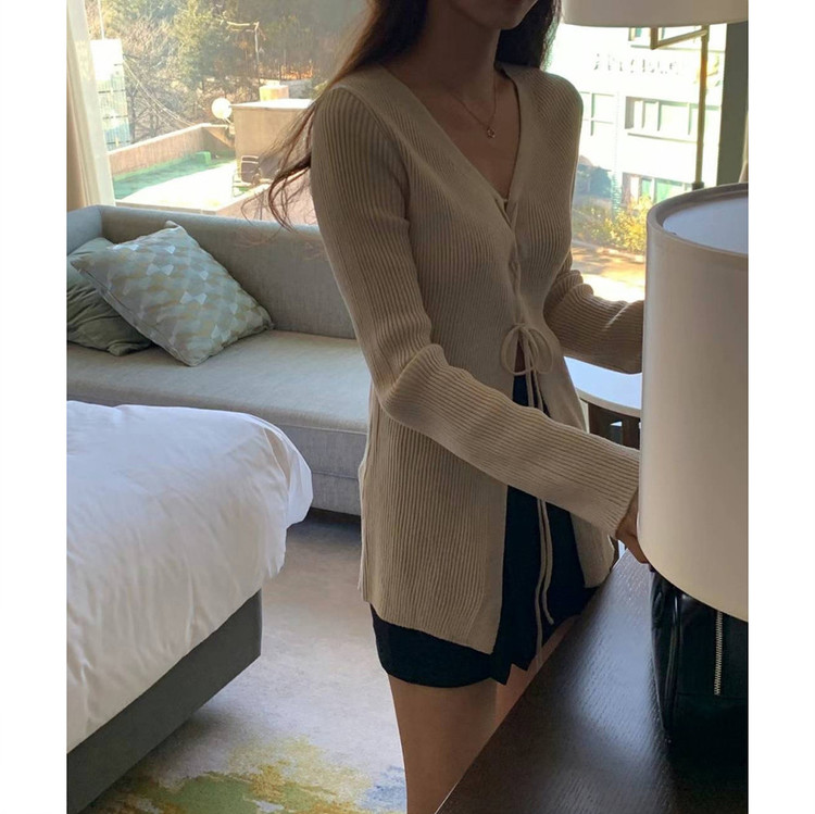 버즈 리본 슬림 가디건 롱 니트