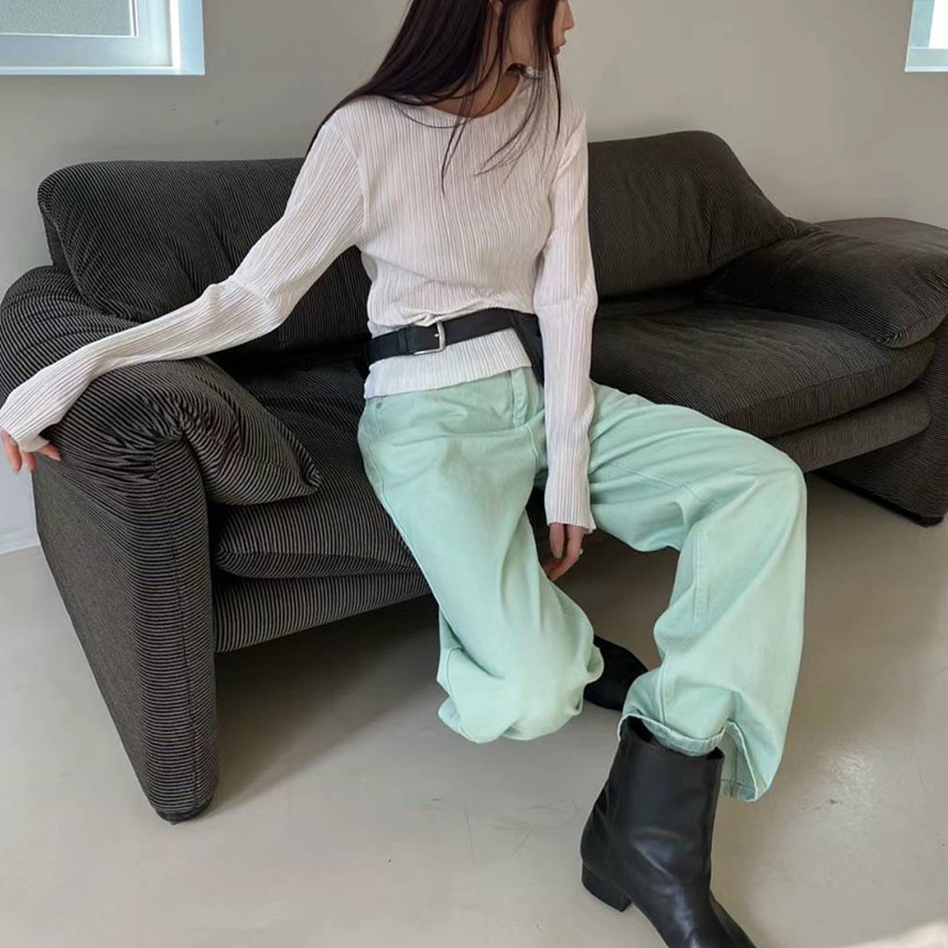바로발송 파스텔 일자 루즈 민트 데님