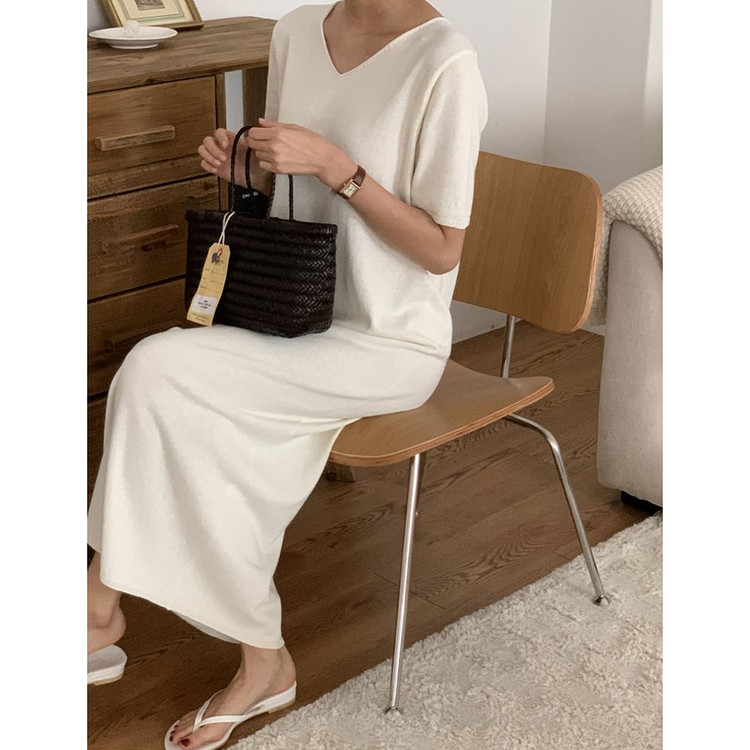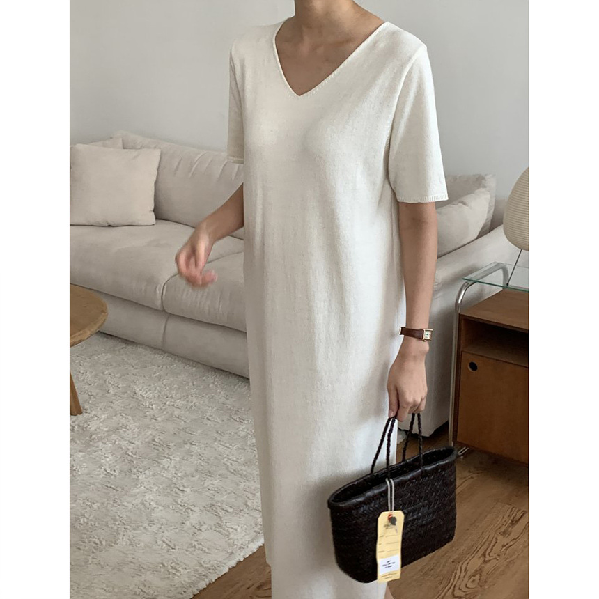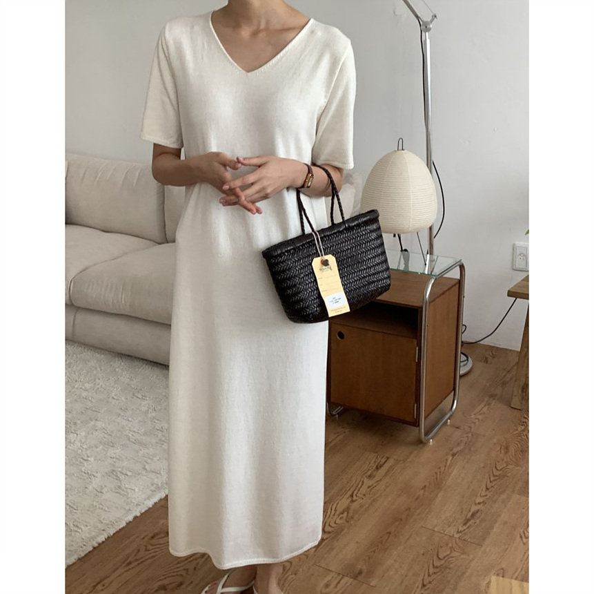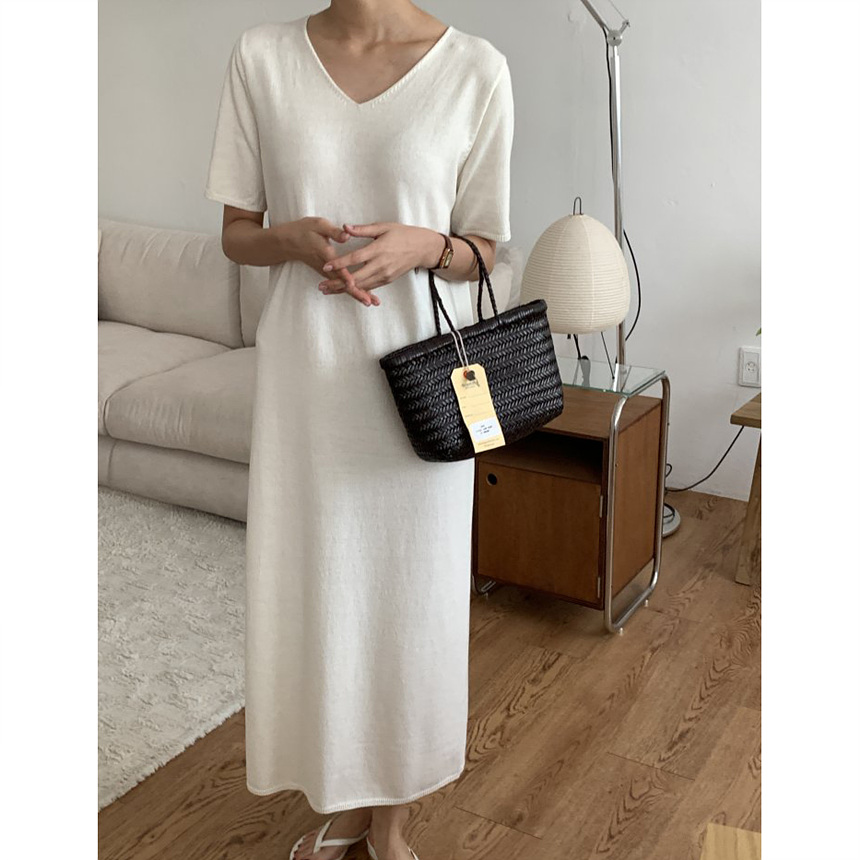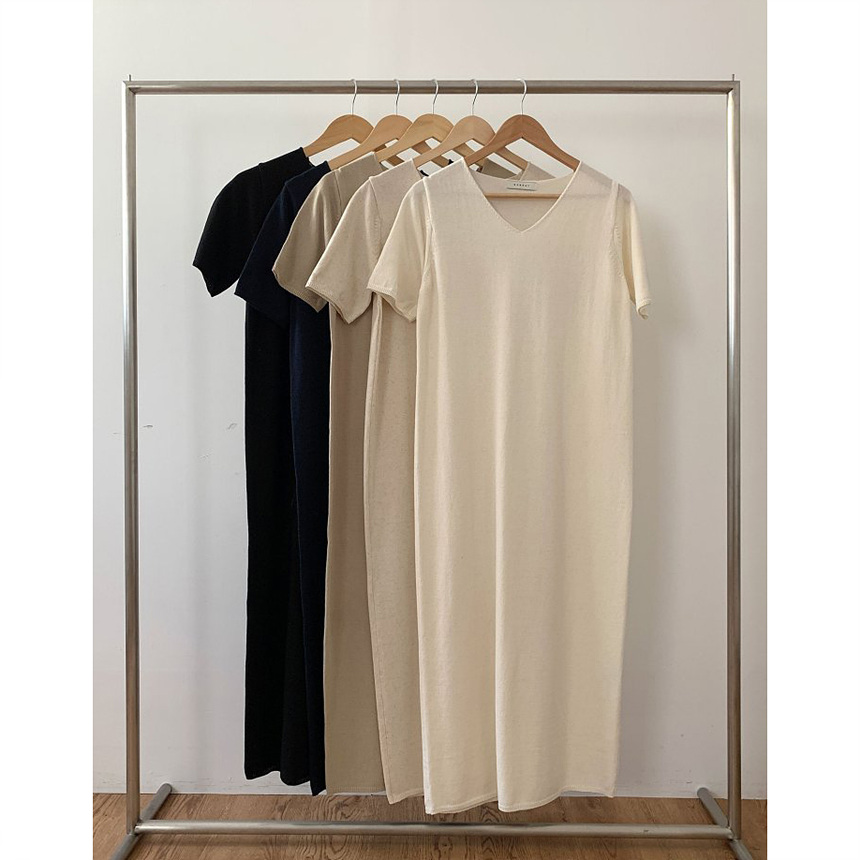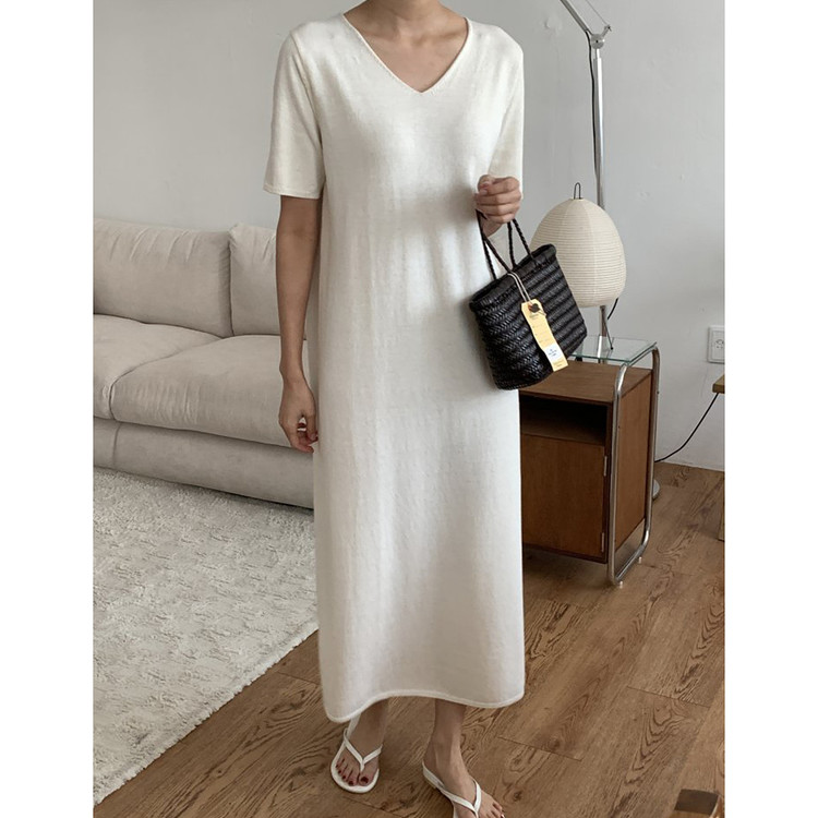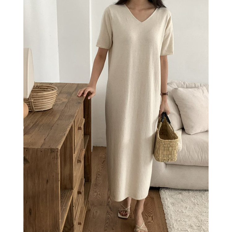 오늘 린넨 브이넥 니트 롱 원피스 하이퀄리티