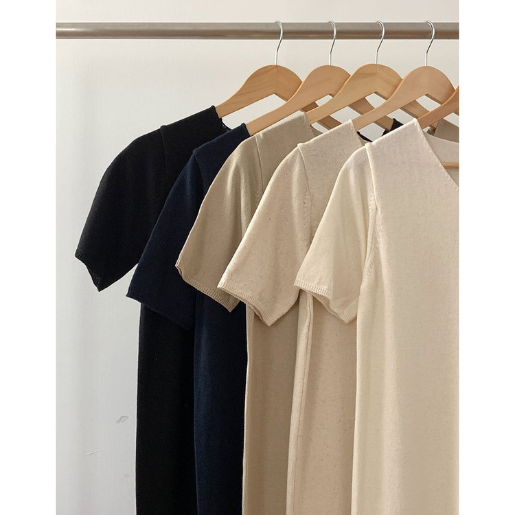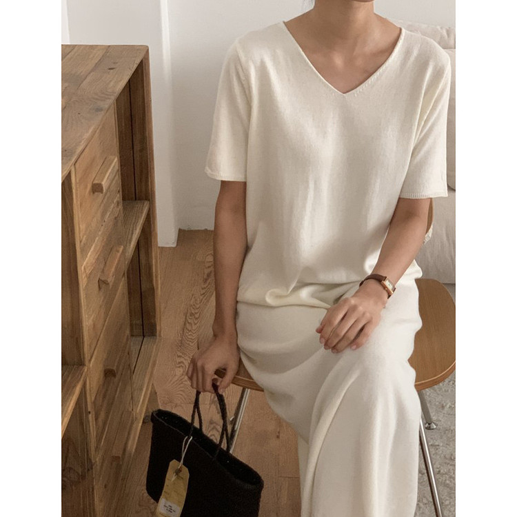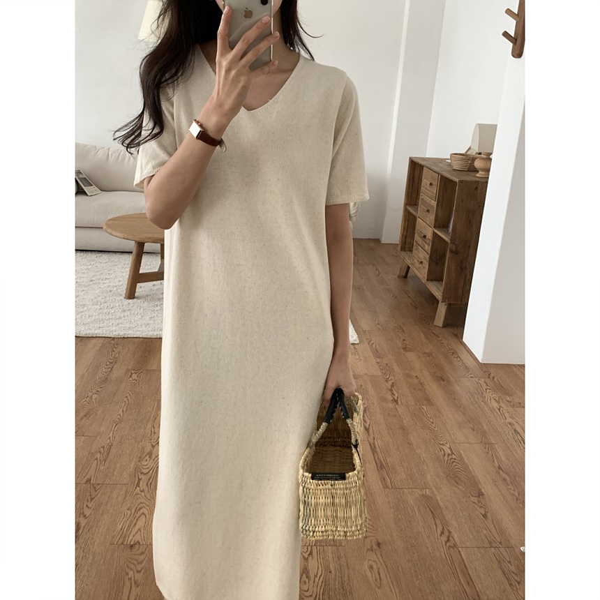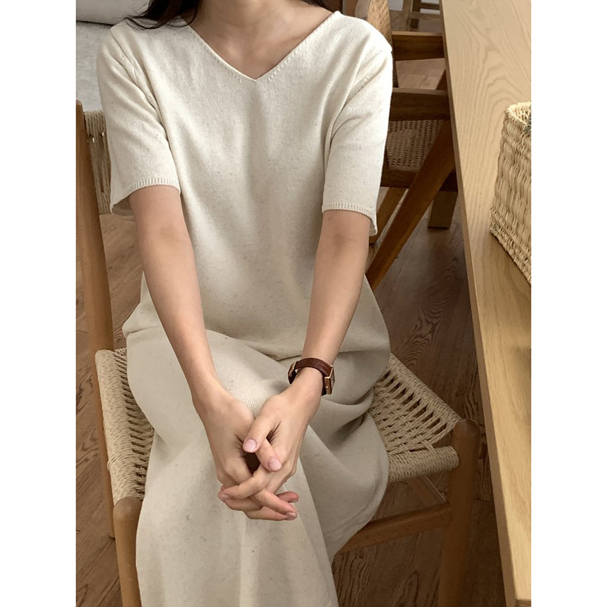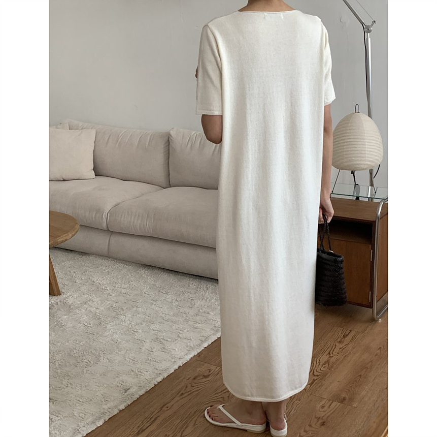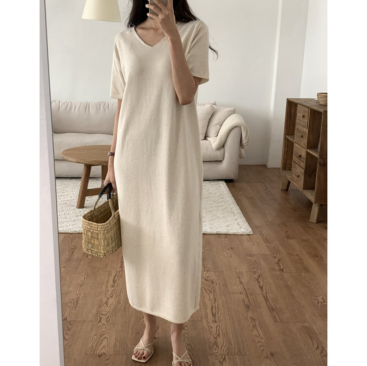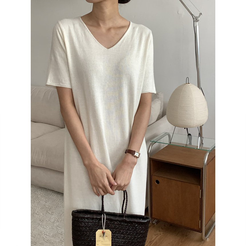오늘 린넨 브이넥 니트 롱 원피스 하이퀄리티