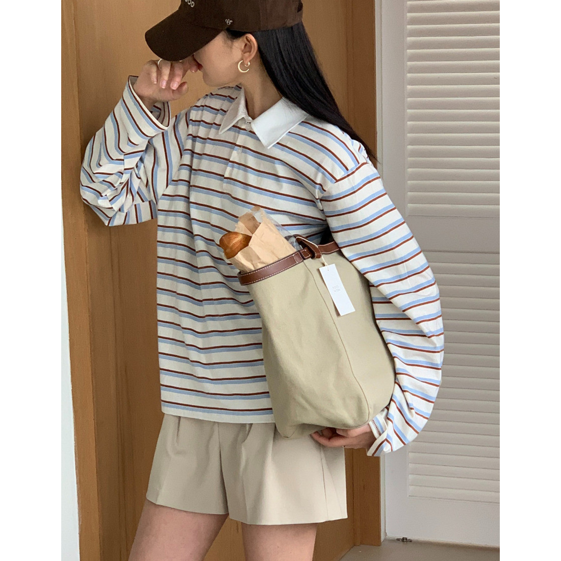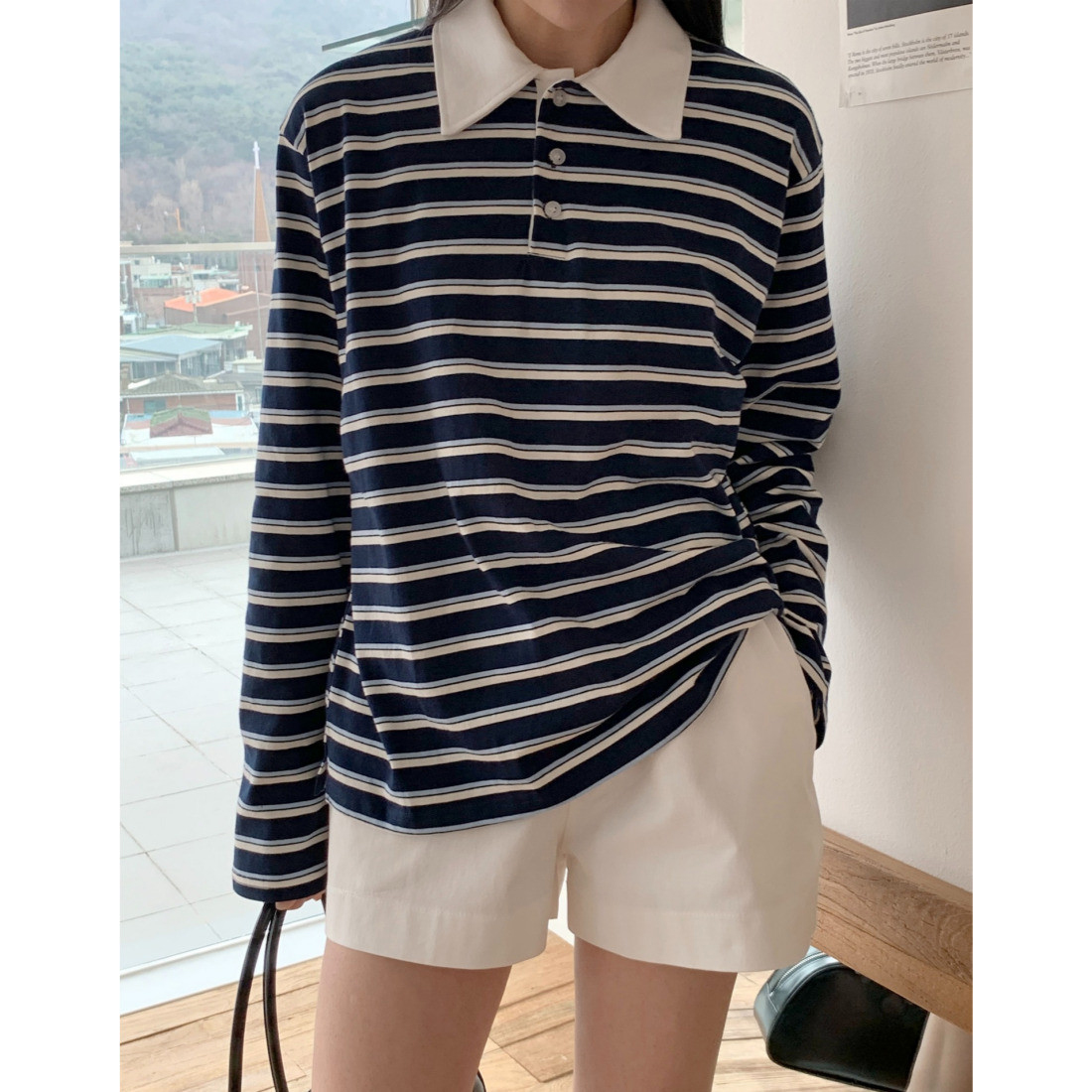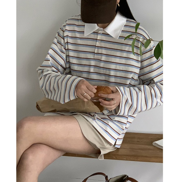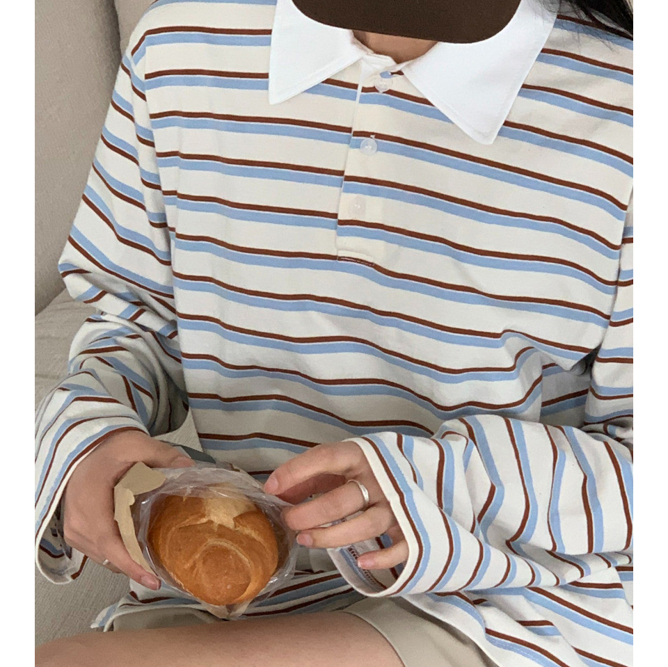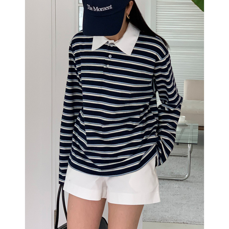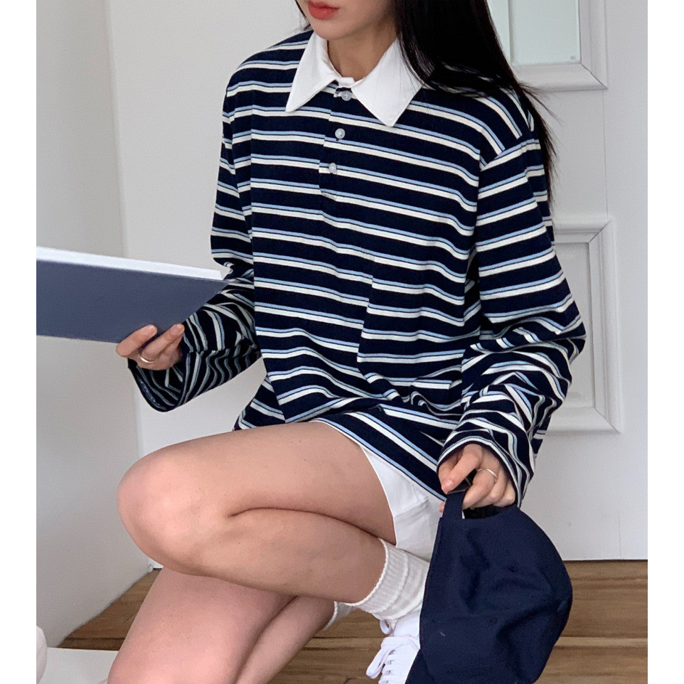 바로발송 노바 럭비 스트라이프 카라 긴팔 티셔츠