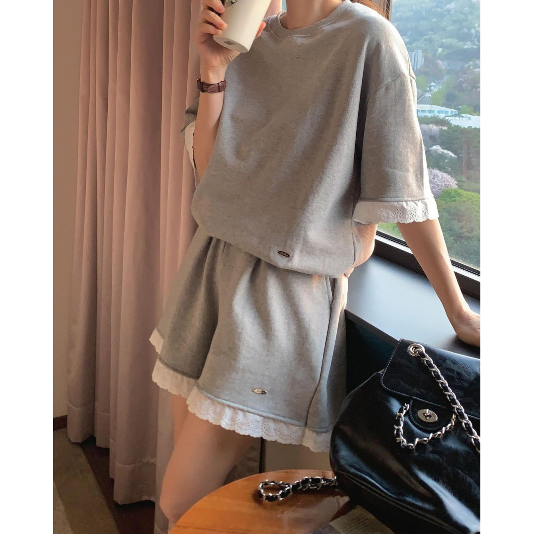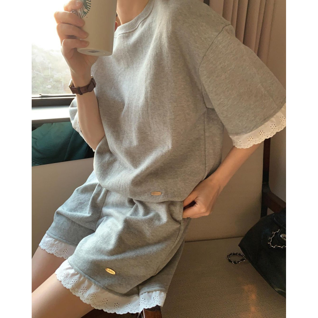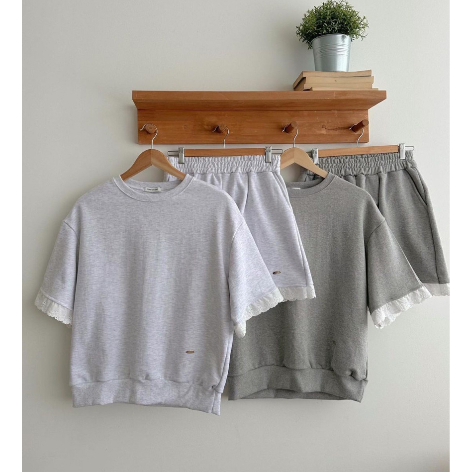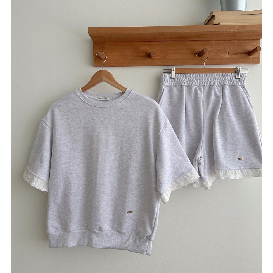 시나모 레이스 트리밍 반팔 맨투맨과 반바지 세트