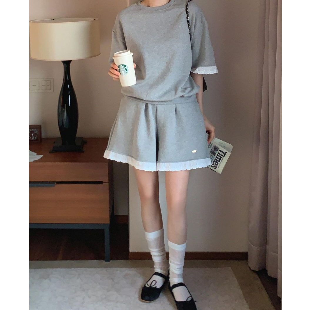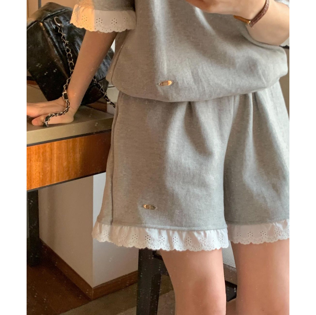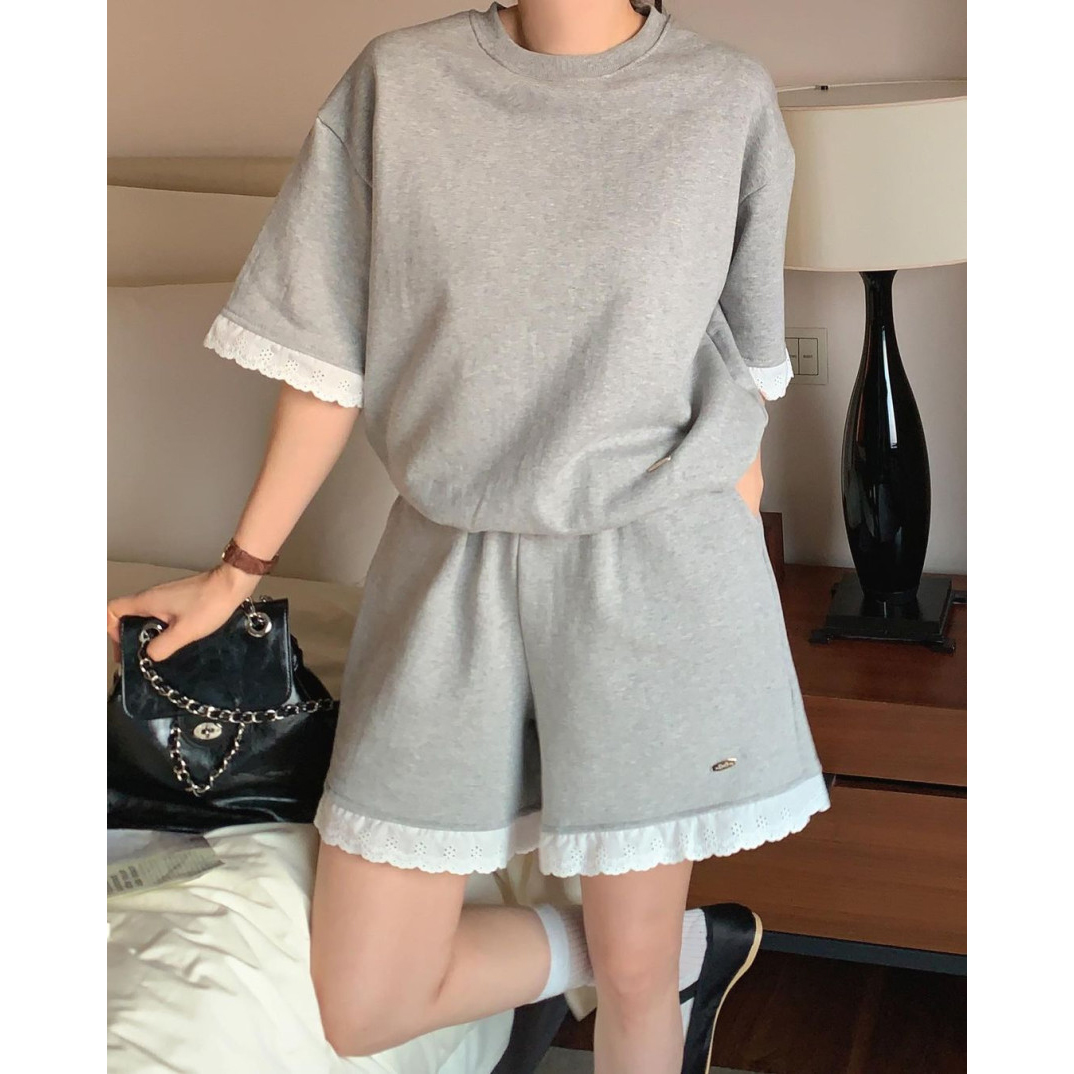 시나모 레이스 트리밍 반팔 맨투맨과 반바지 세트