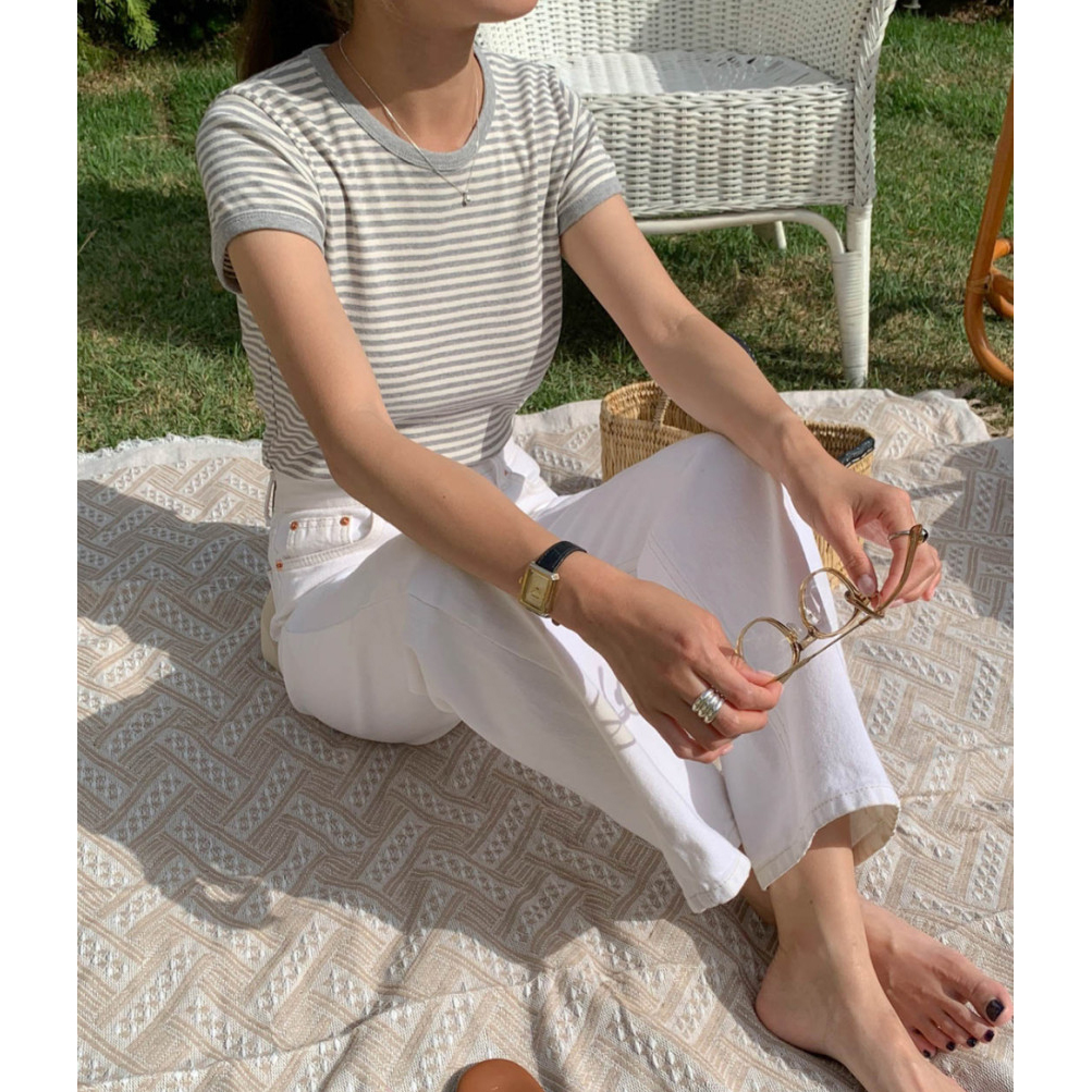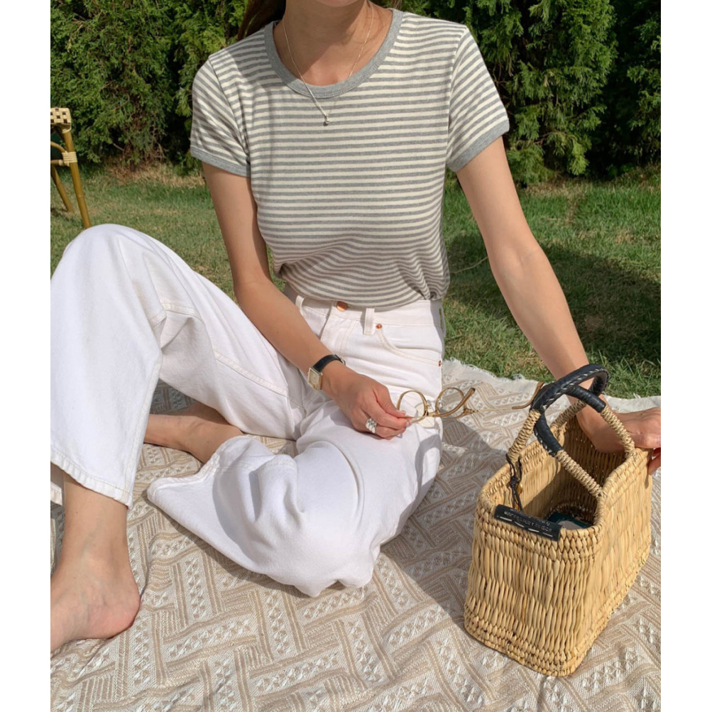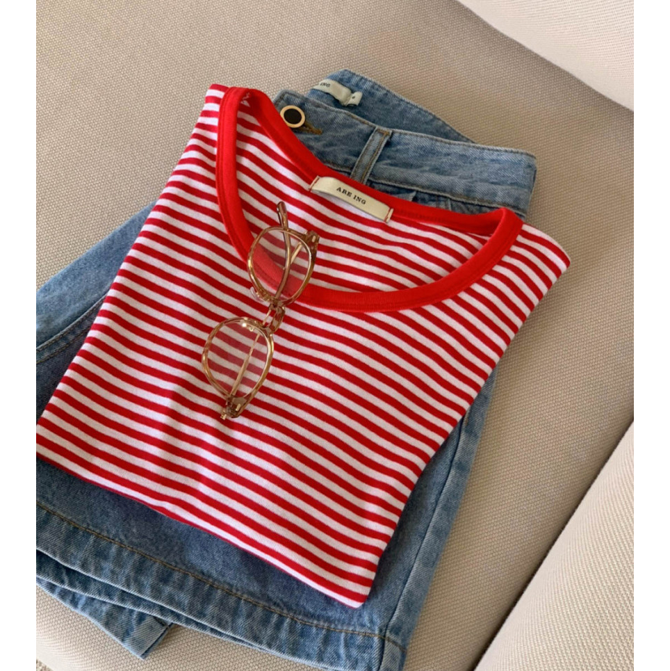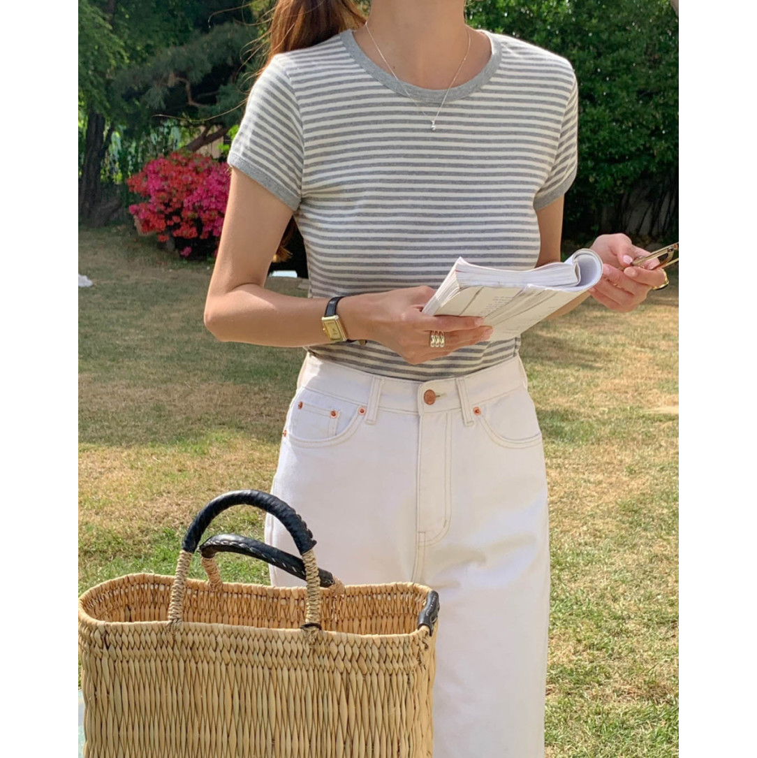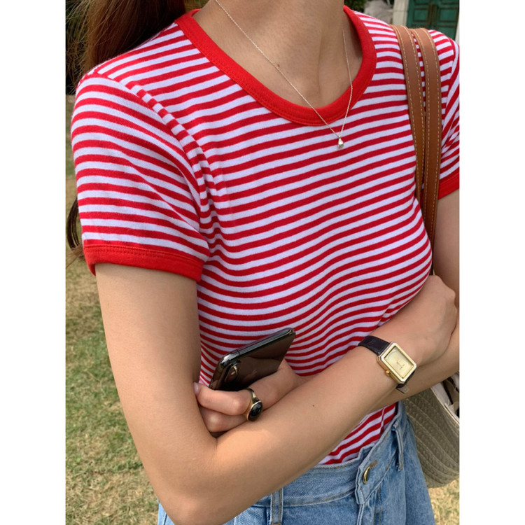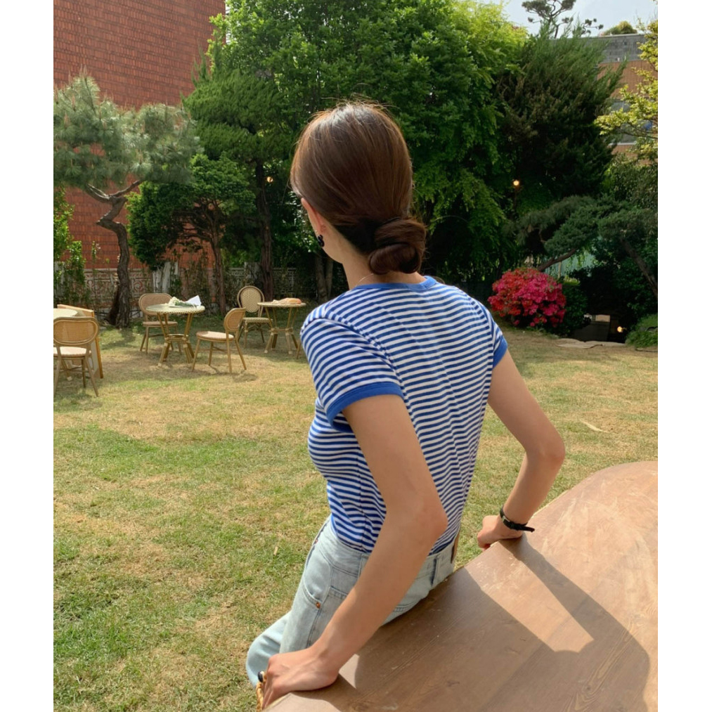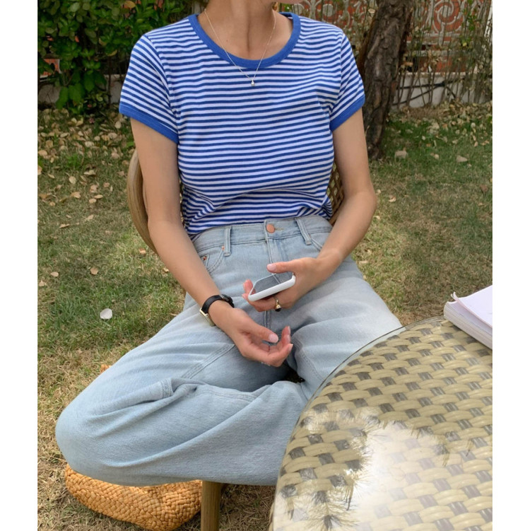 바로발송 쏘니 스트라이프 슬림 반팔 티셔츠