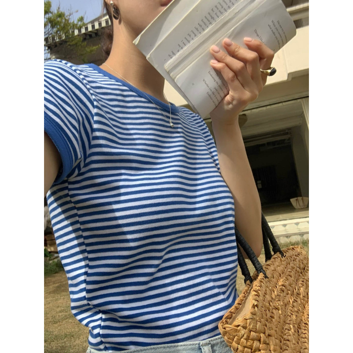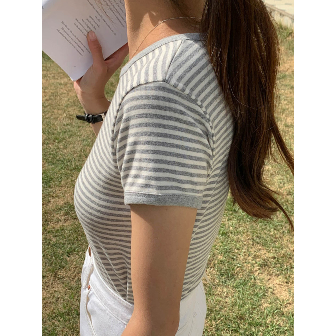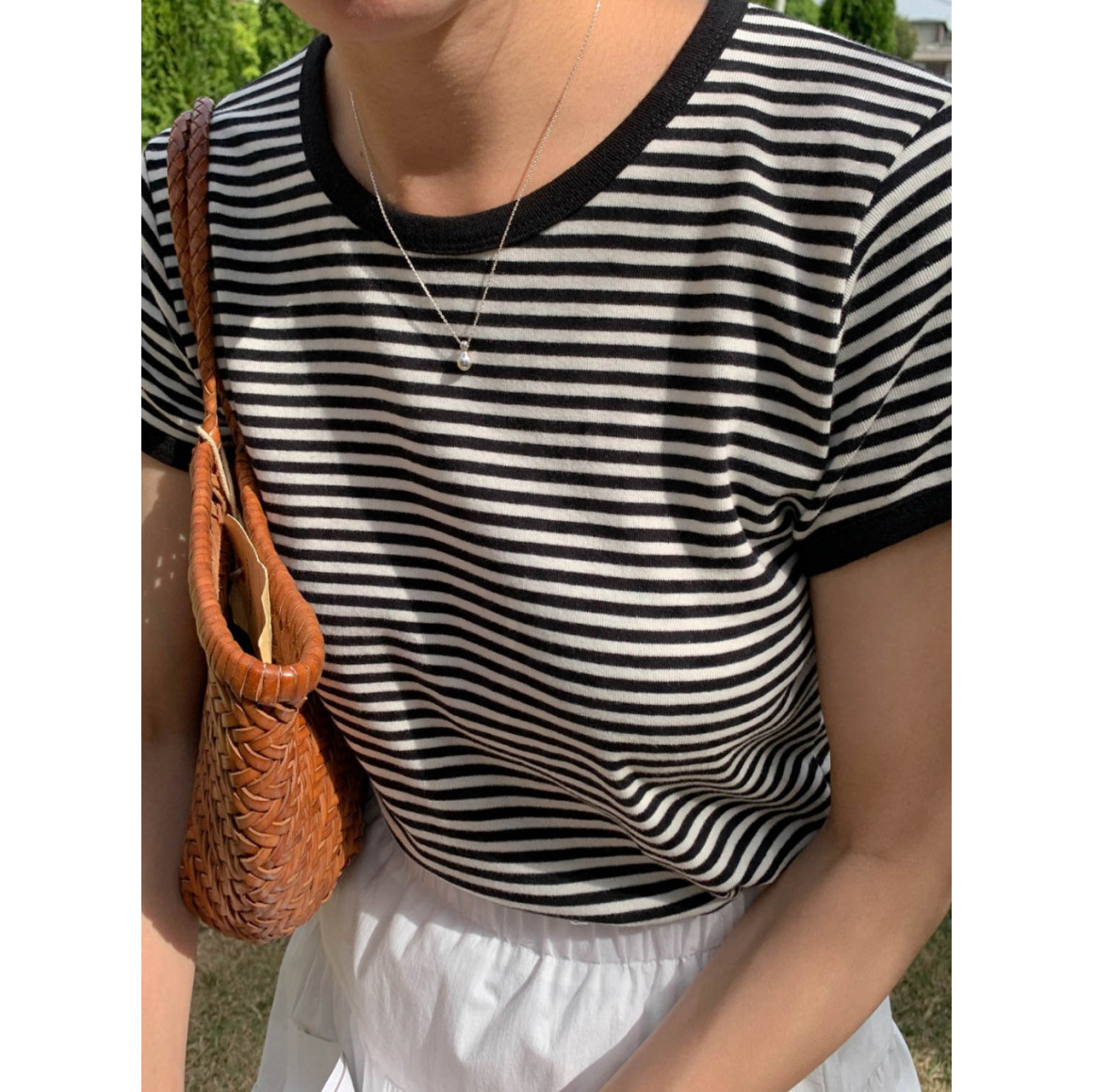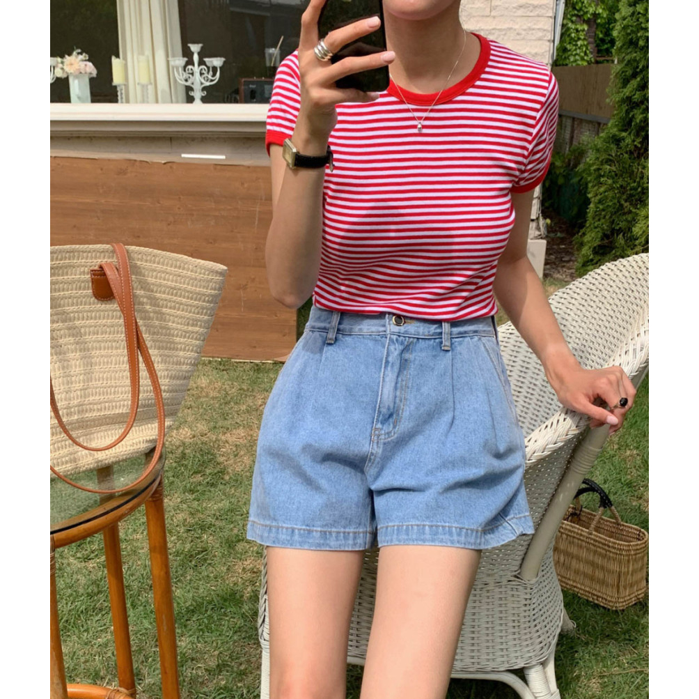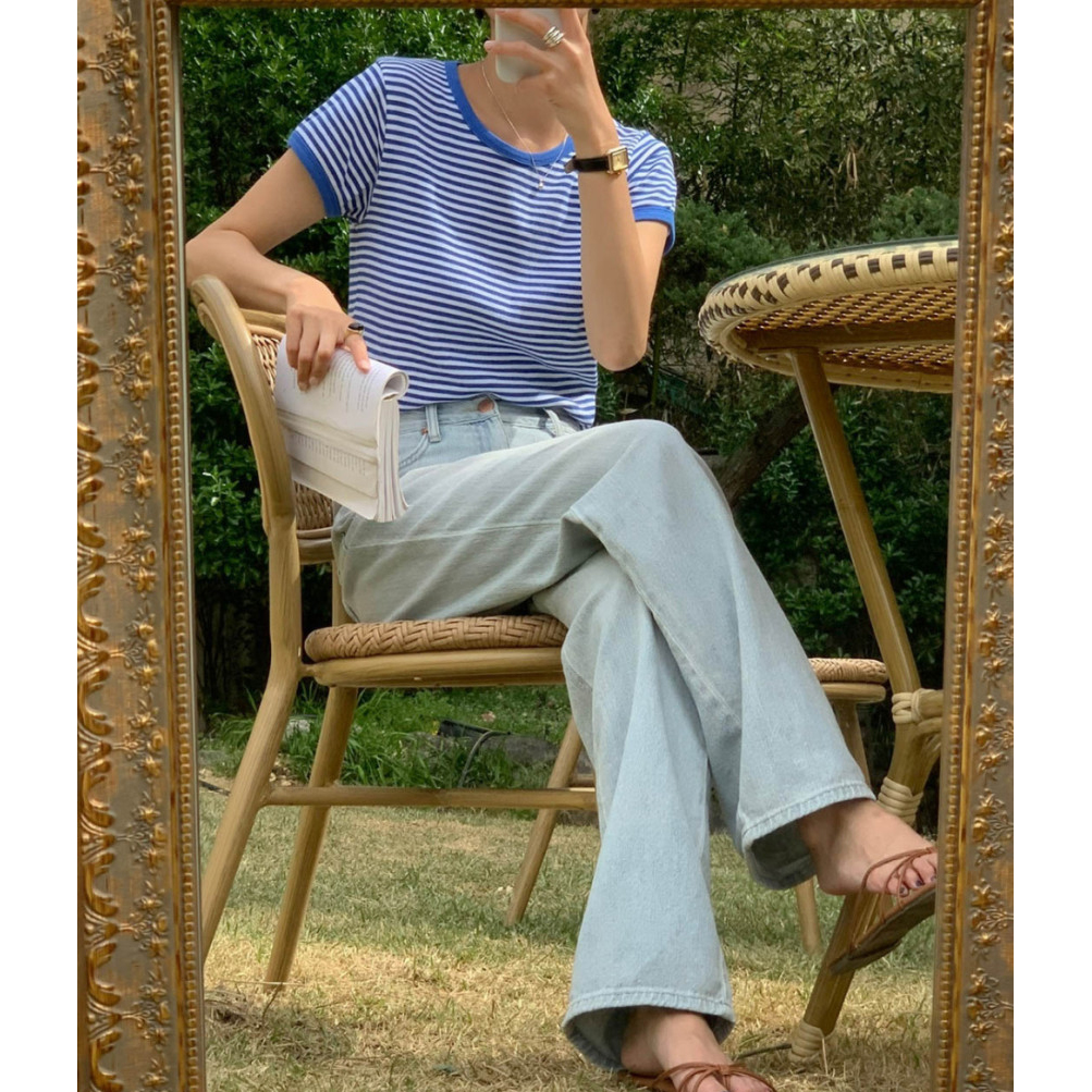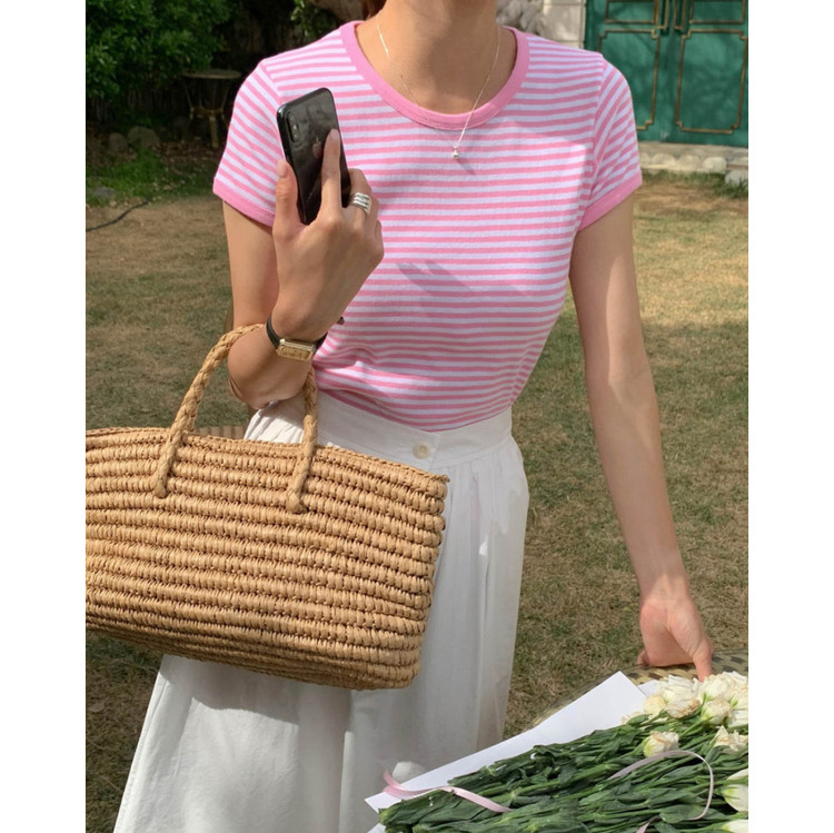 바로발송 쏘니 스트라이프 슬림 반팔 티셔츠