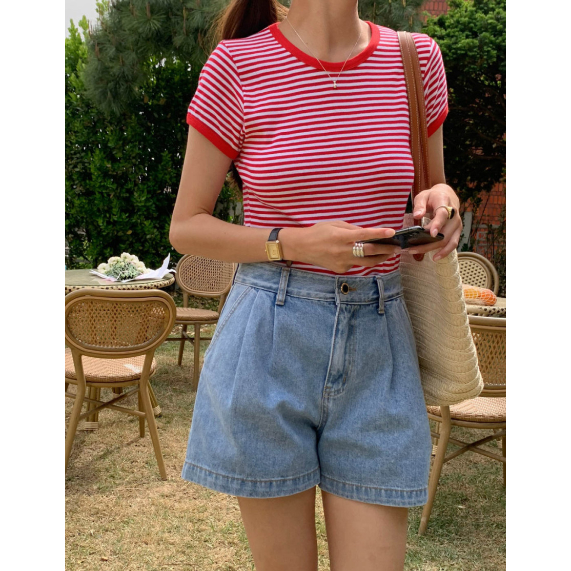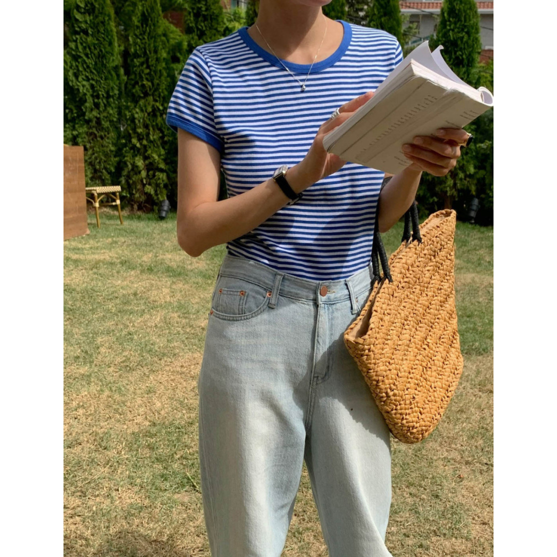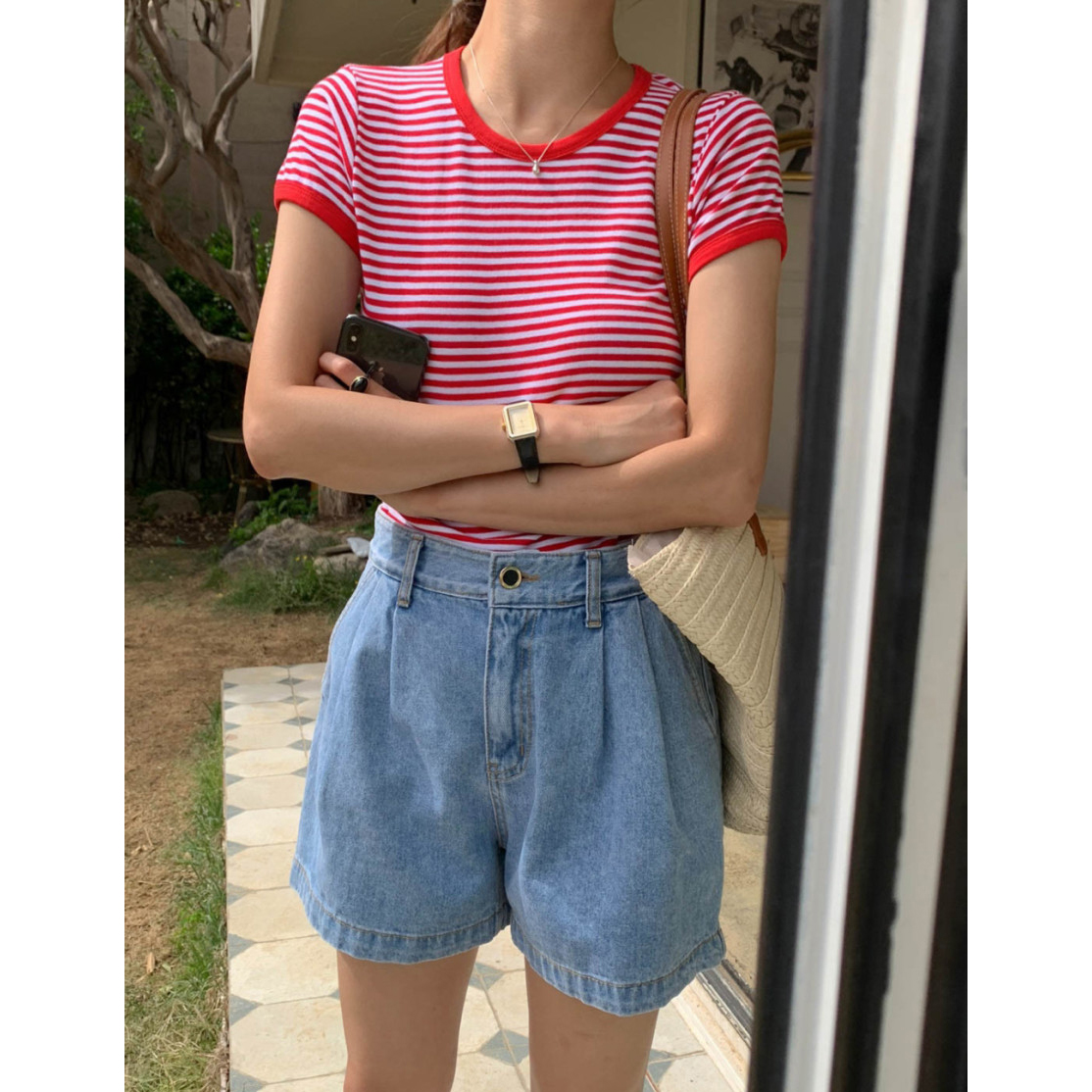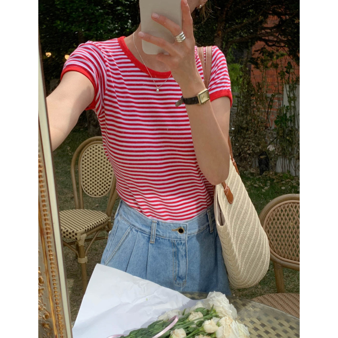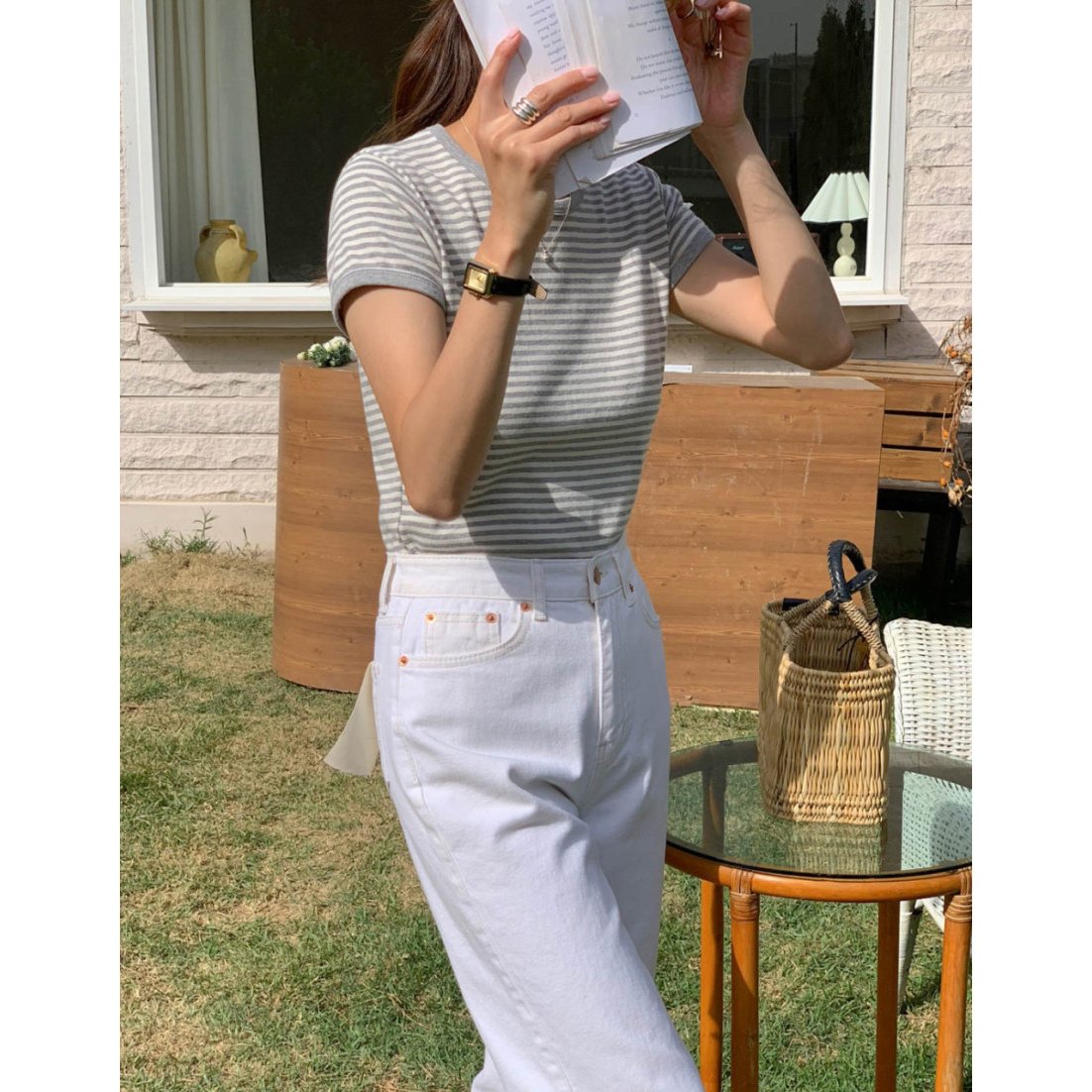 바로발송 쏘니 스트라이프 슬림 반팔 티셔츠