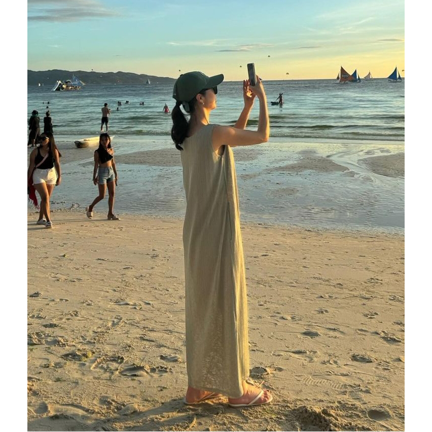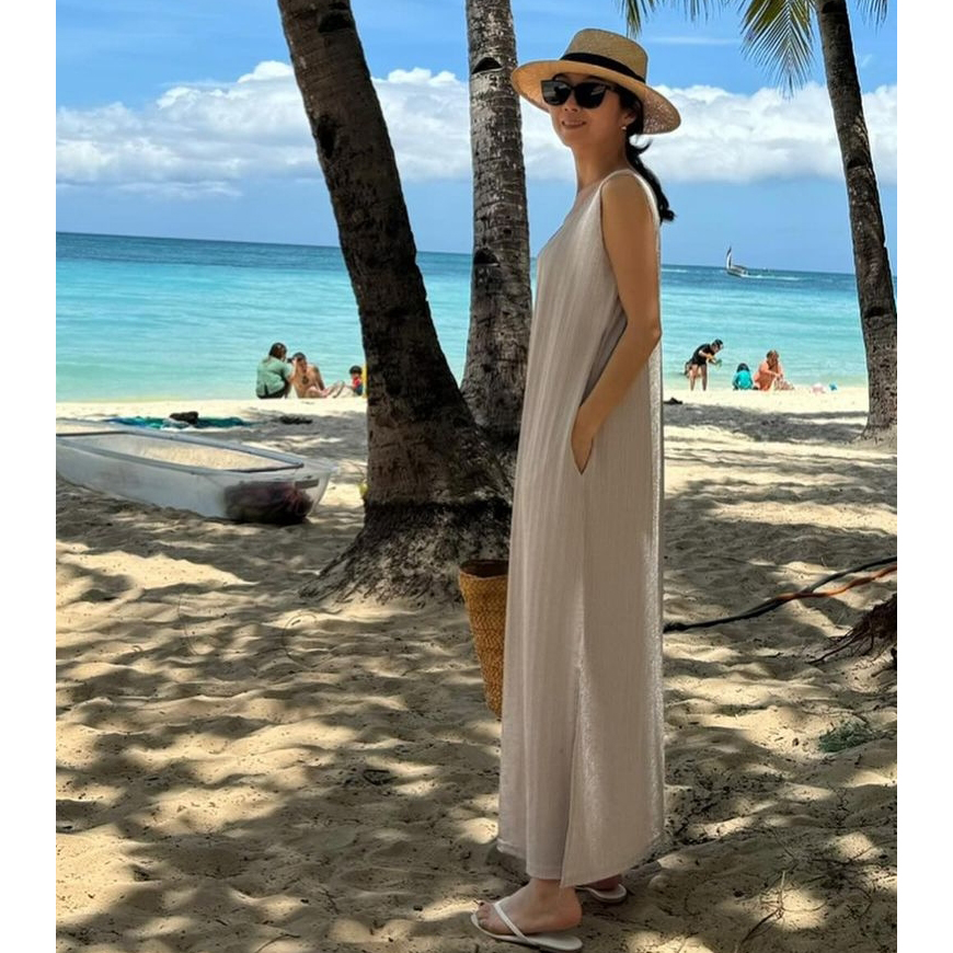 은은한 펄 플리츠 나시 롱 원피스