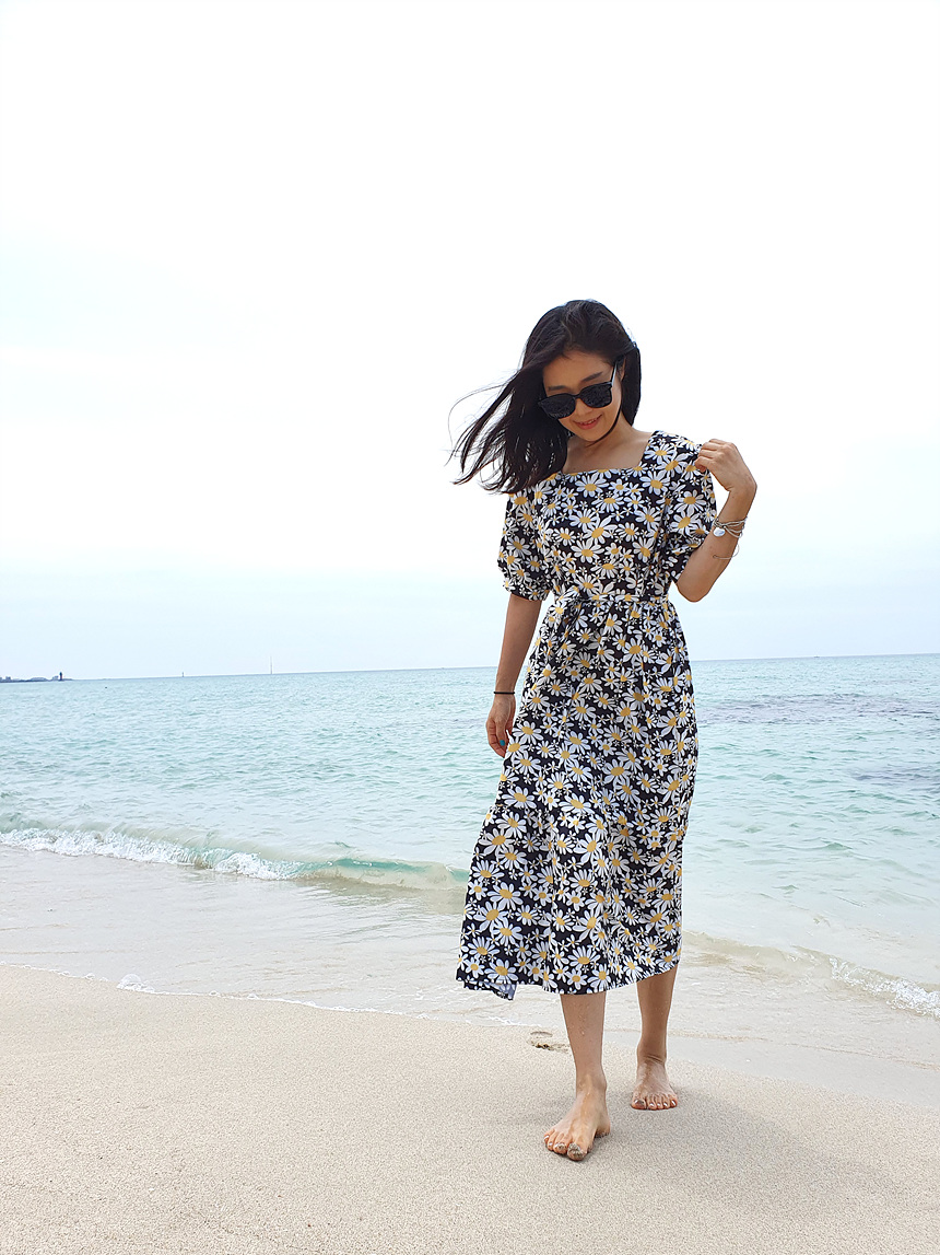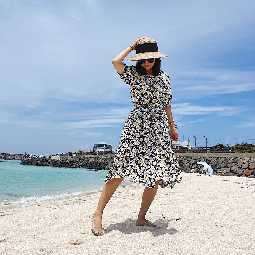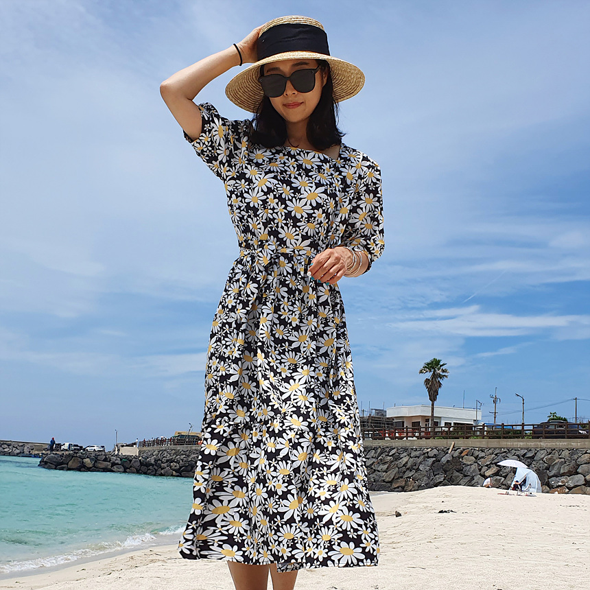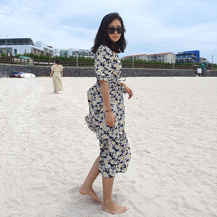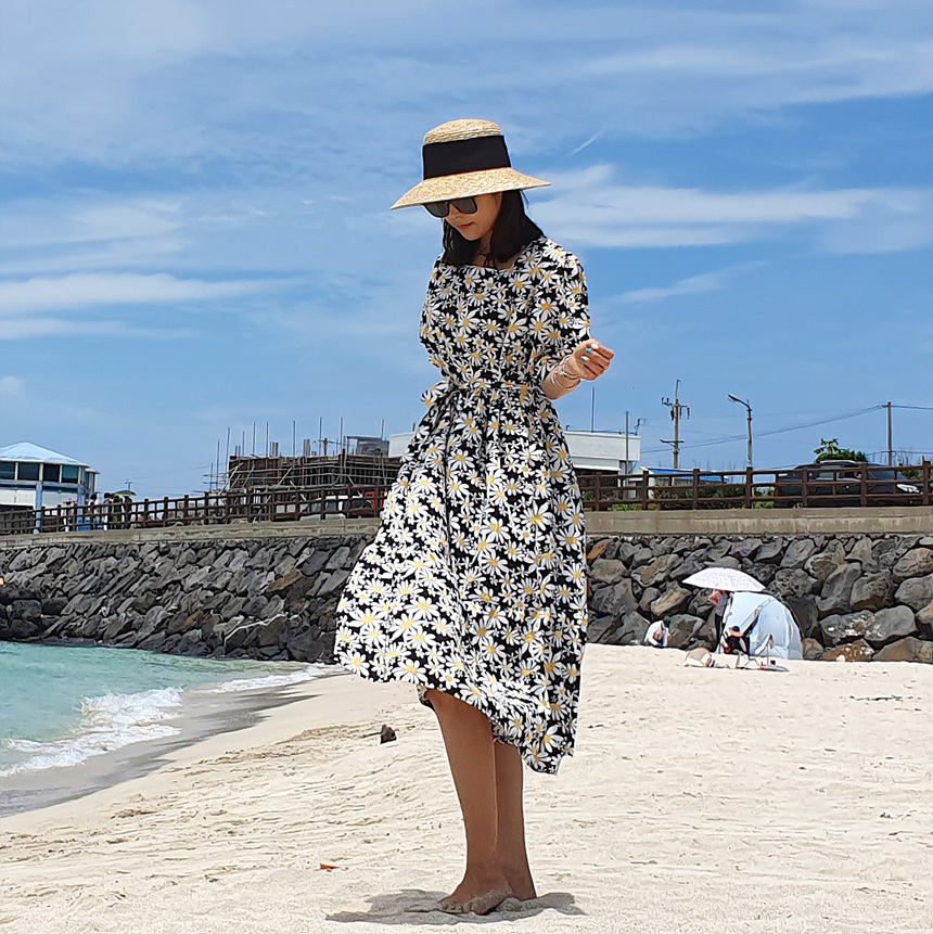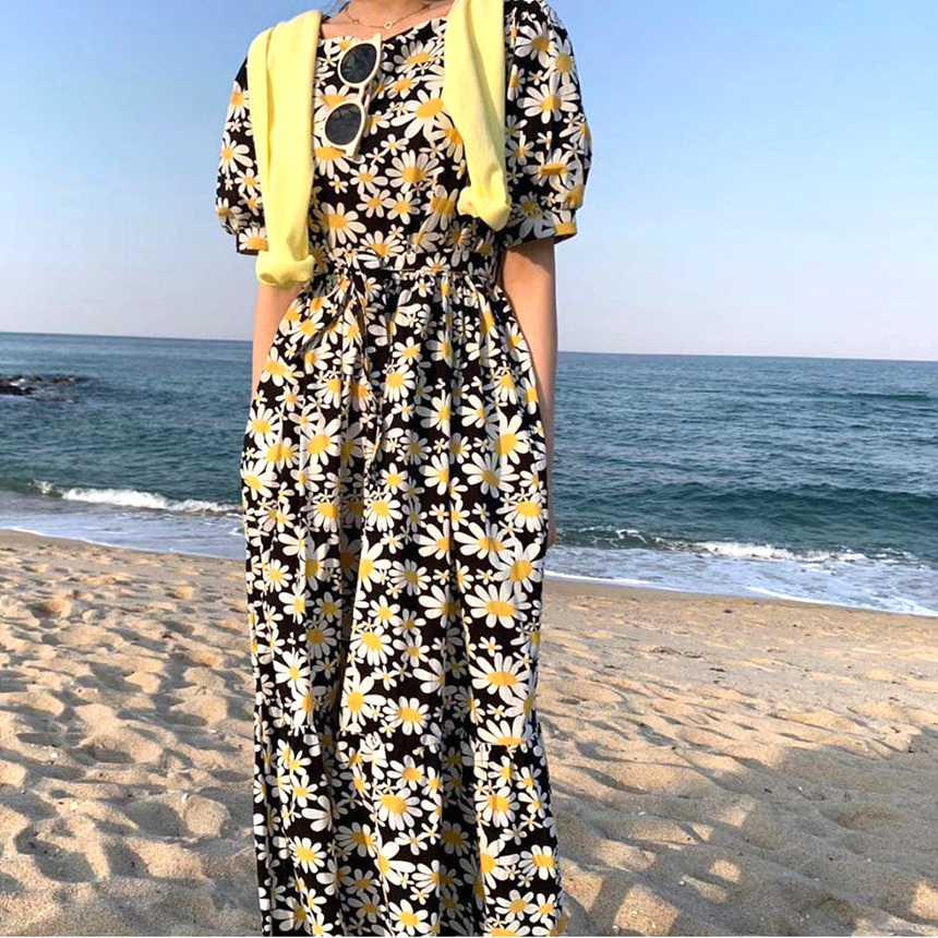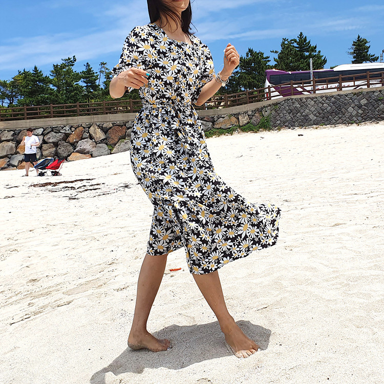 바로발송 데이지 꽃 루즈핏 롱 원피스