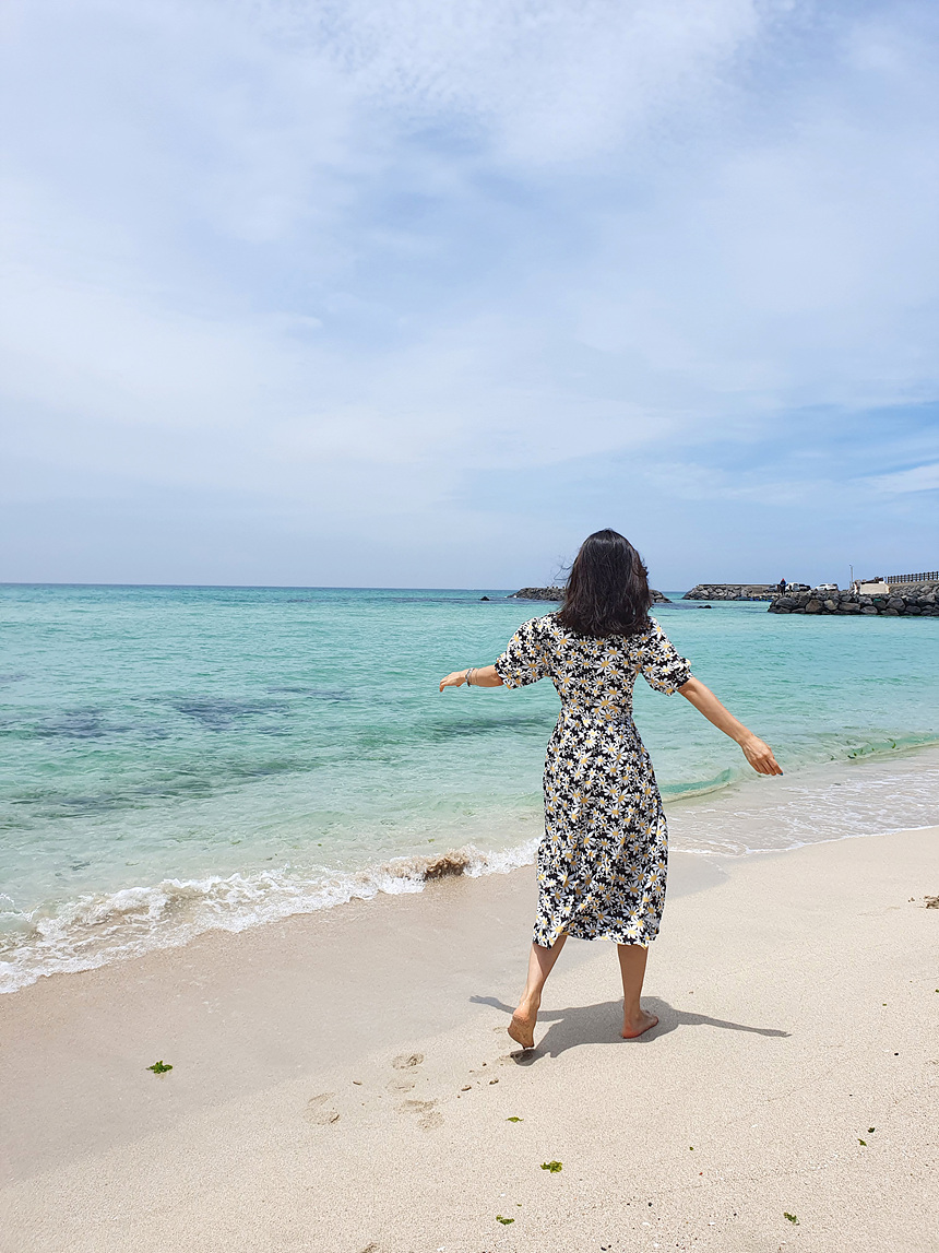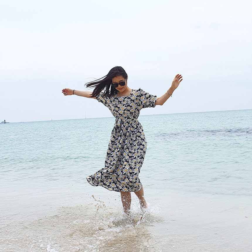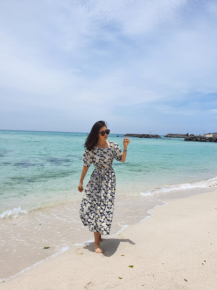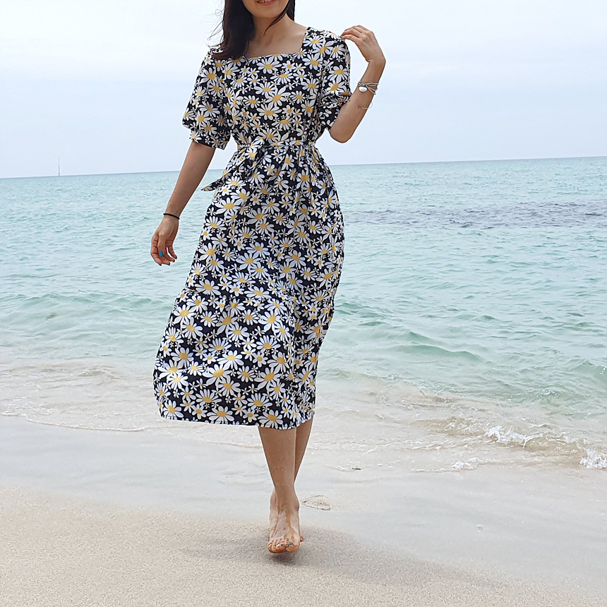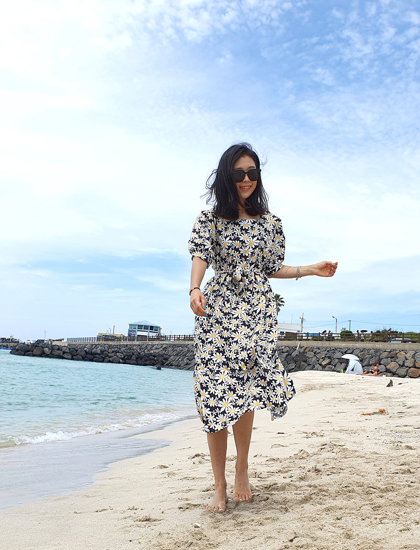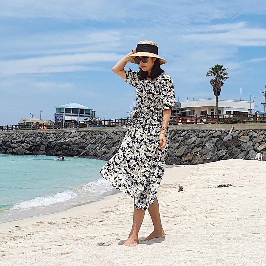 바로발송 데이지 꽃 루즈핏 롱 원피스