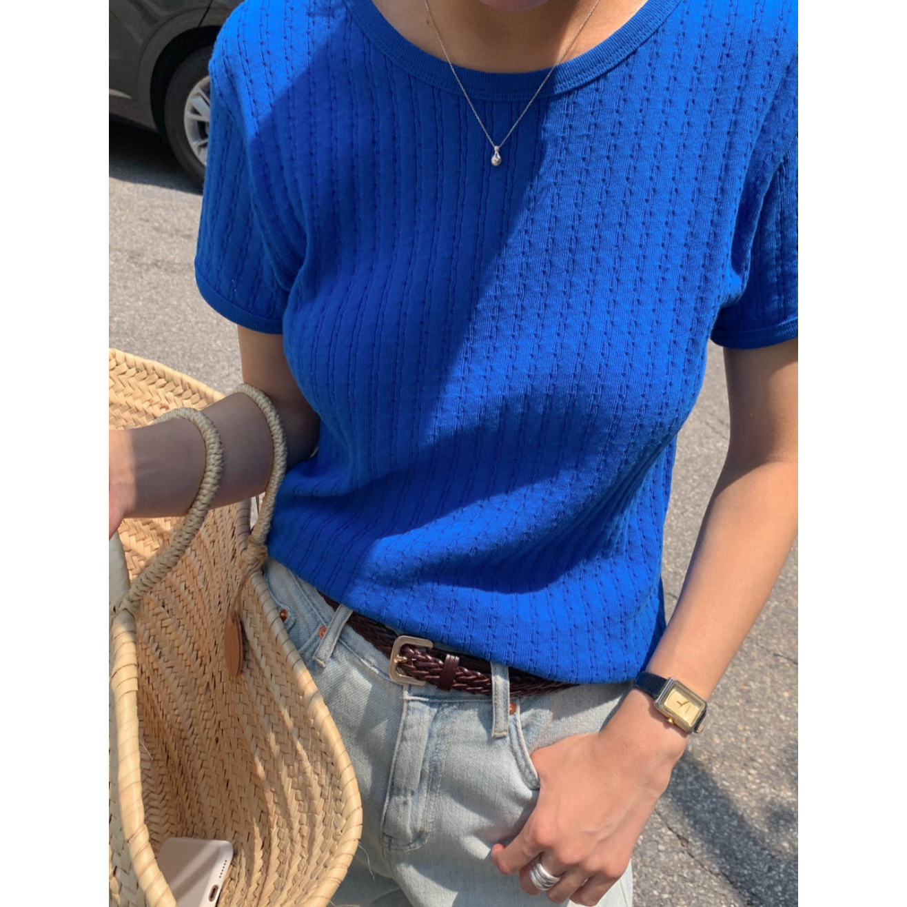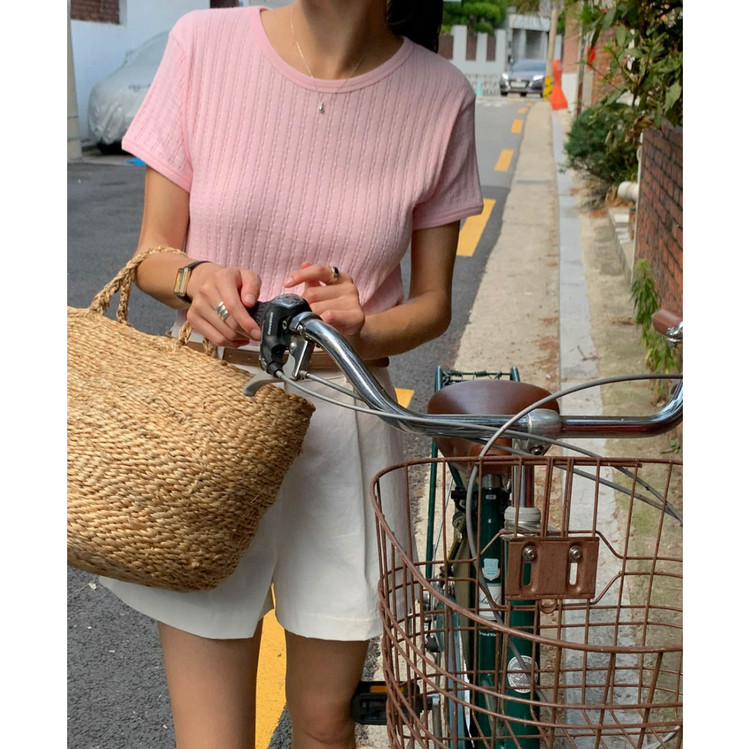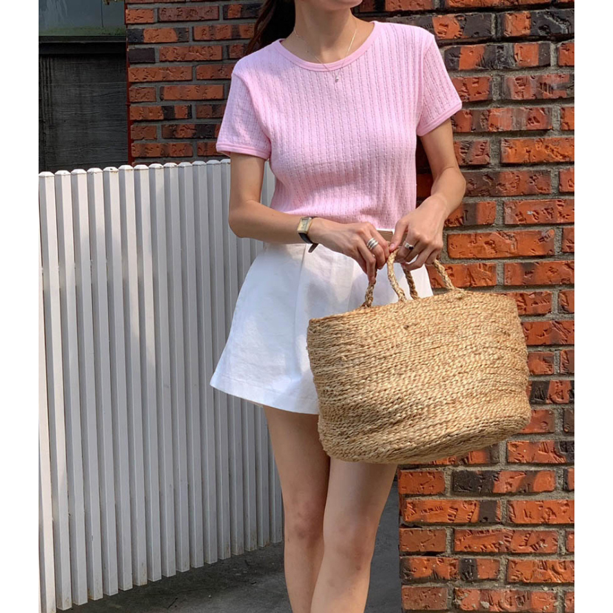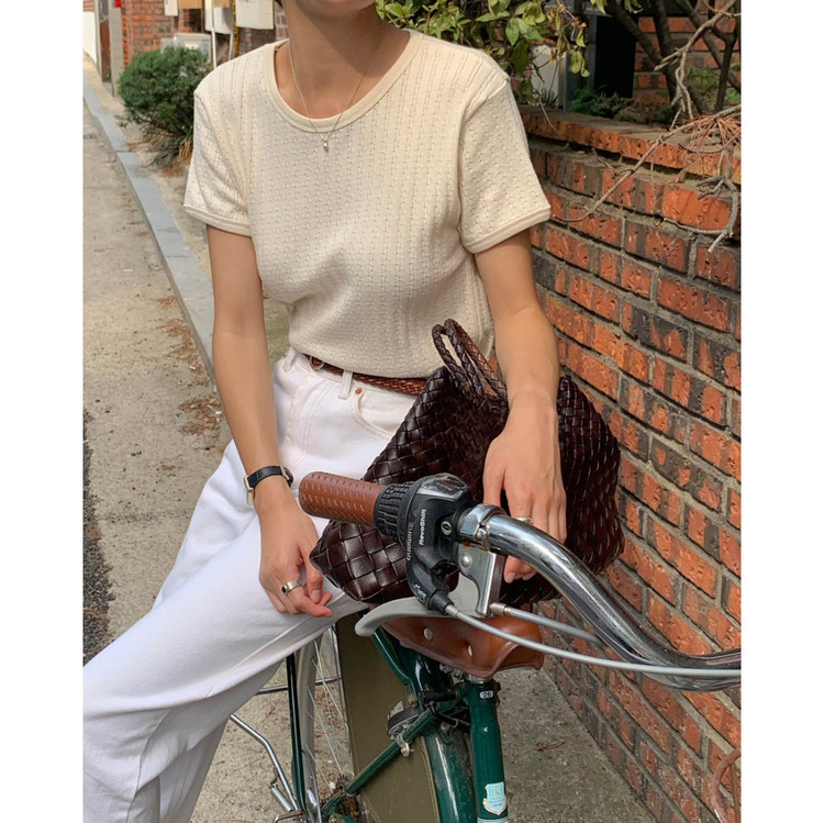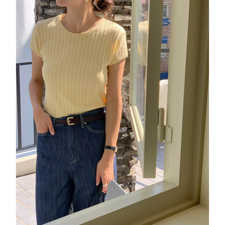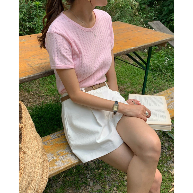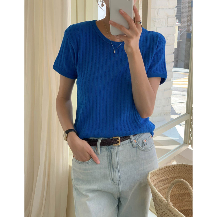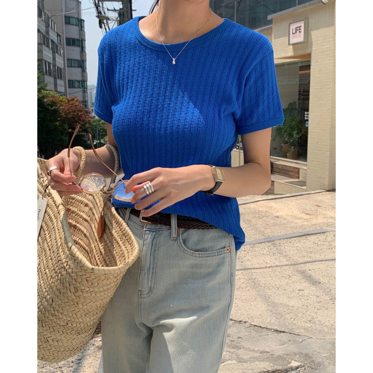 바로발송 델마 펀칭 라운드 반팔 티셔츠