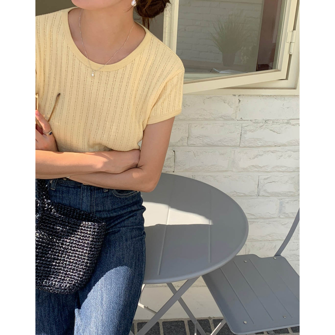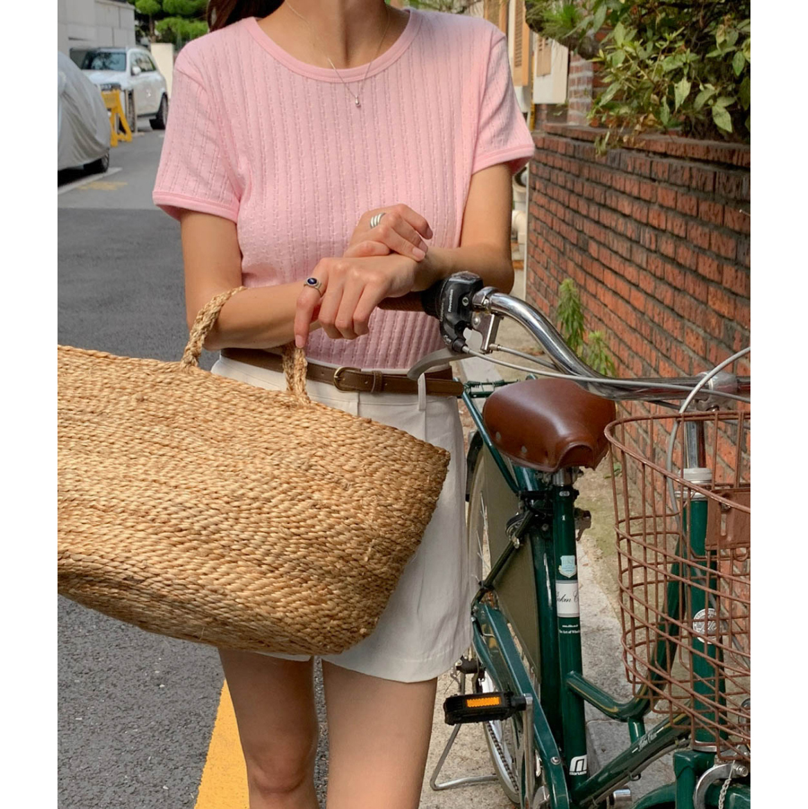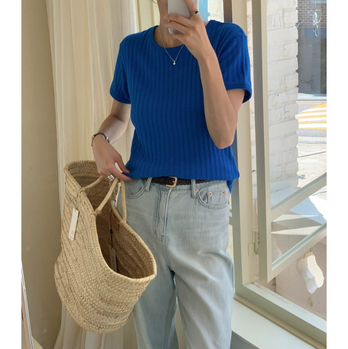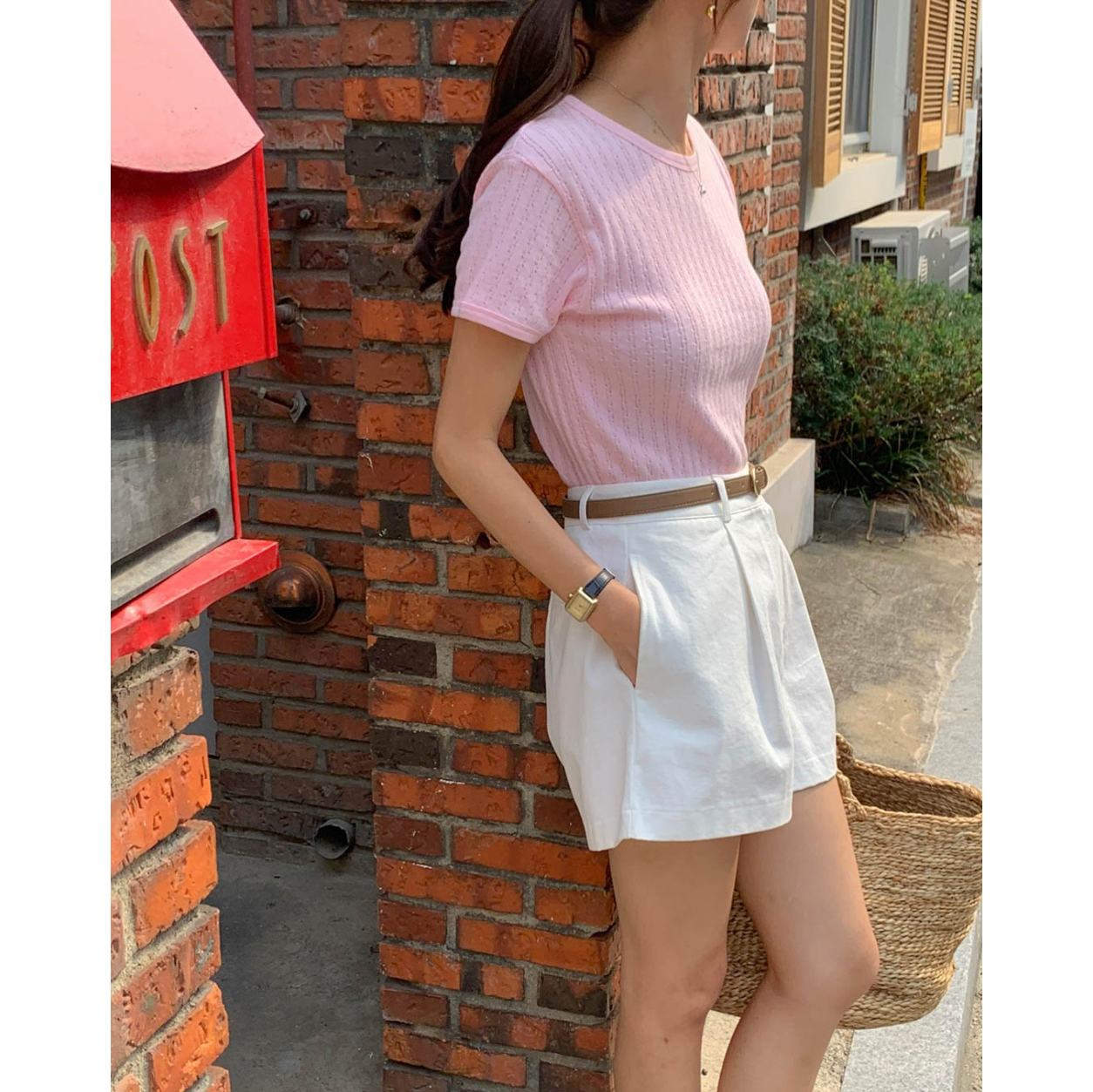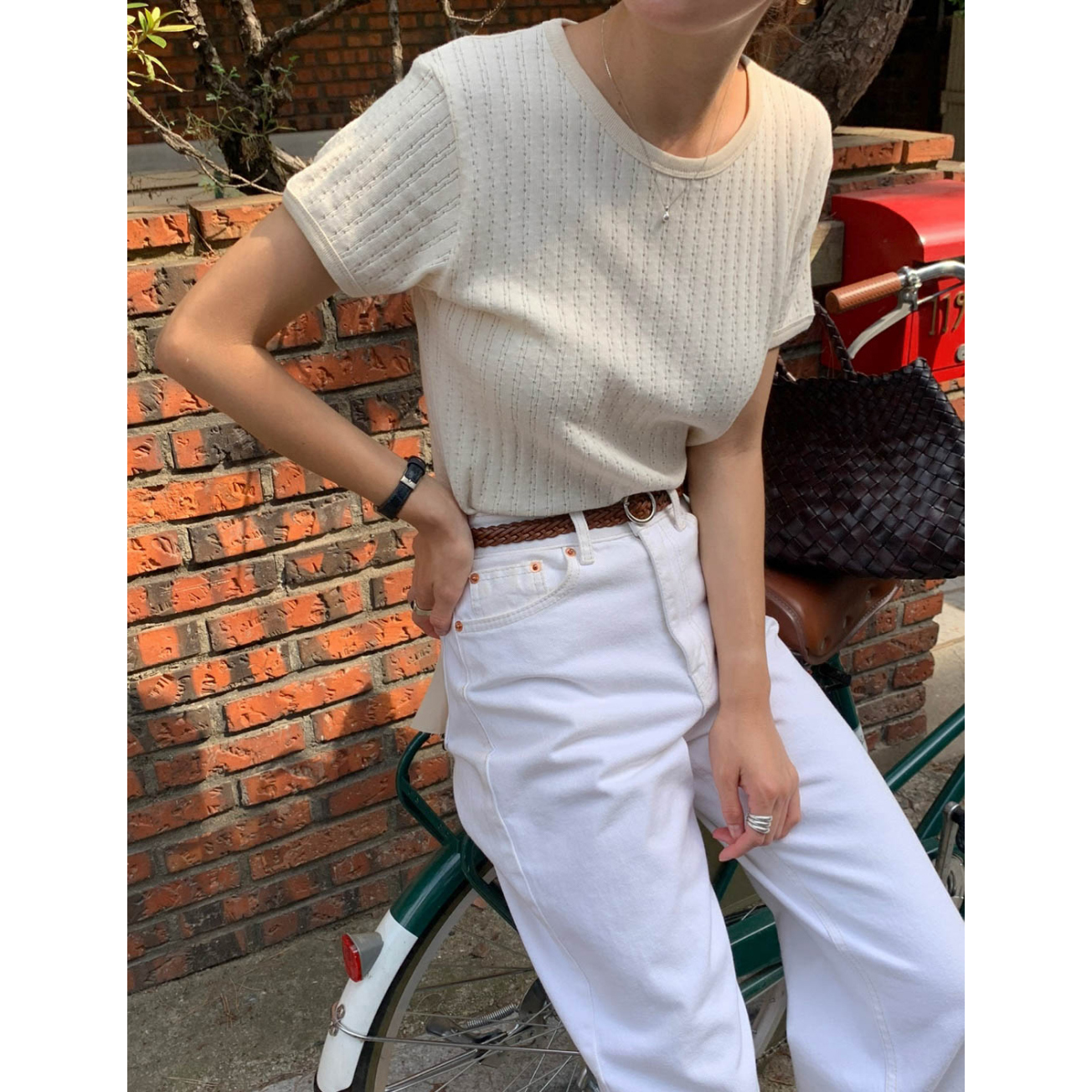 바로발송 델마 펀칭 라운드 반팔 티셔츠