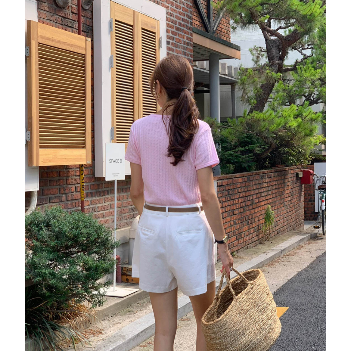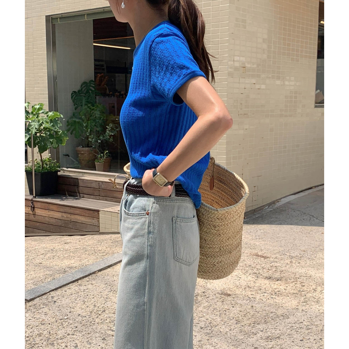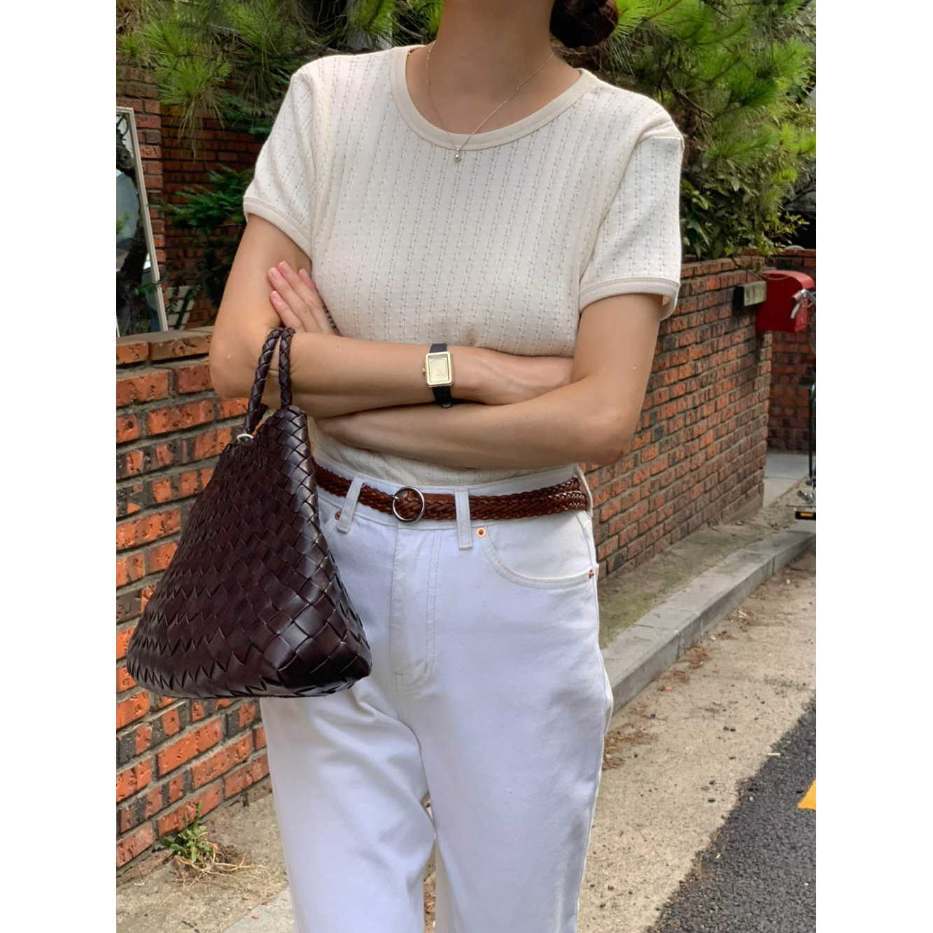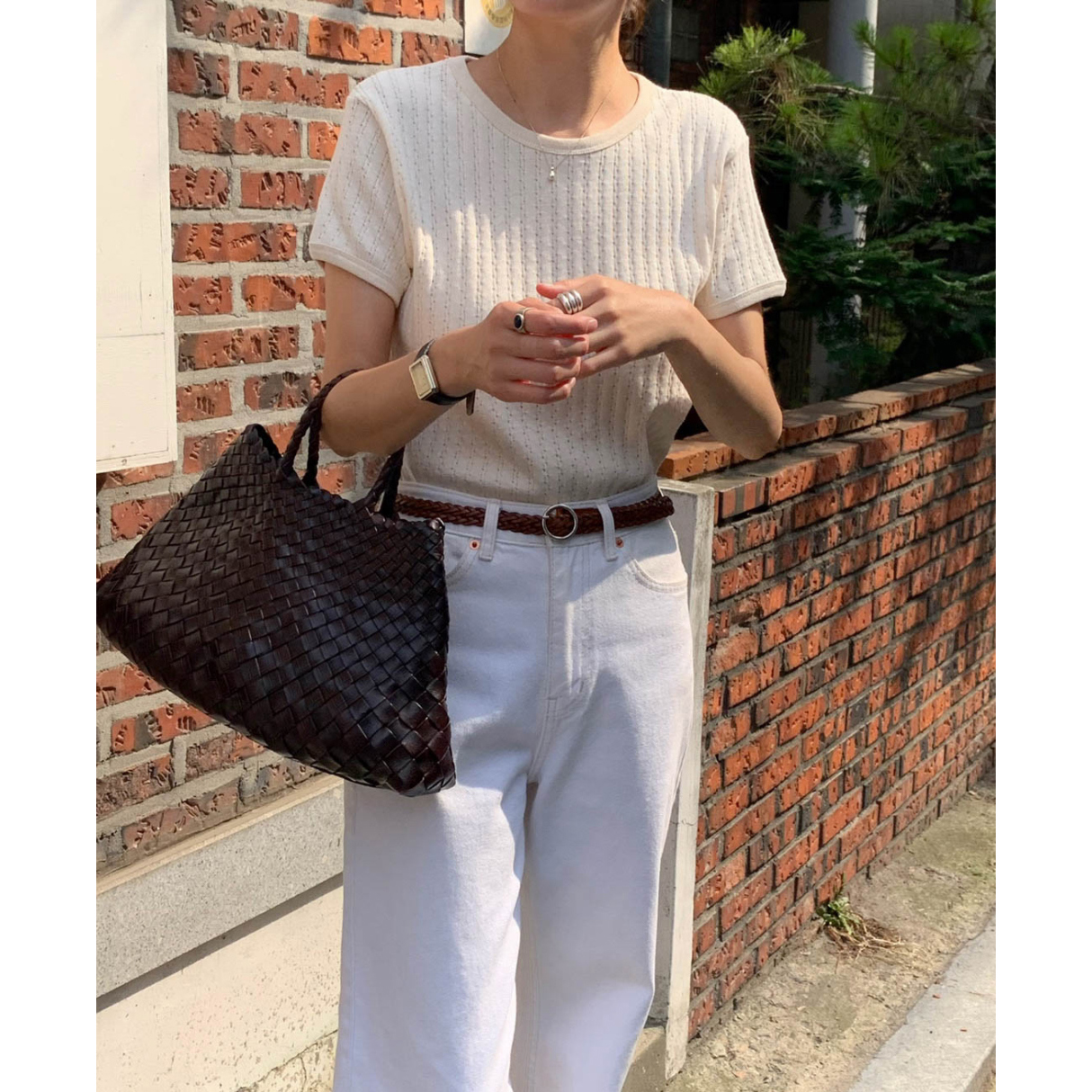 바로발송 델마 펀칭 라운드 반팔 티셔츠