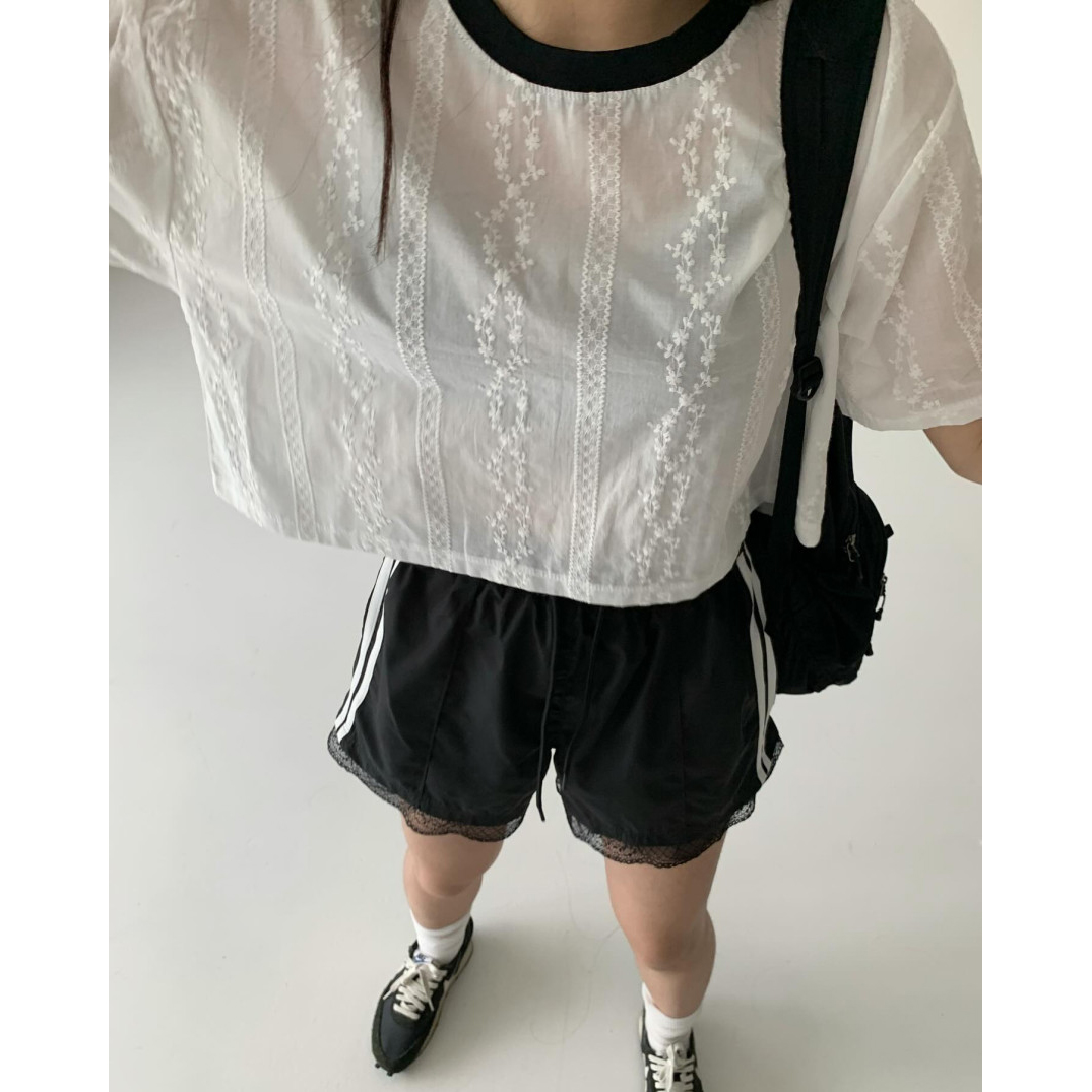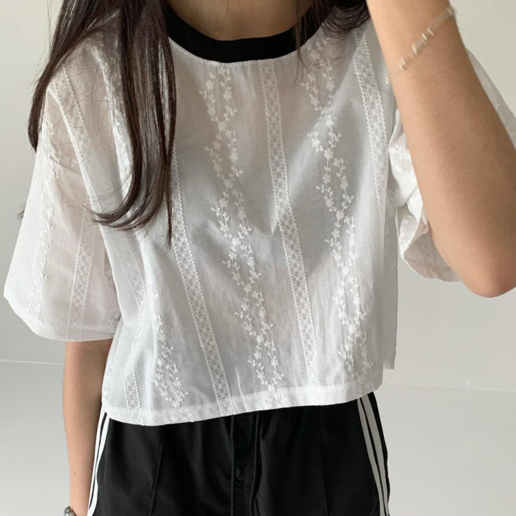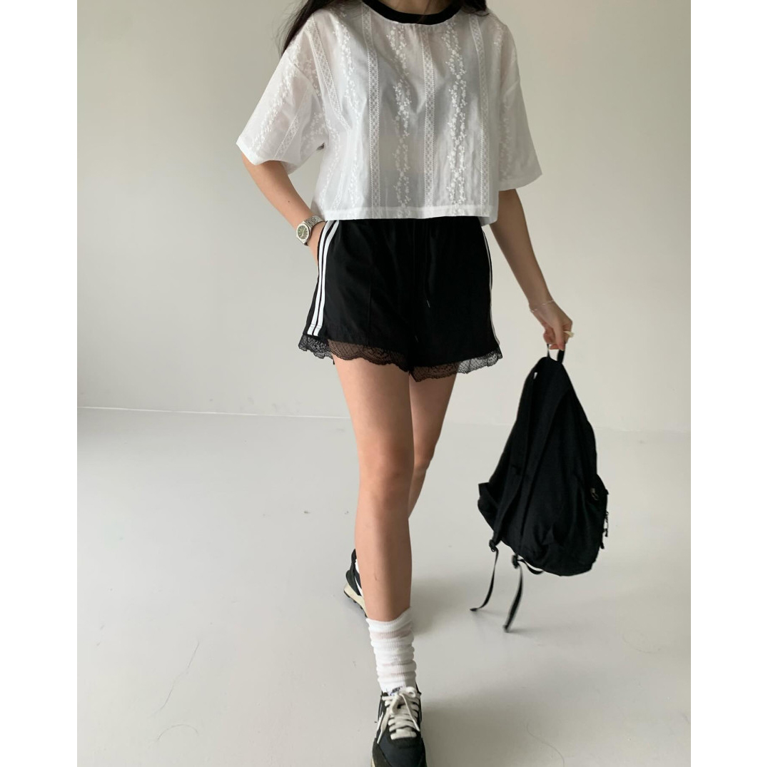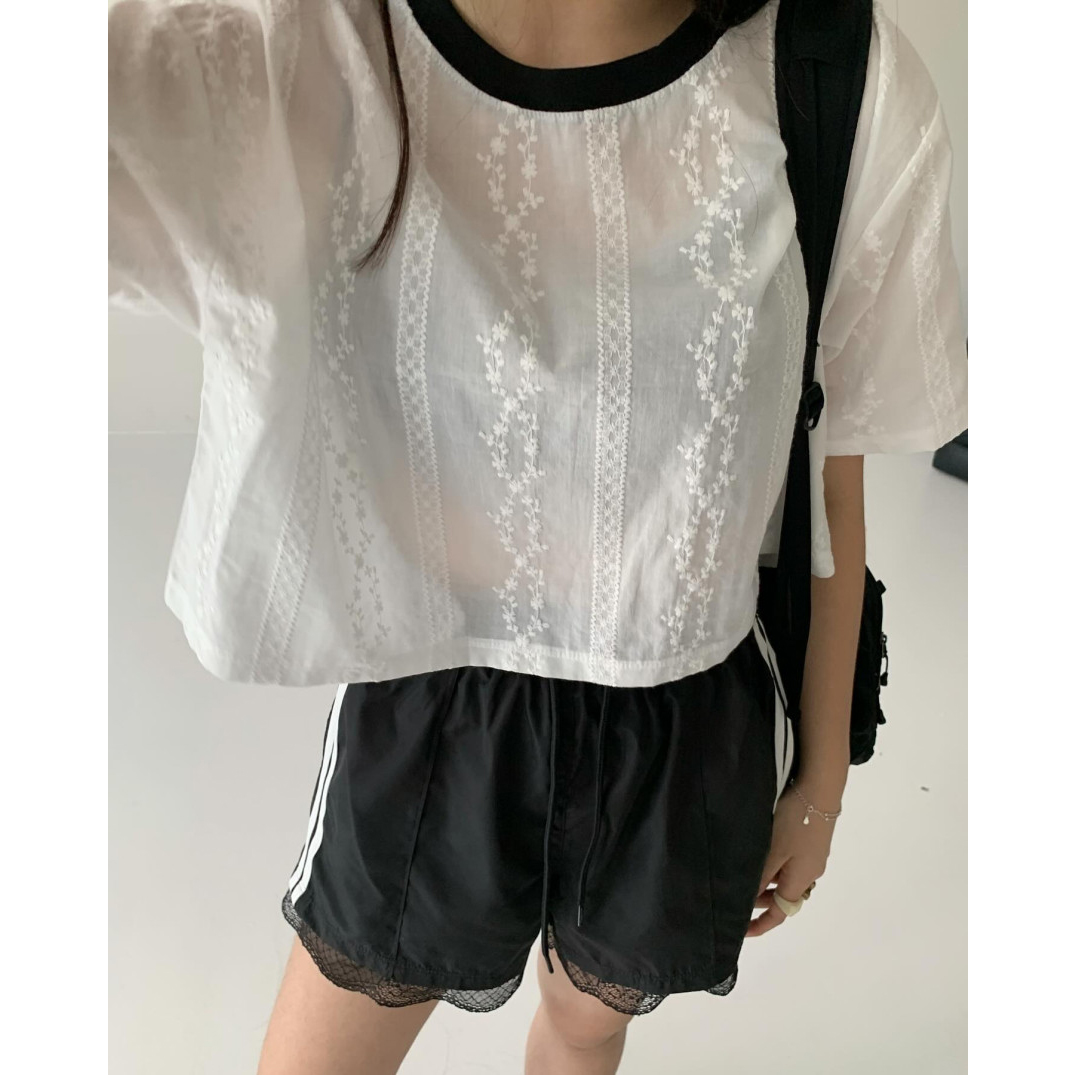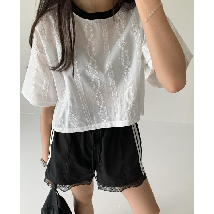 바로발송 코튼 레이스 크롭 반팔 티셔츠