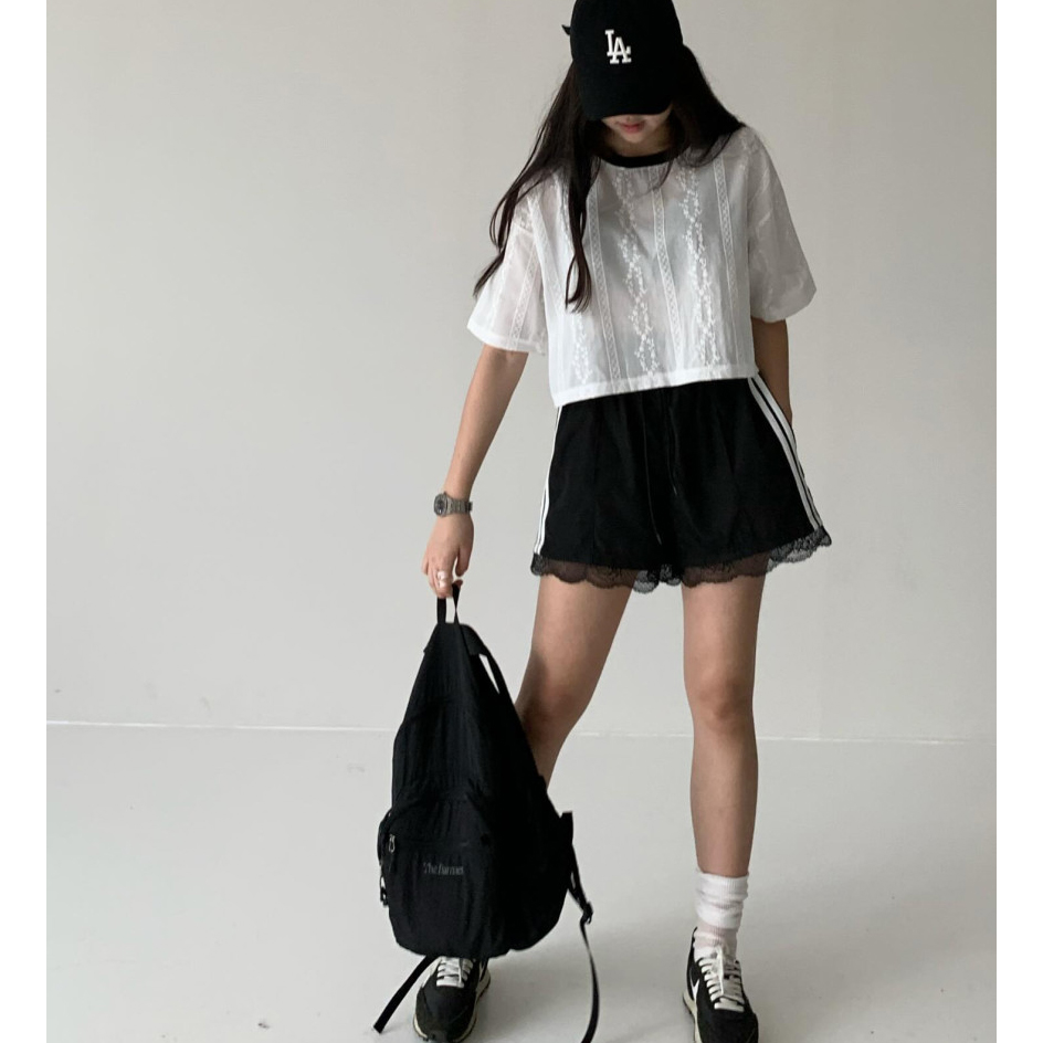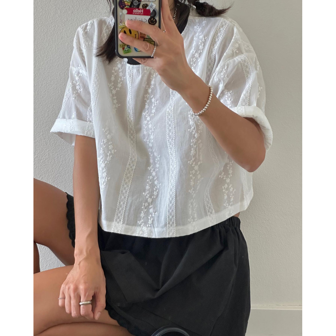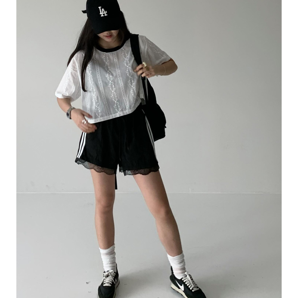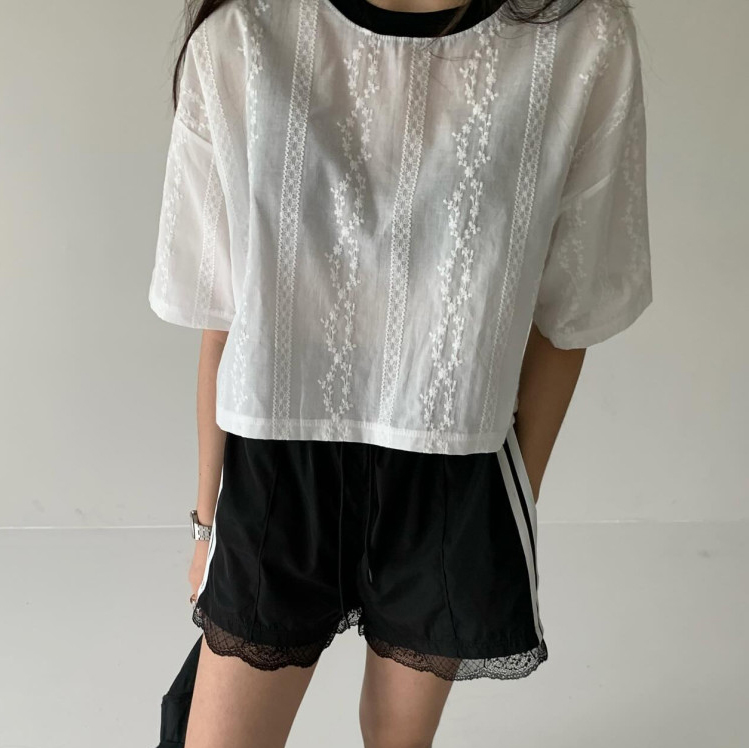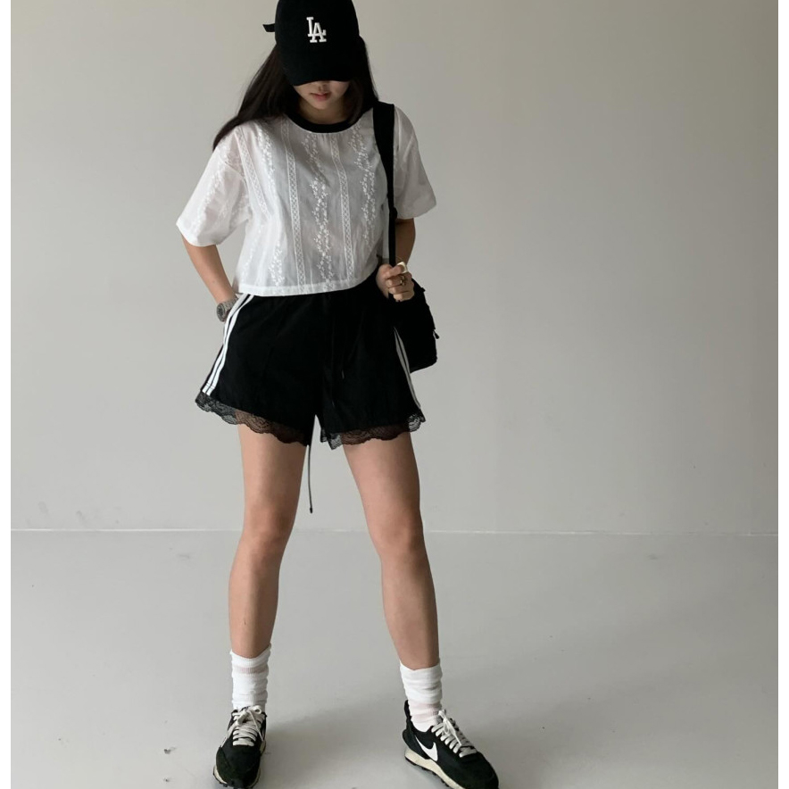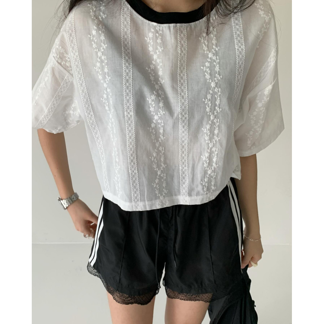바로발송 코튼 레이스 크롭 반팔 티셔츠