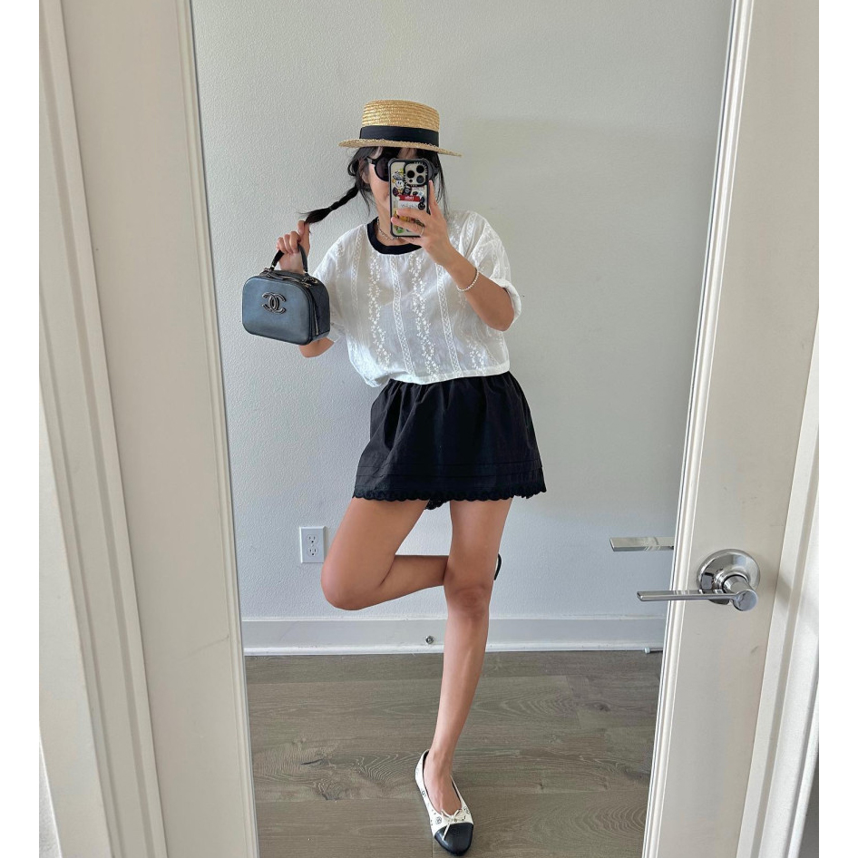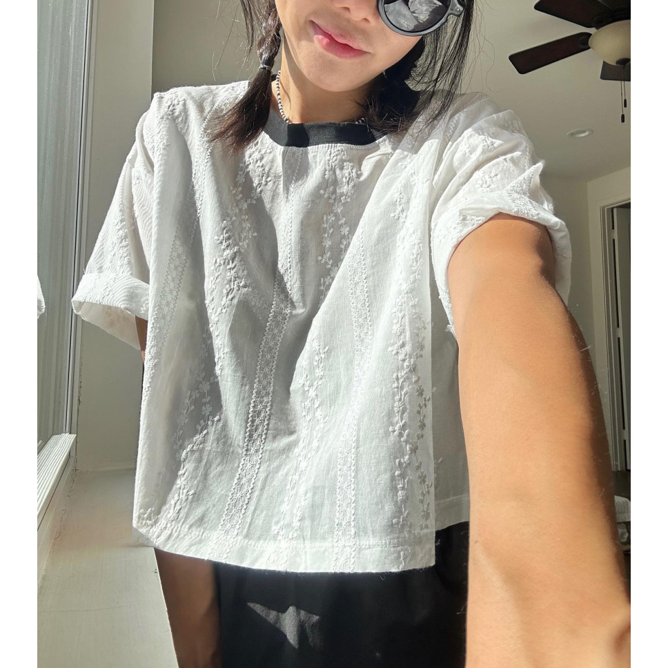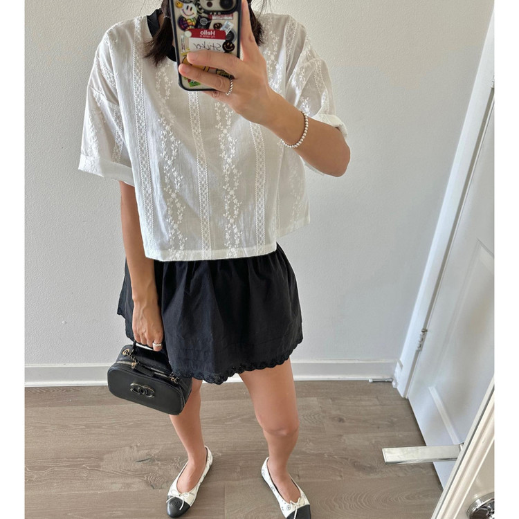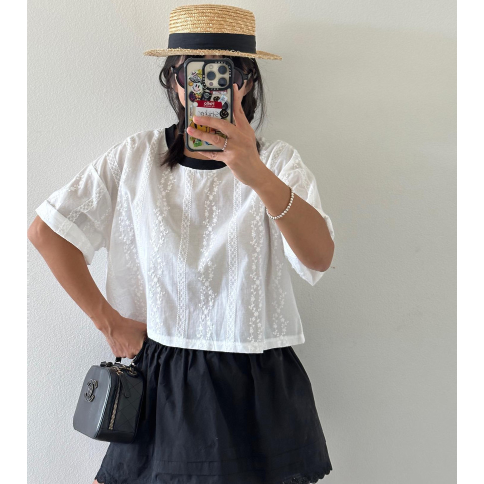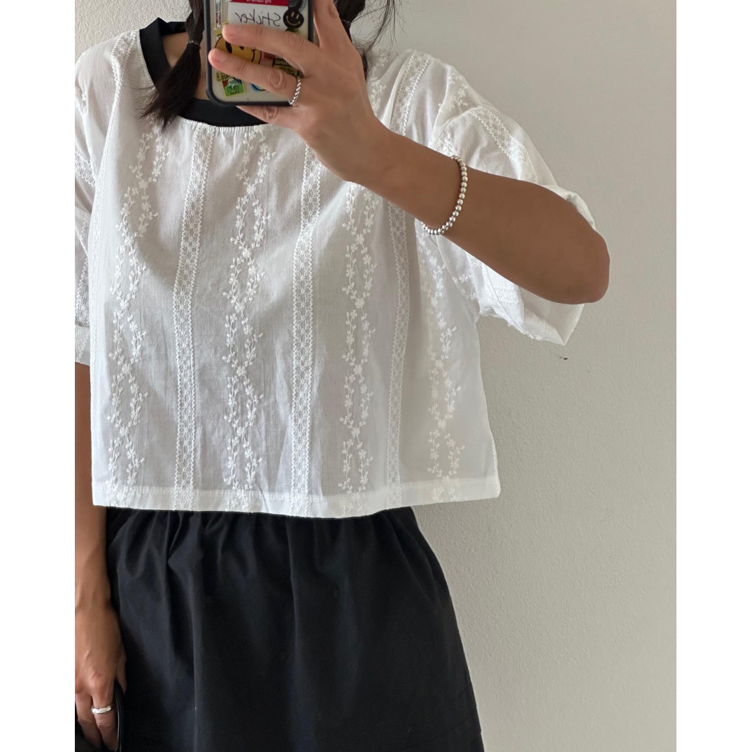 바로발송 코튼 레이스 크롭 반팔 티셔츠