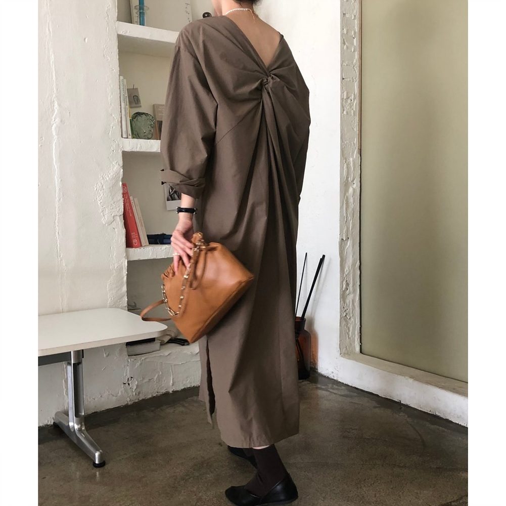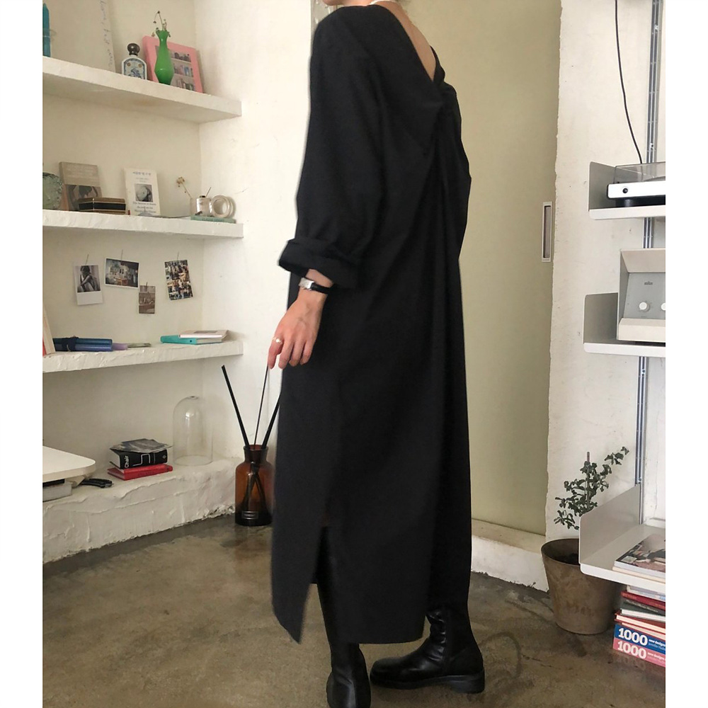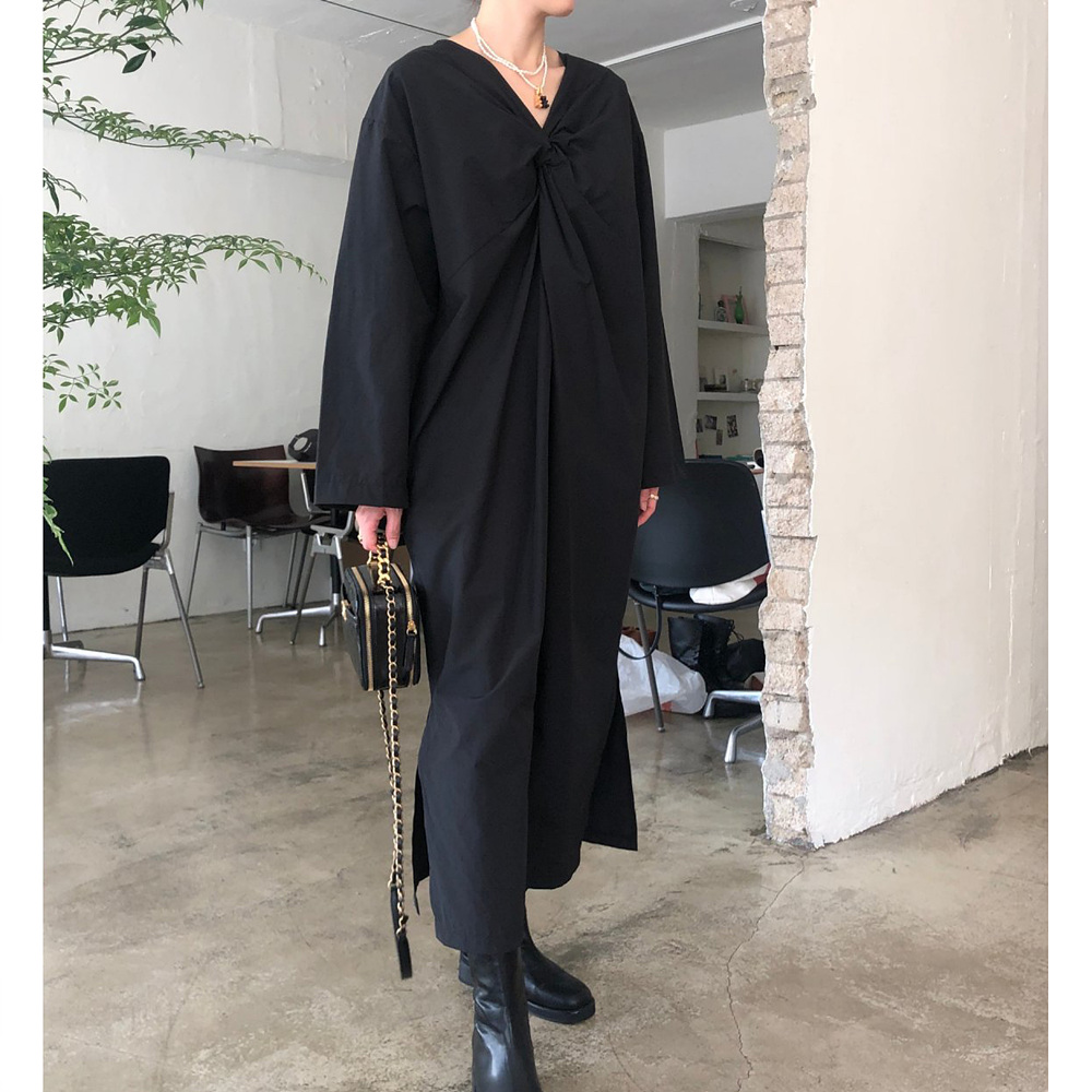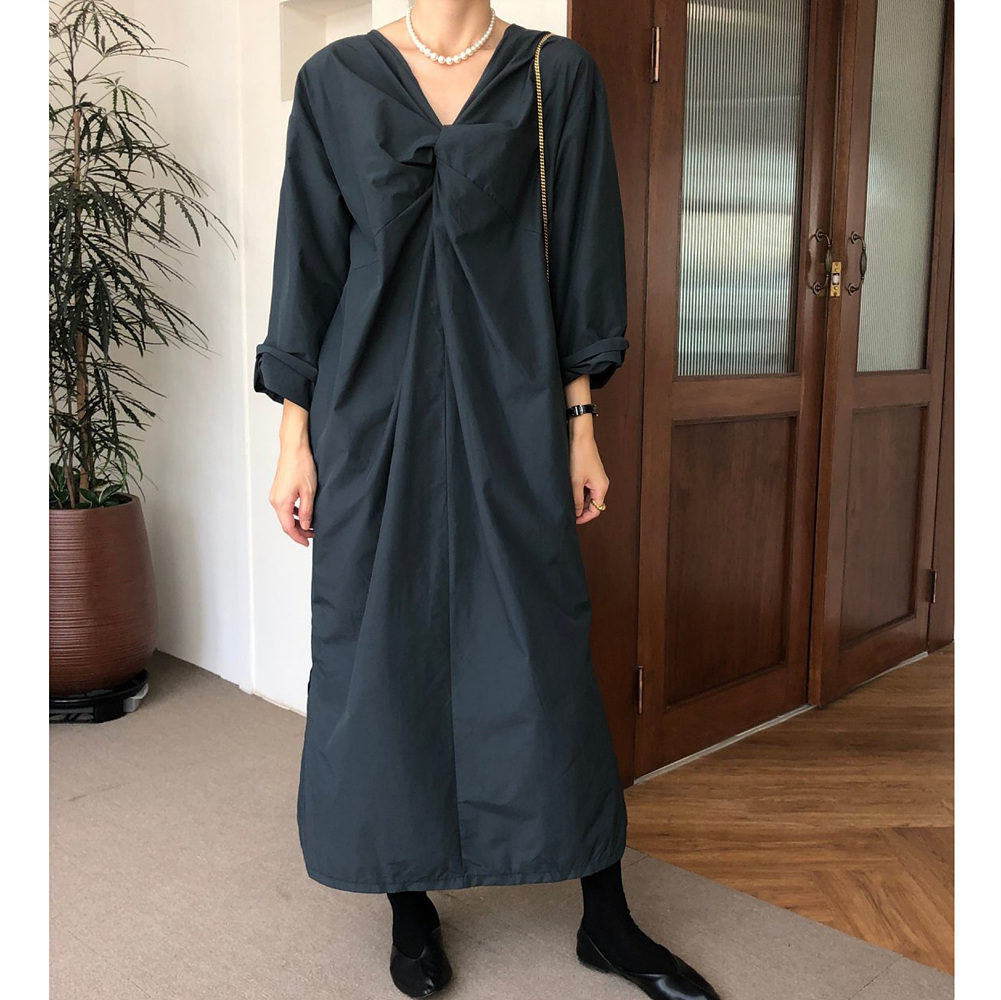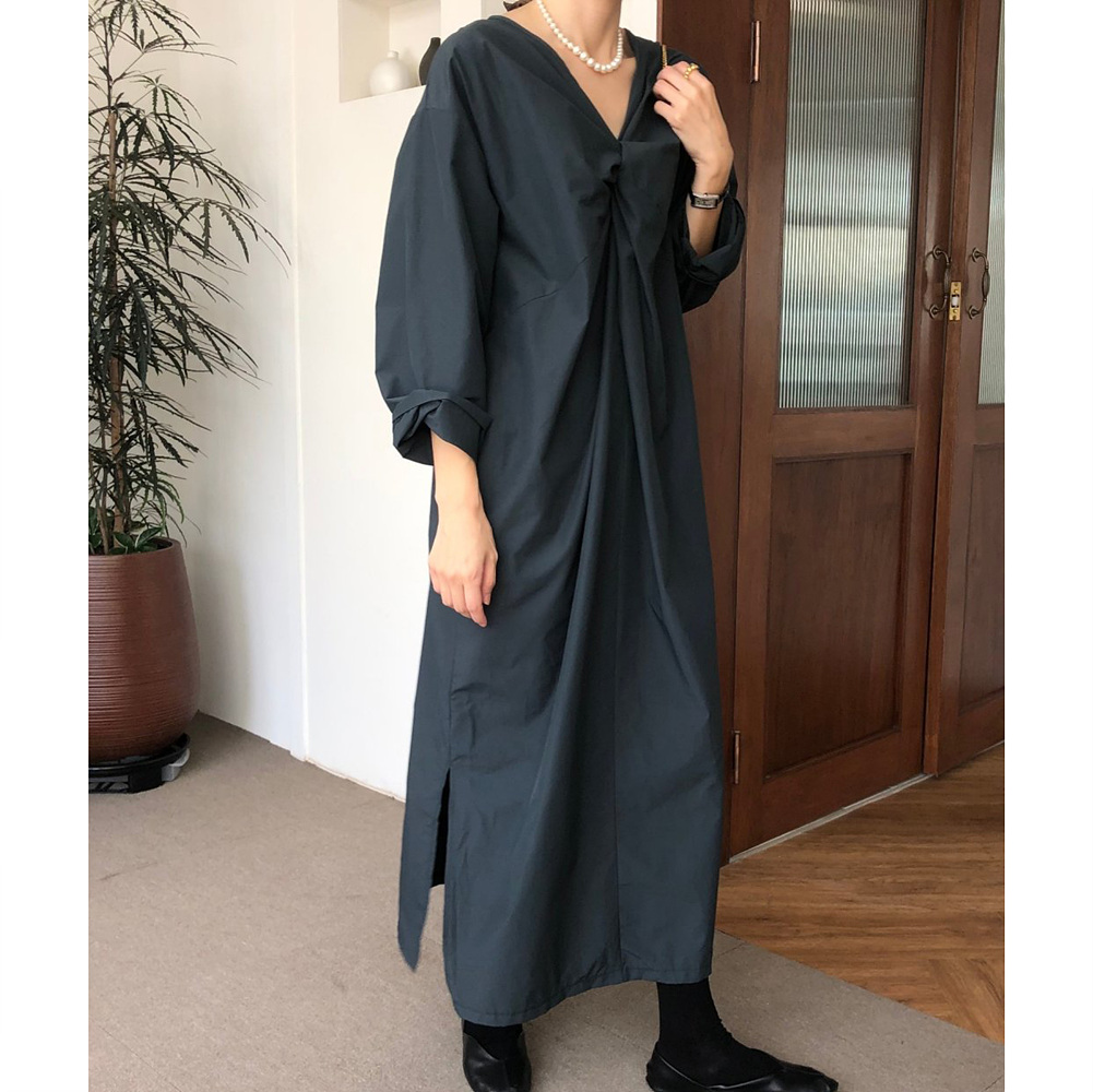 수에이 바스락 루즈핏 긴팔 양면 착용 꼬임 원피스